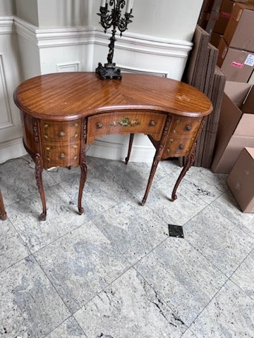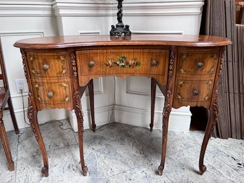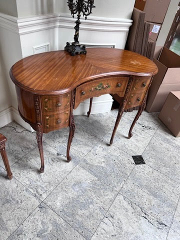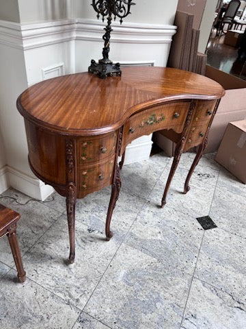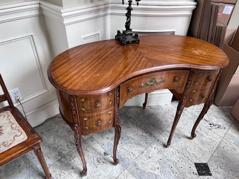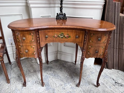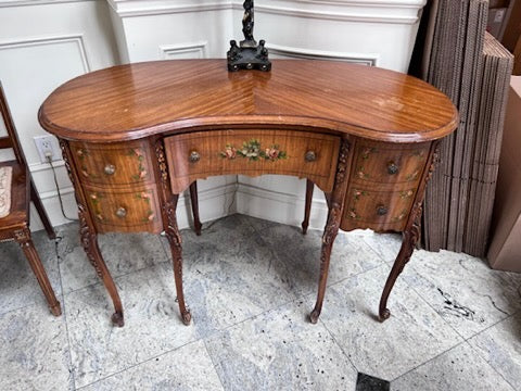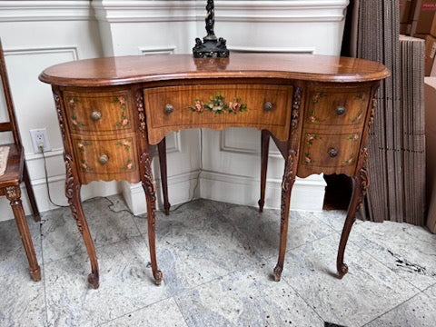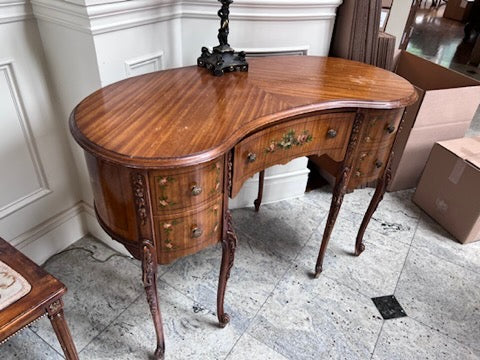 Antique Kidney Shaped Writing Desk, with Hand Painted Floral Design