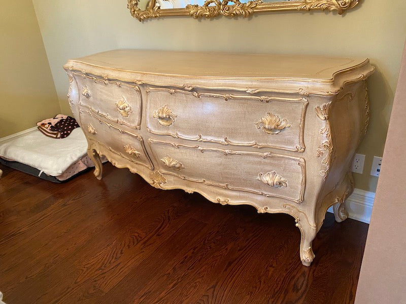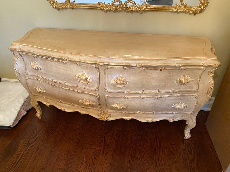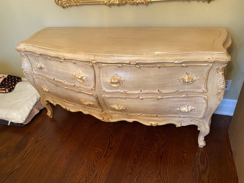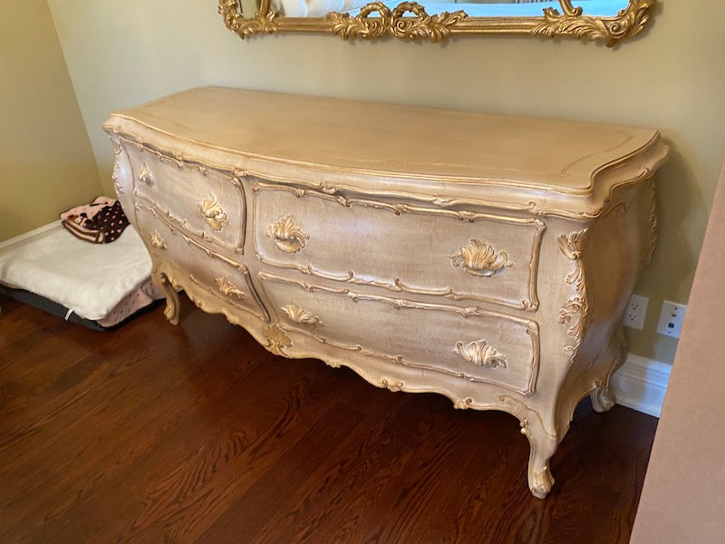 Wood Carved 4 Drawer Dresser, Made In Italy. In fabulous condition. This an absolutely magnificent piece.