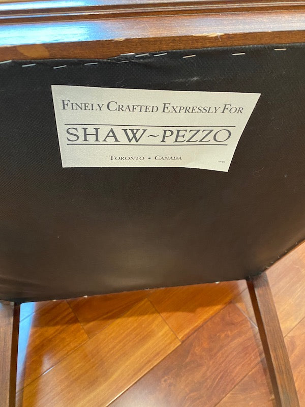 "Shaw-Pezzo" Armchair. Gold upholstery with a bold wood frame and gold accents. This beautiful chair is the perfect statement piece.
