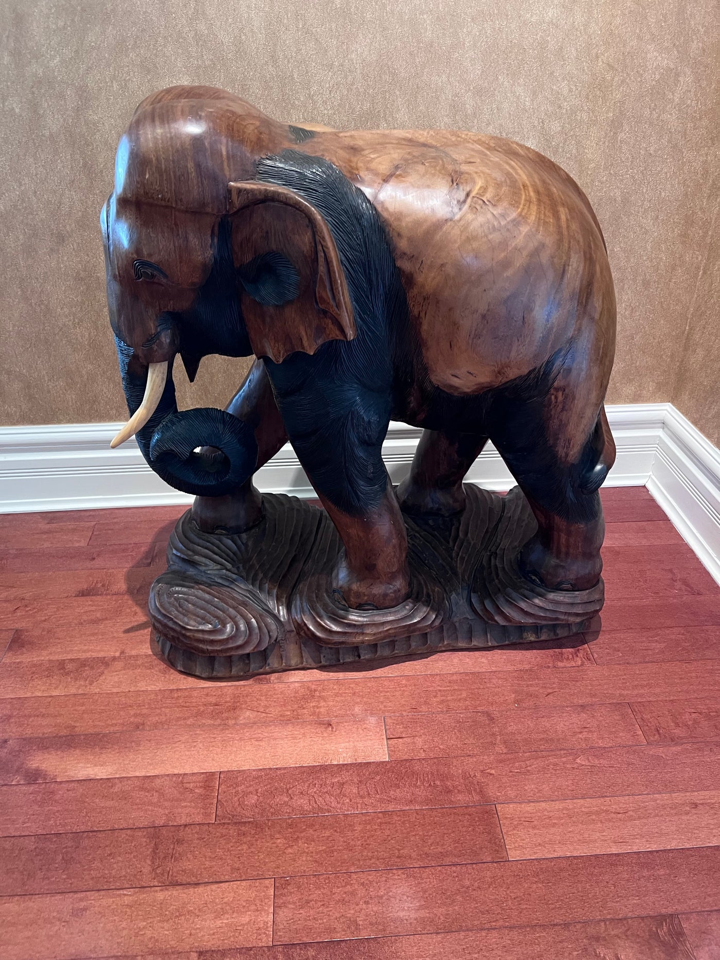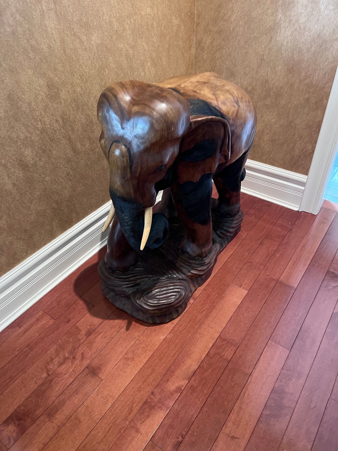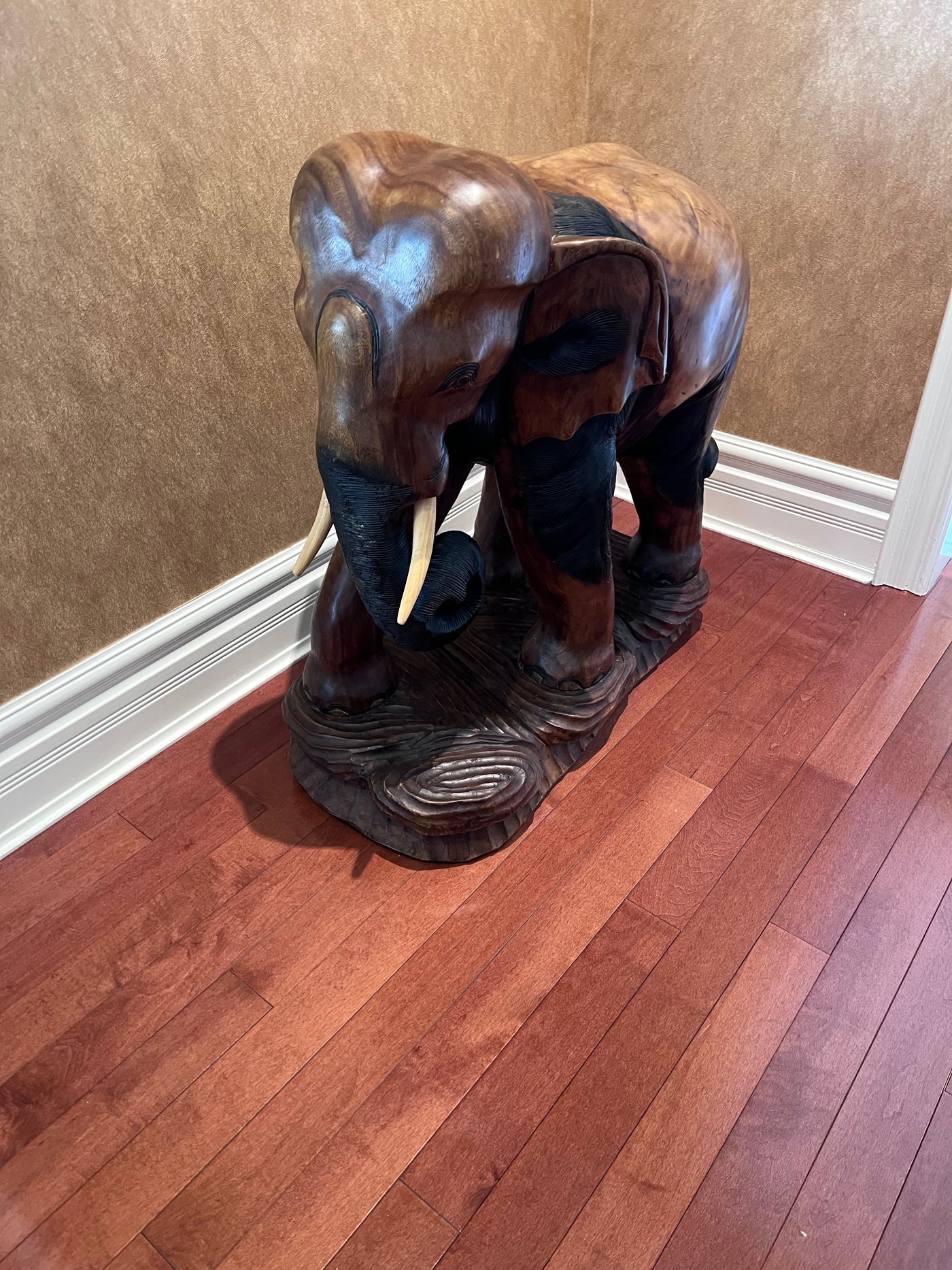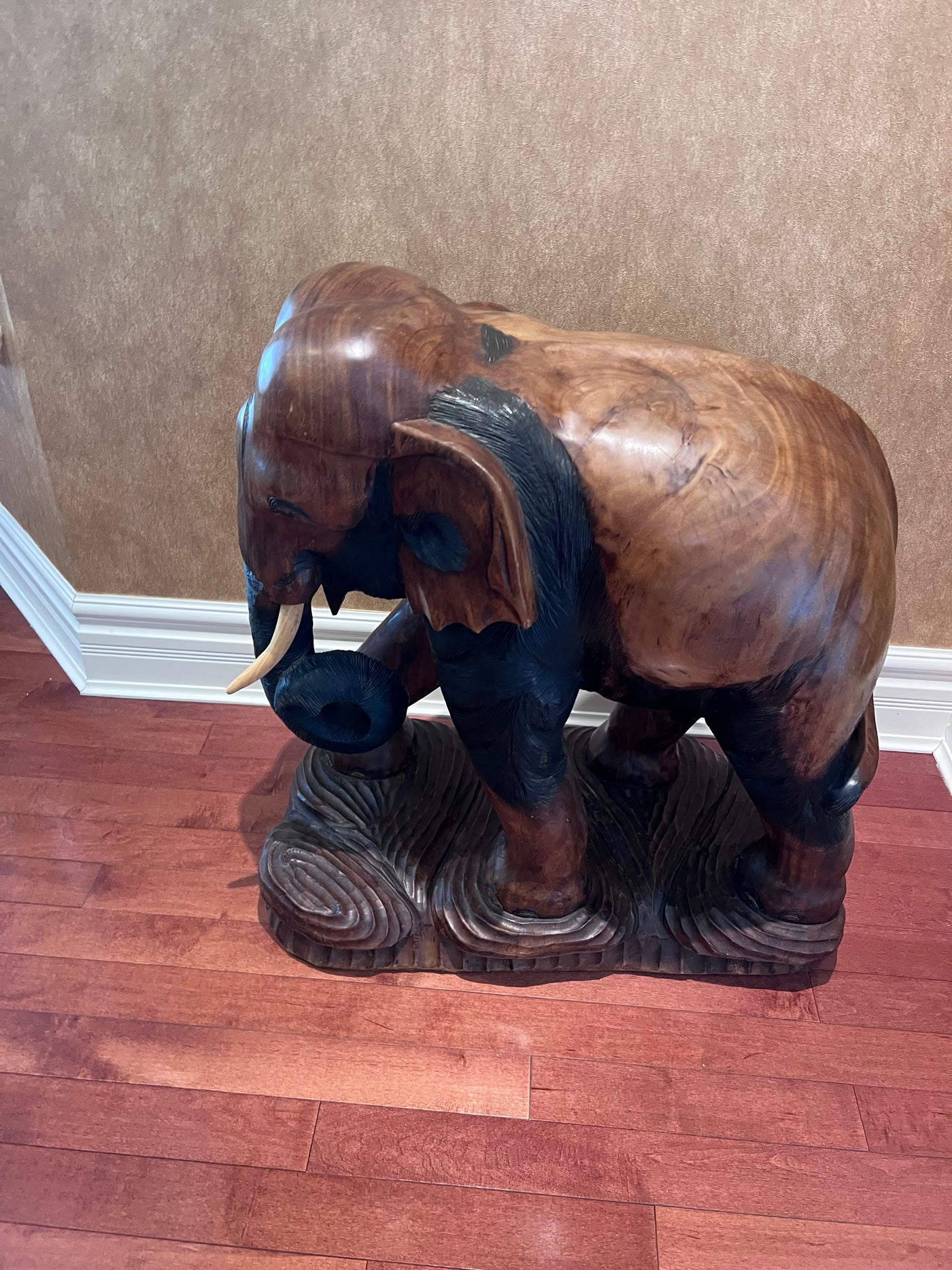 Solid Wood Carved Elephant Statue- 30"h x 30"w.