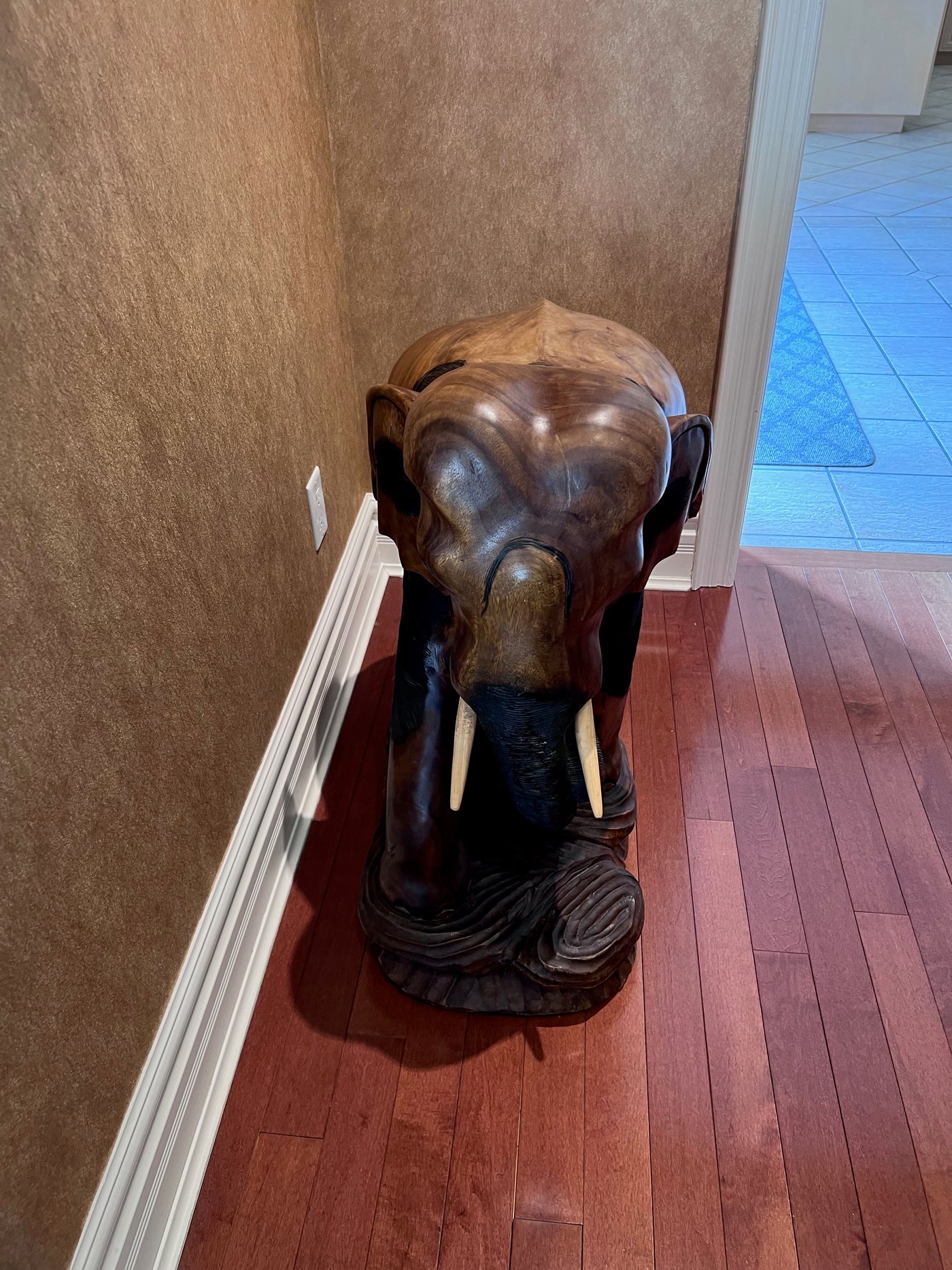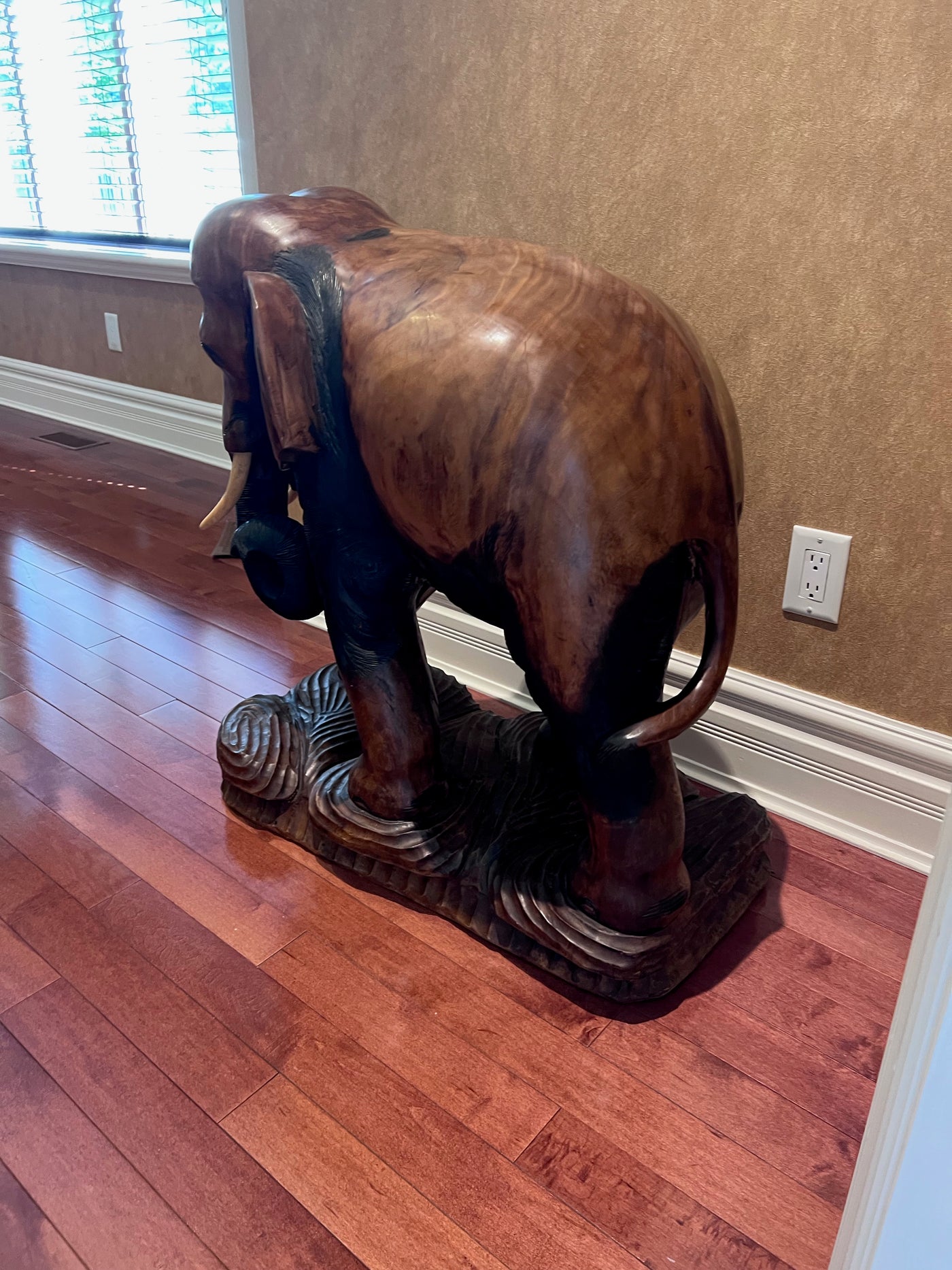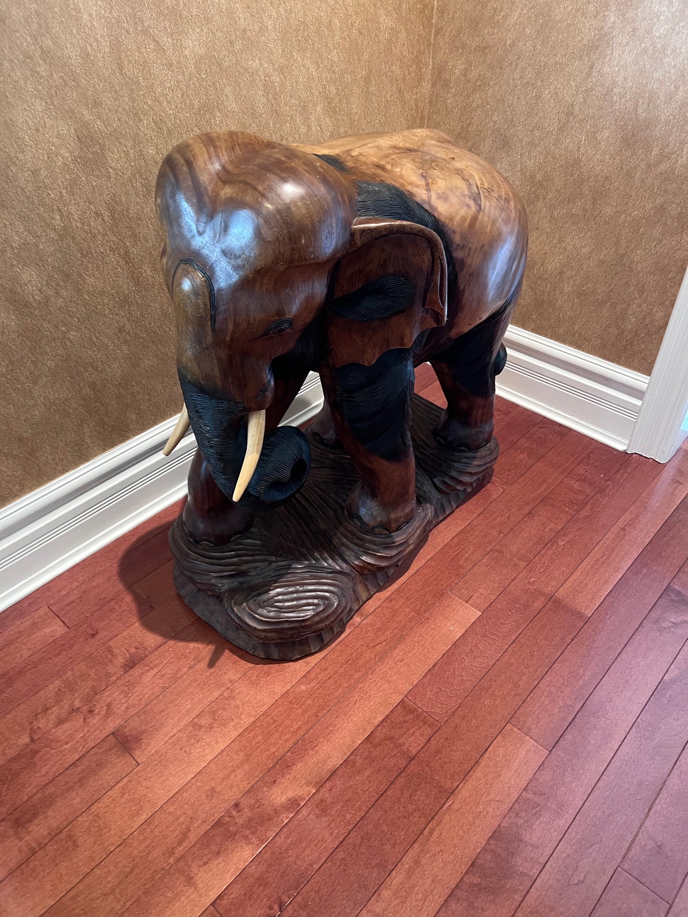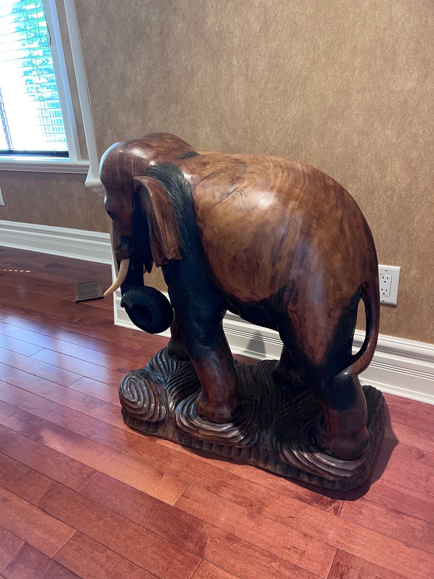 Solid Wood Carved Elephant Statue- 30"h x 30"w.