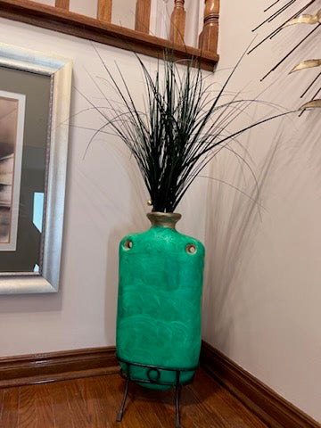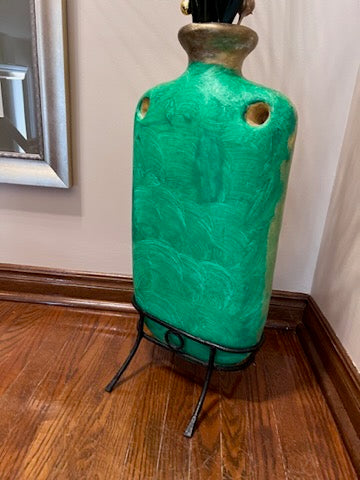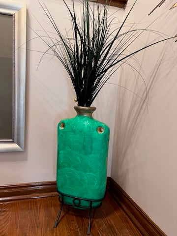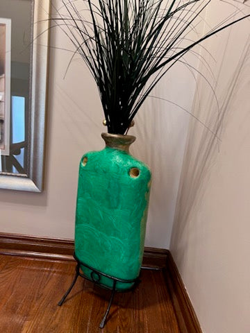 Green Painted Vase on Stand.
