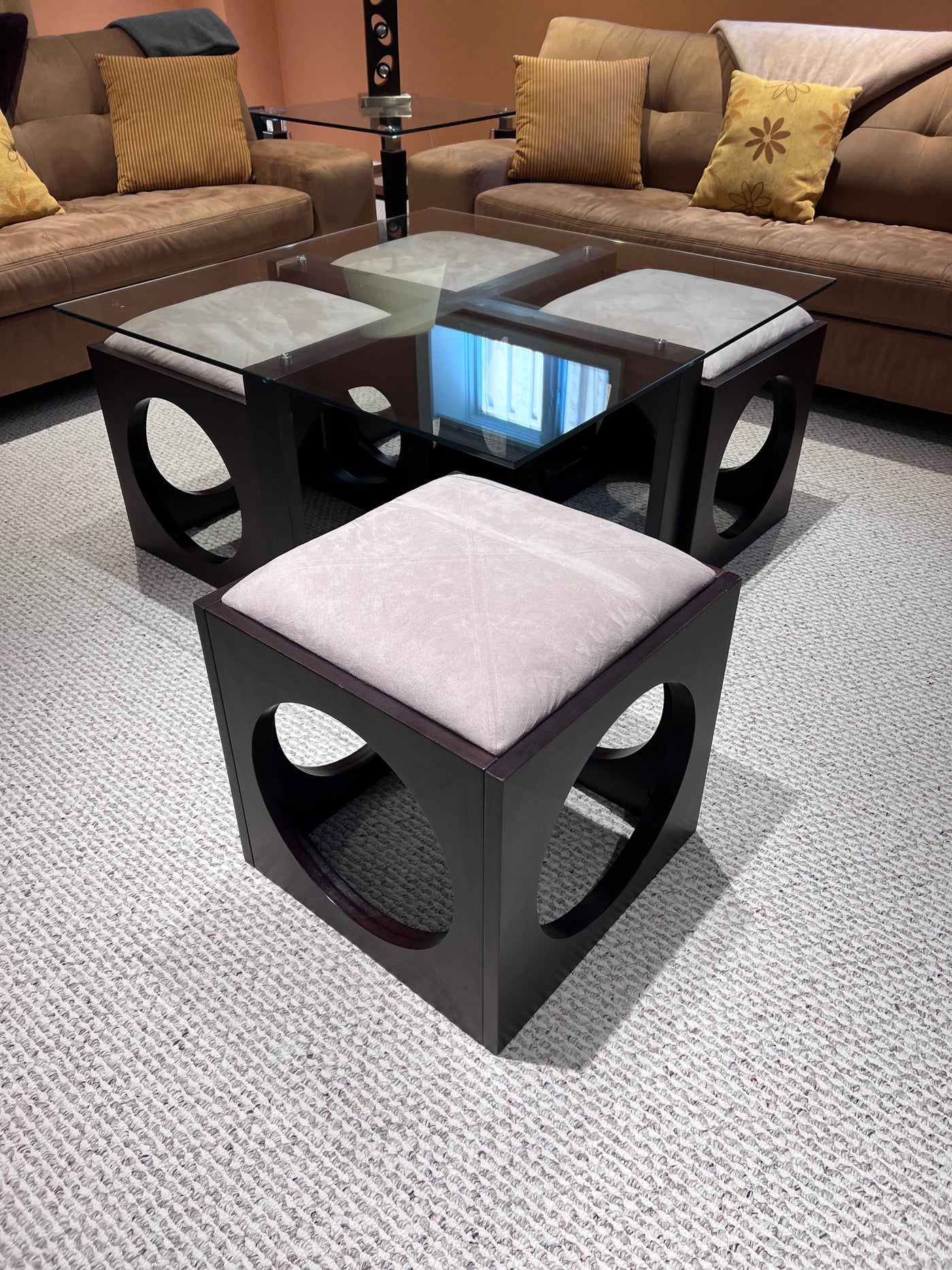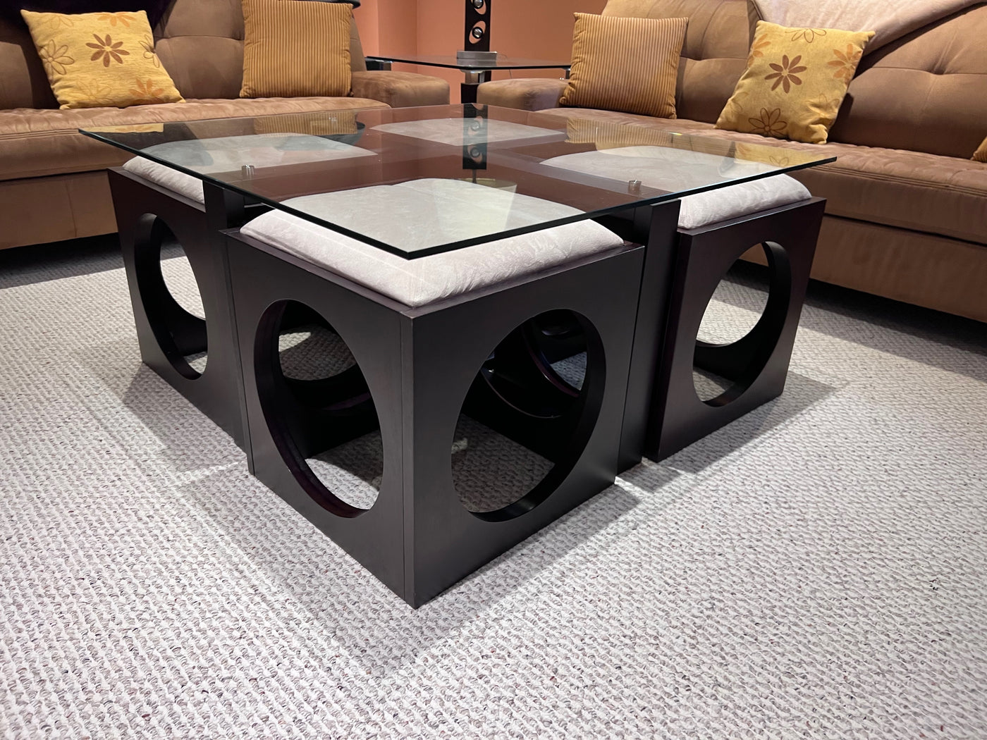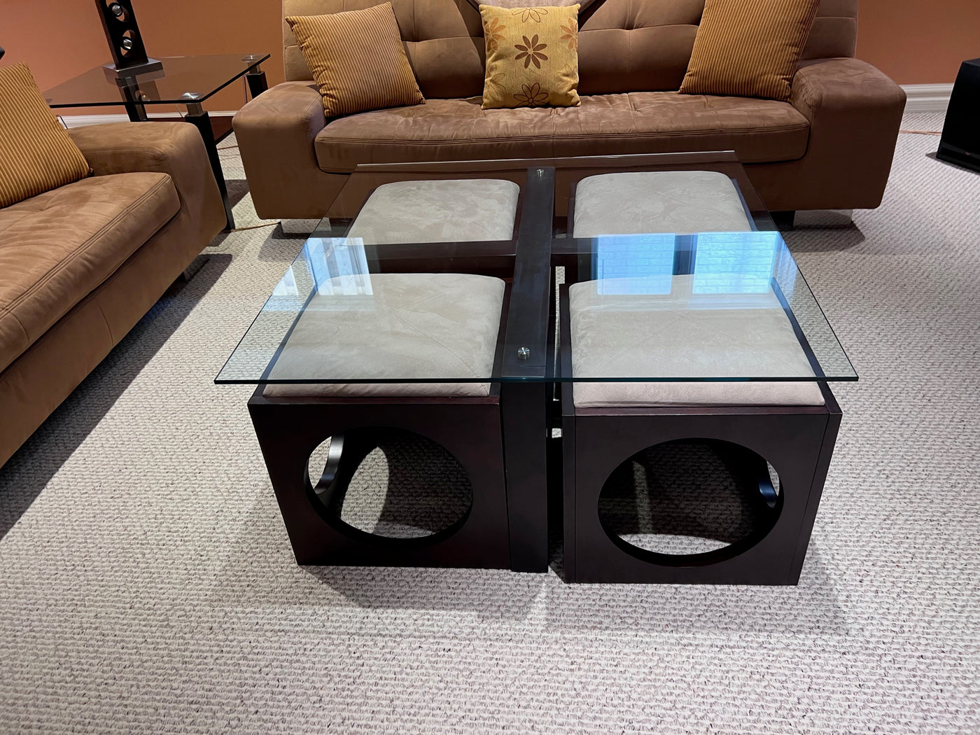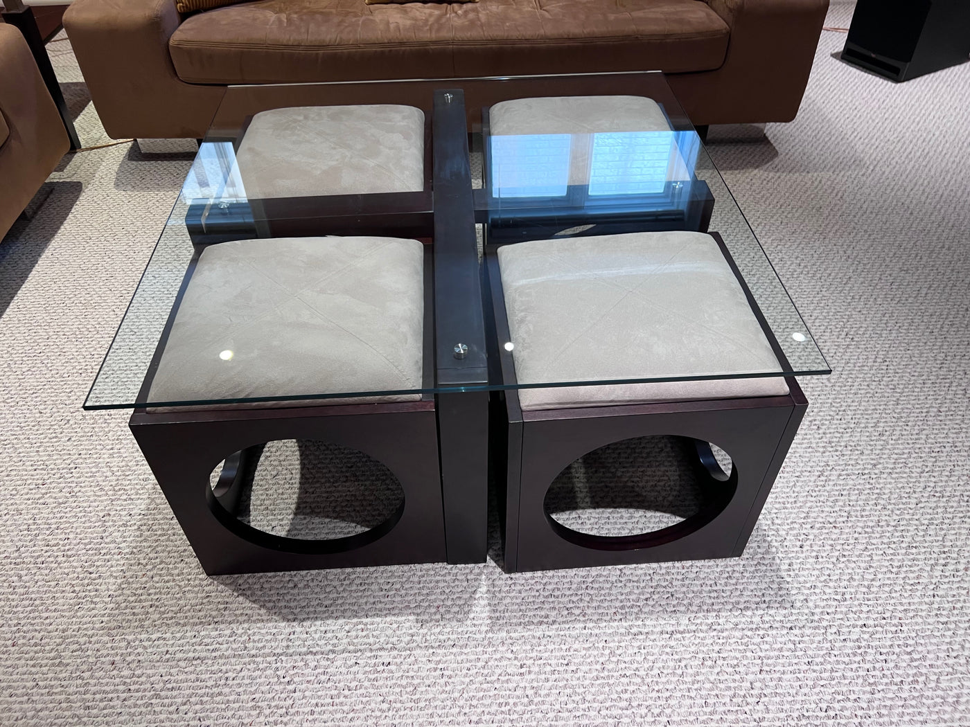 Martin Daniels Glass Coffee Table w/4 Stools