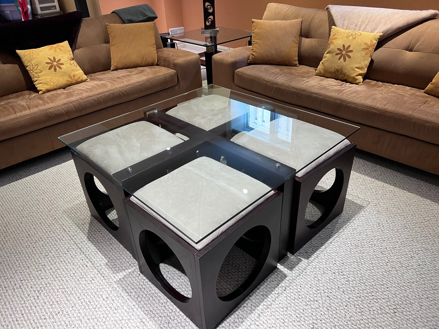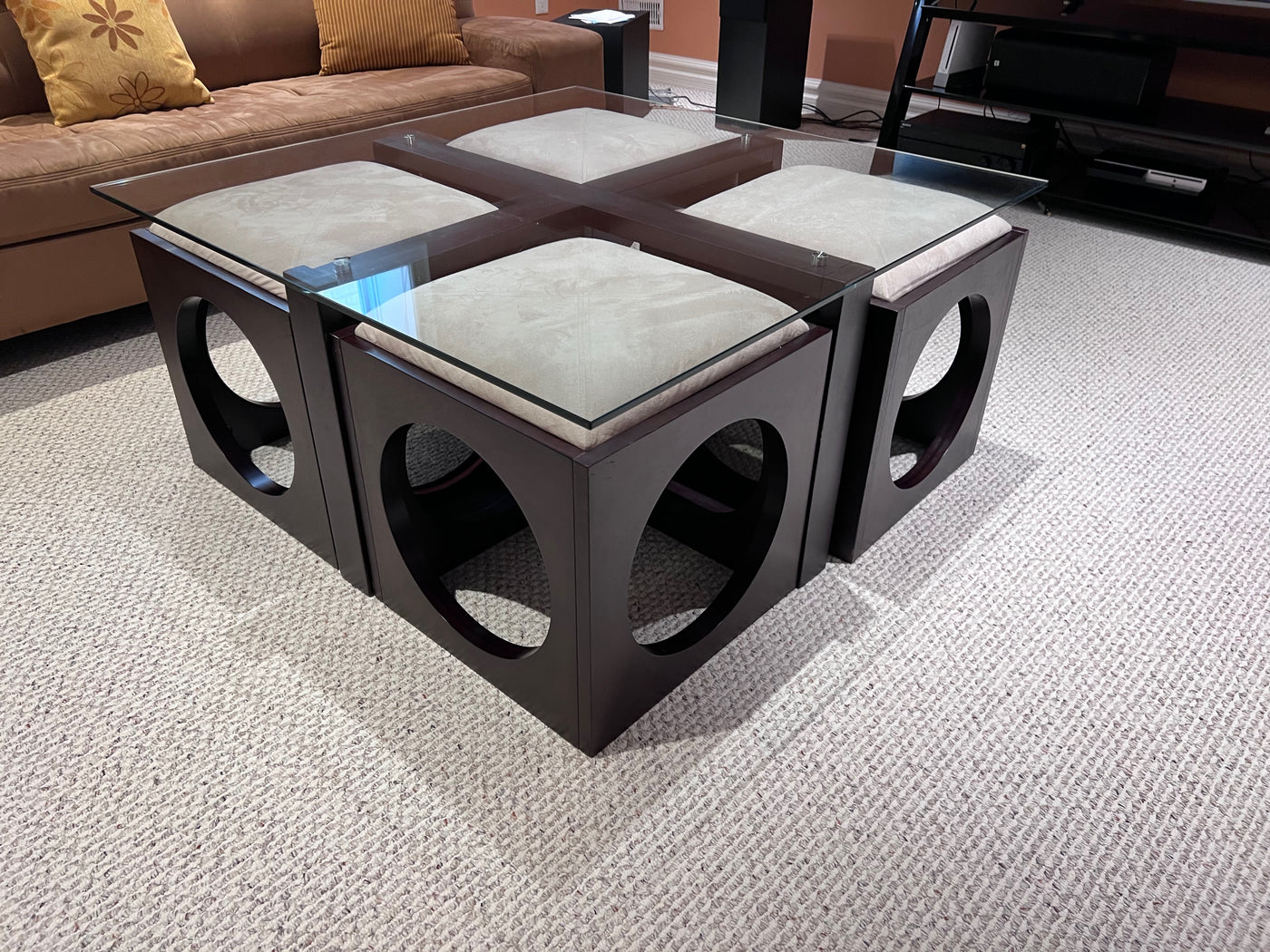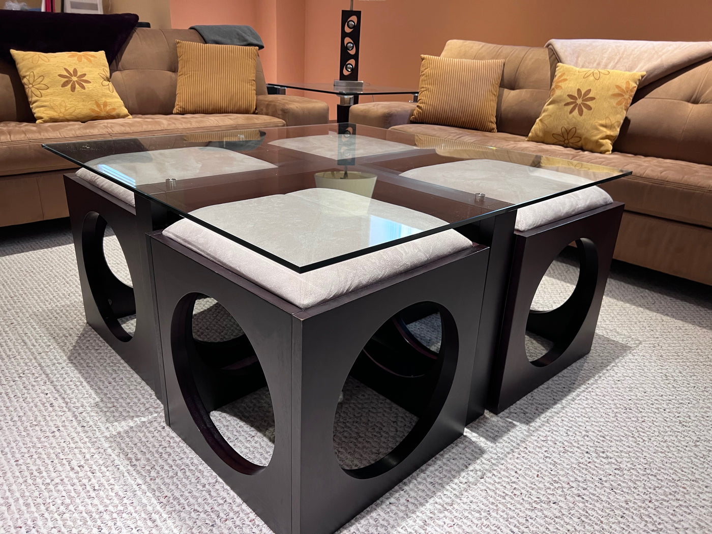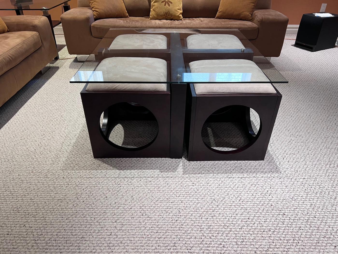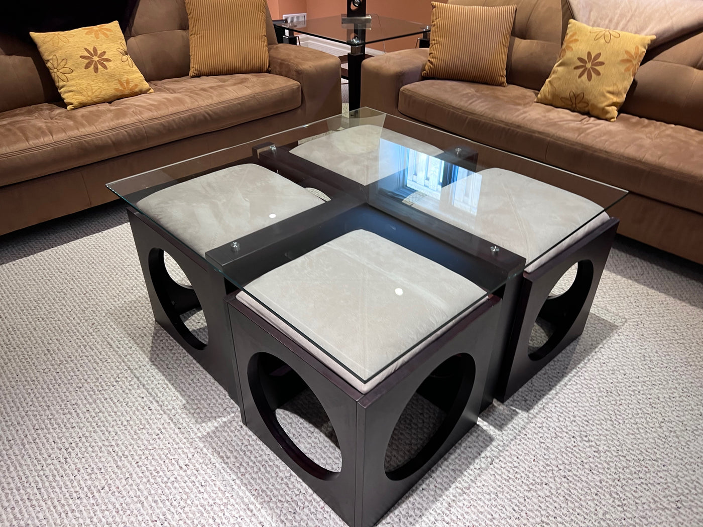 Martin Daniels Glass Coffee Table w/4 Stools