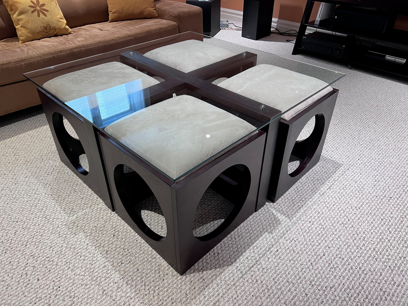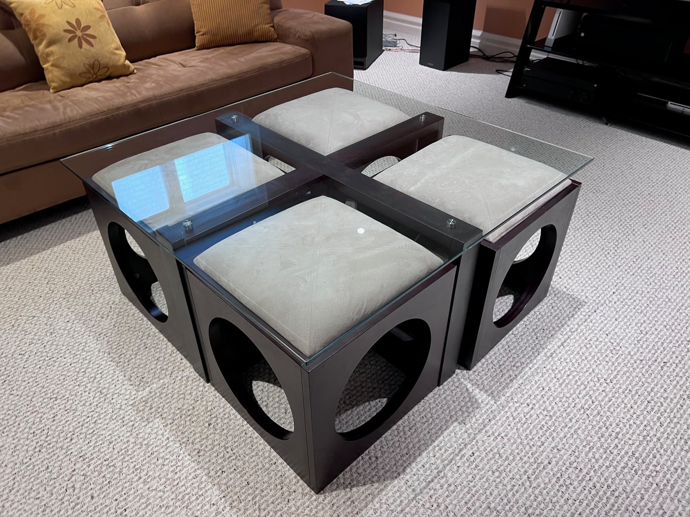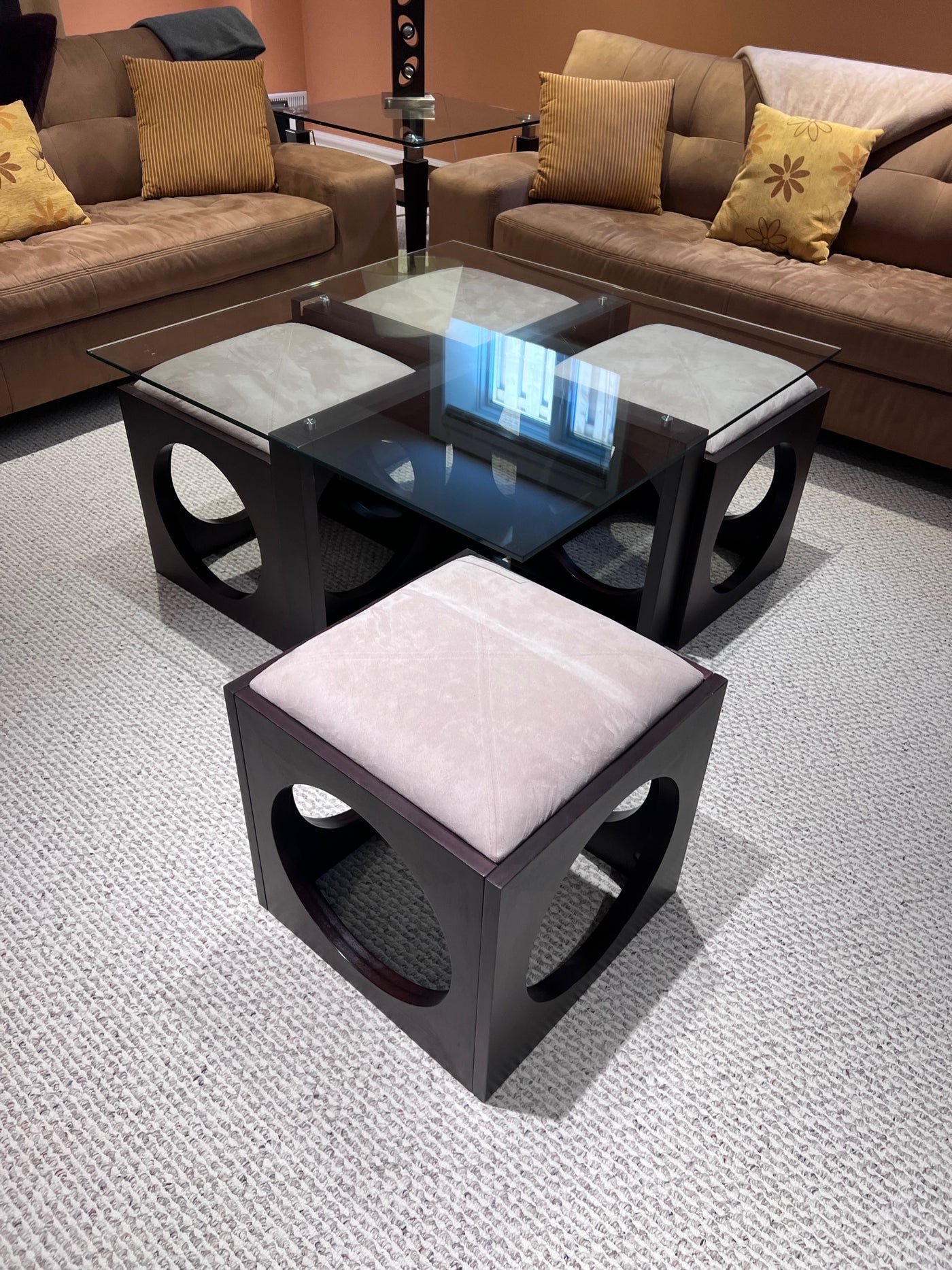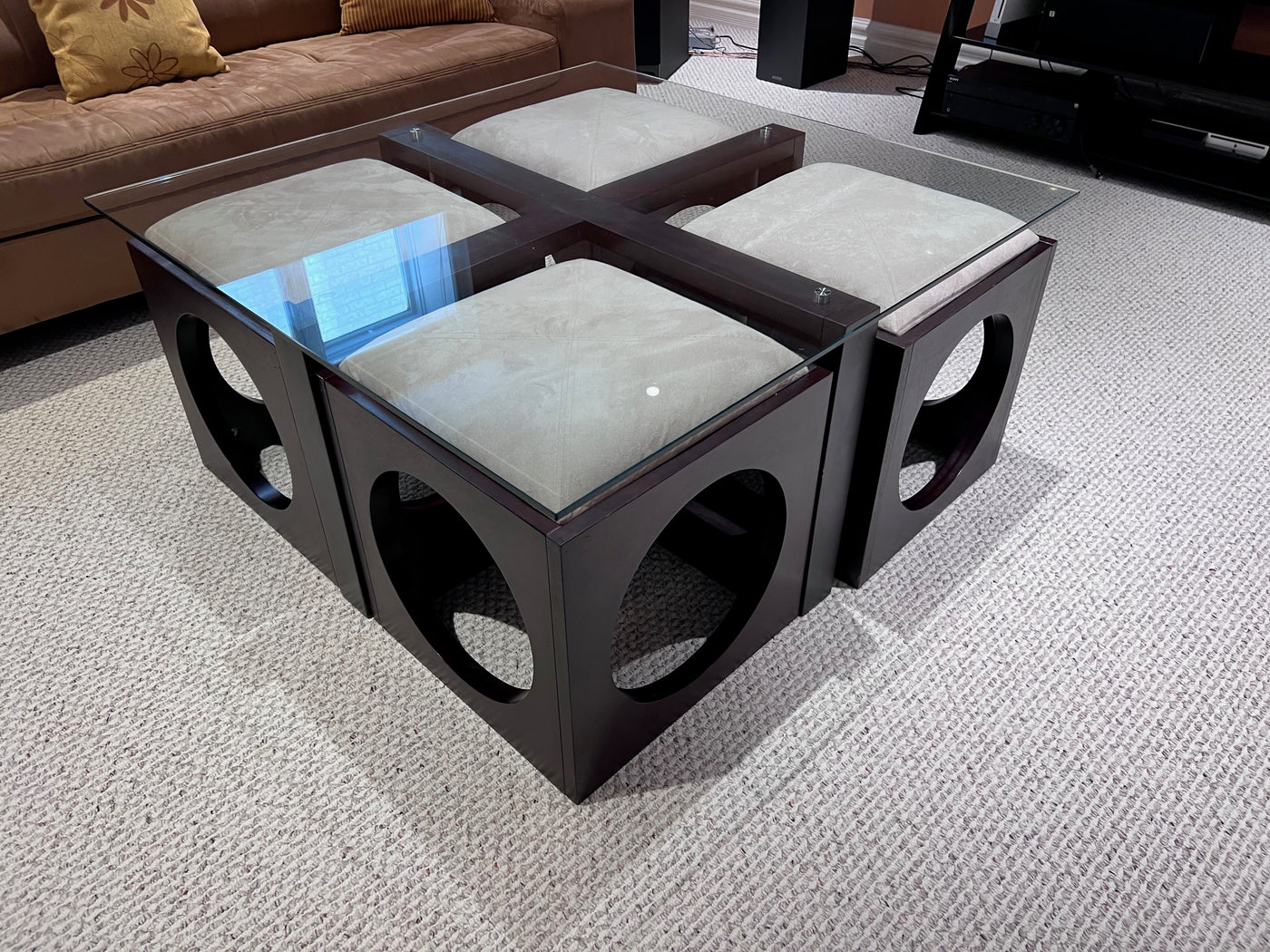 Martin Daniels Glass Coffee Table w/4 Stools