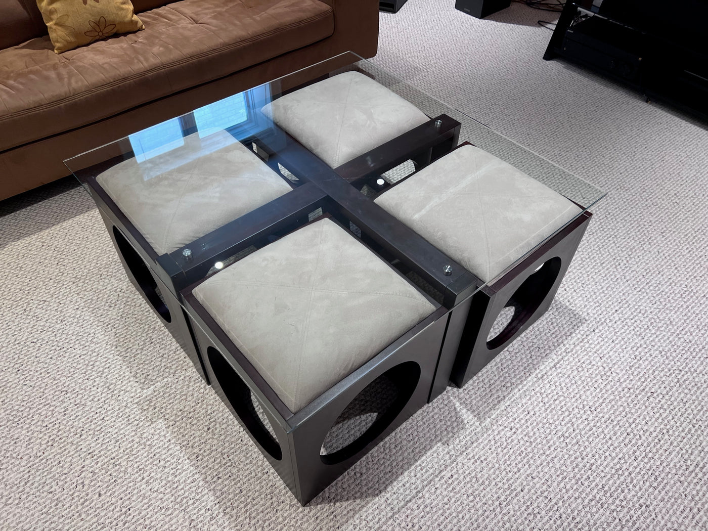 Martin Daniels Glass Coffee Table w/4 Stools.