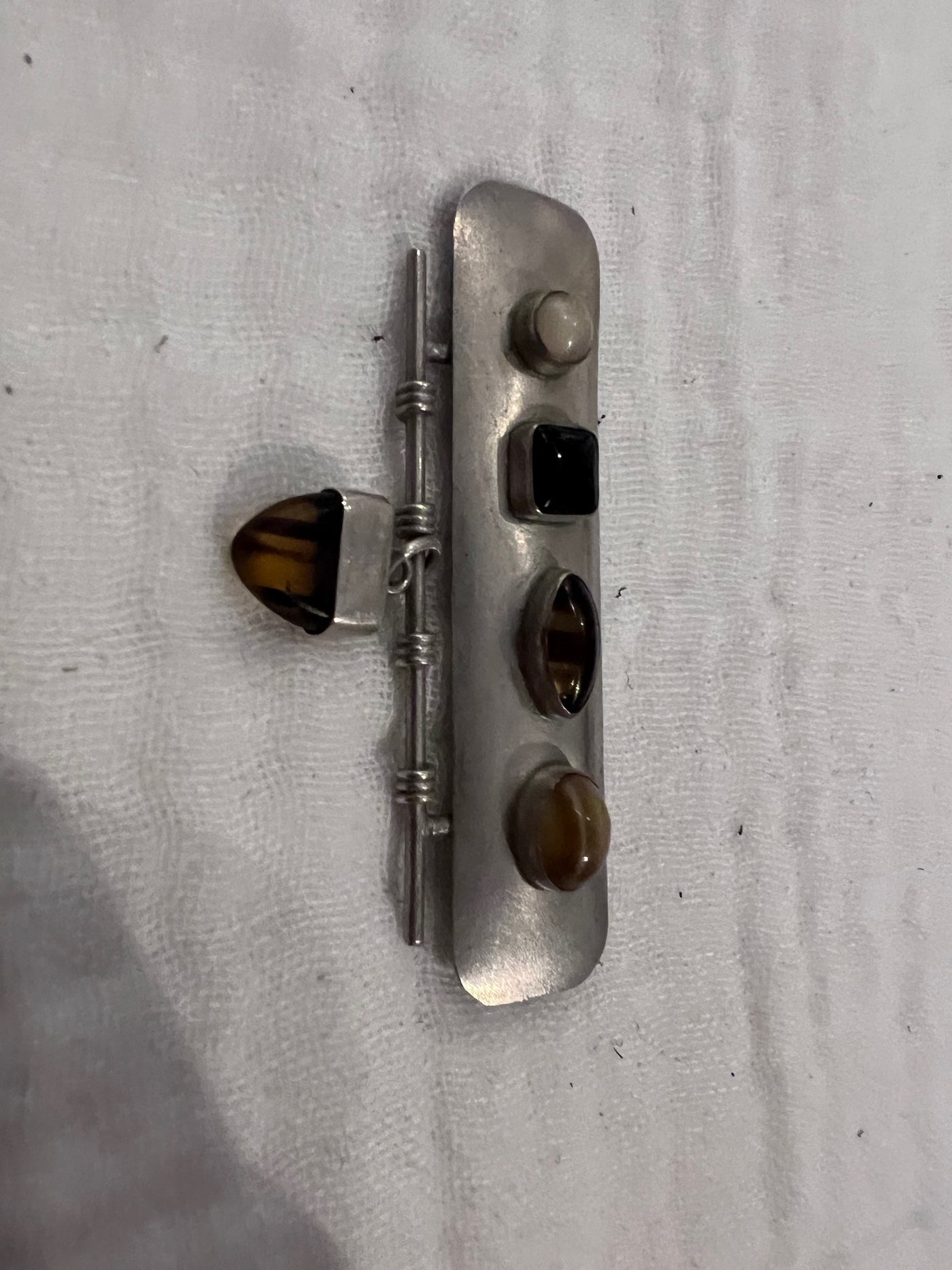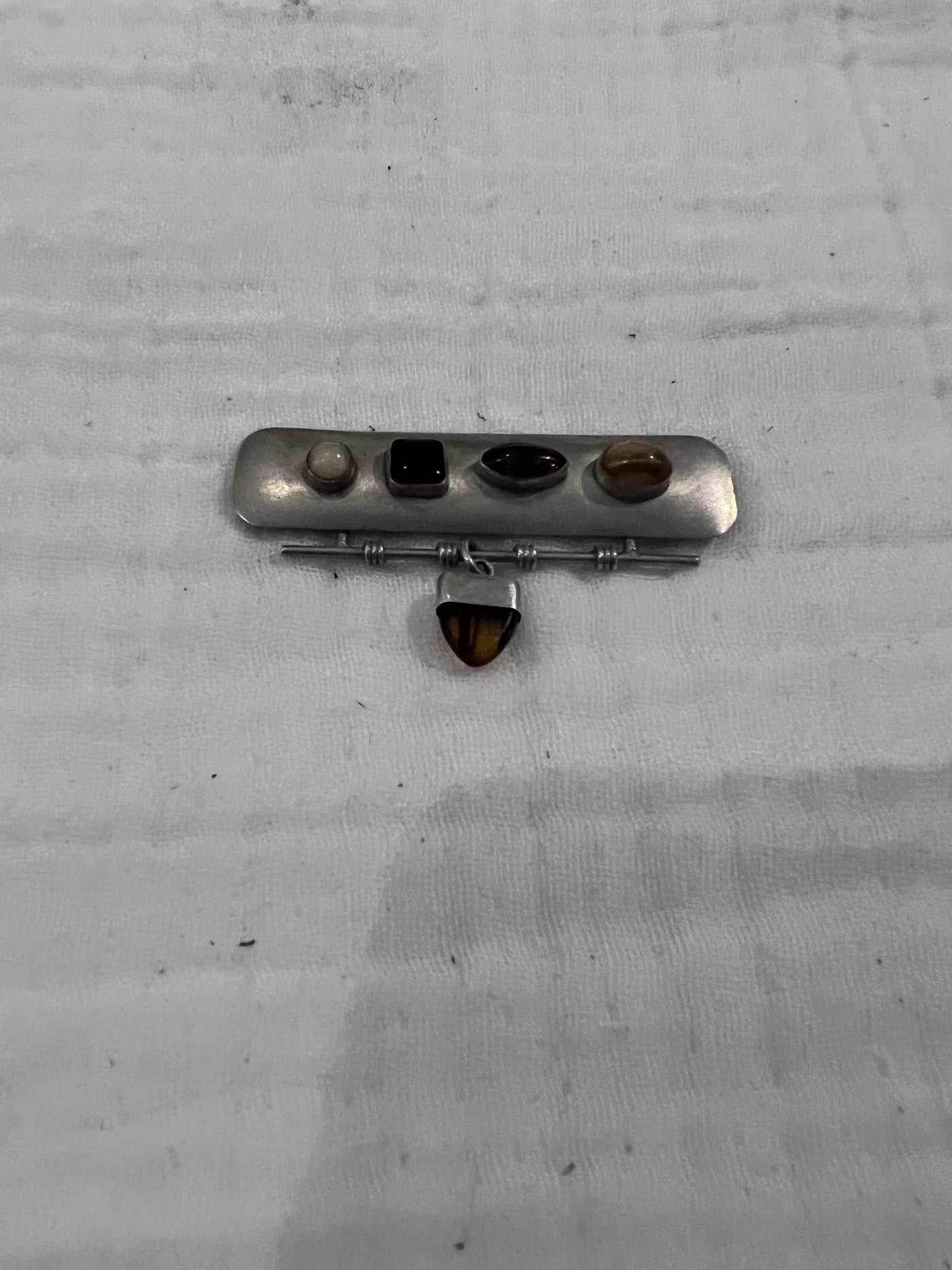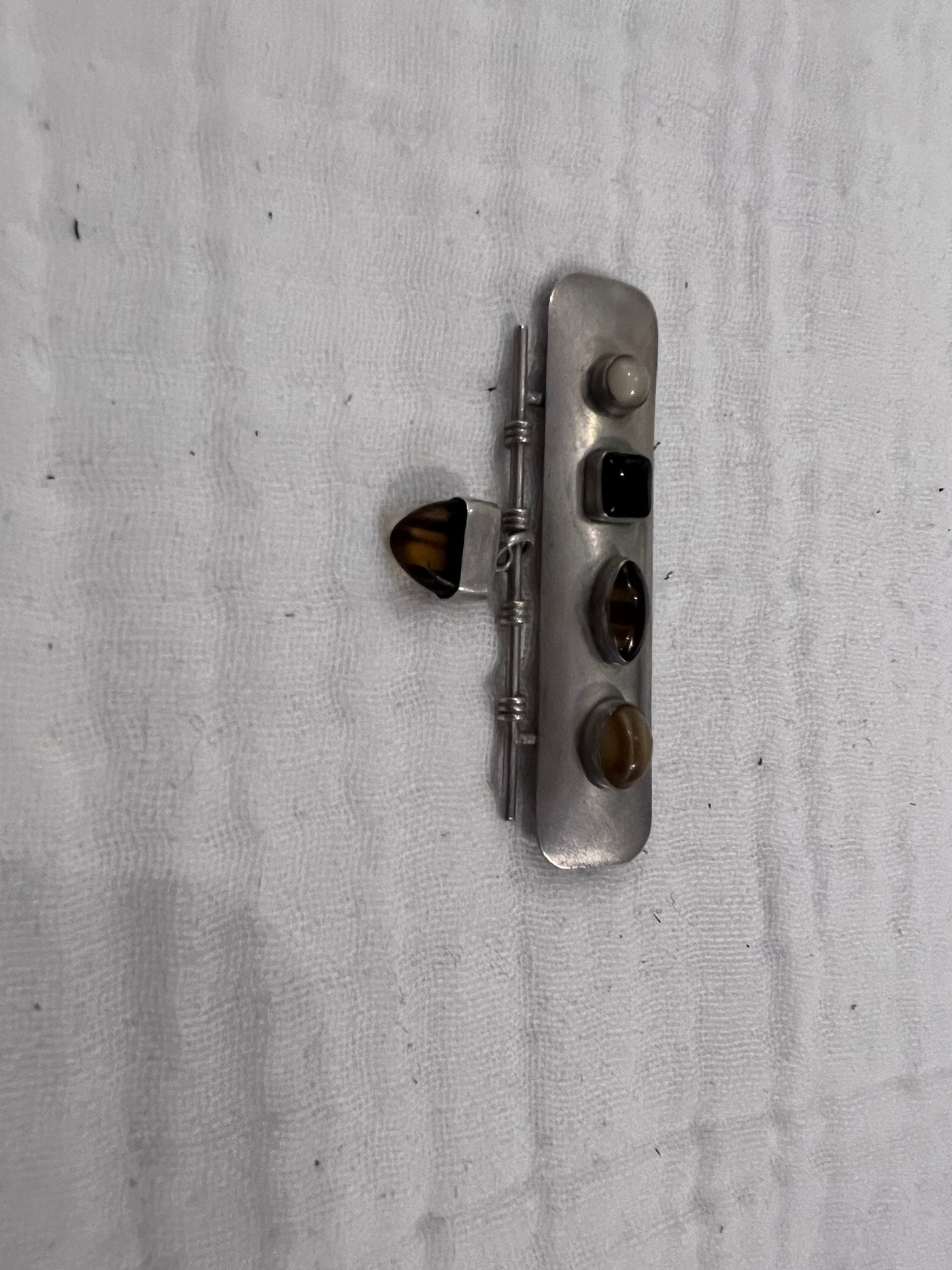 Juventino Lopez Reyes Sterling Silver Brooch Pin (white opal, onyx, tigers eye, butterscotch amber)