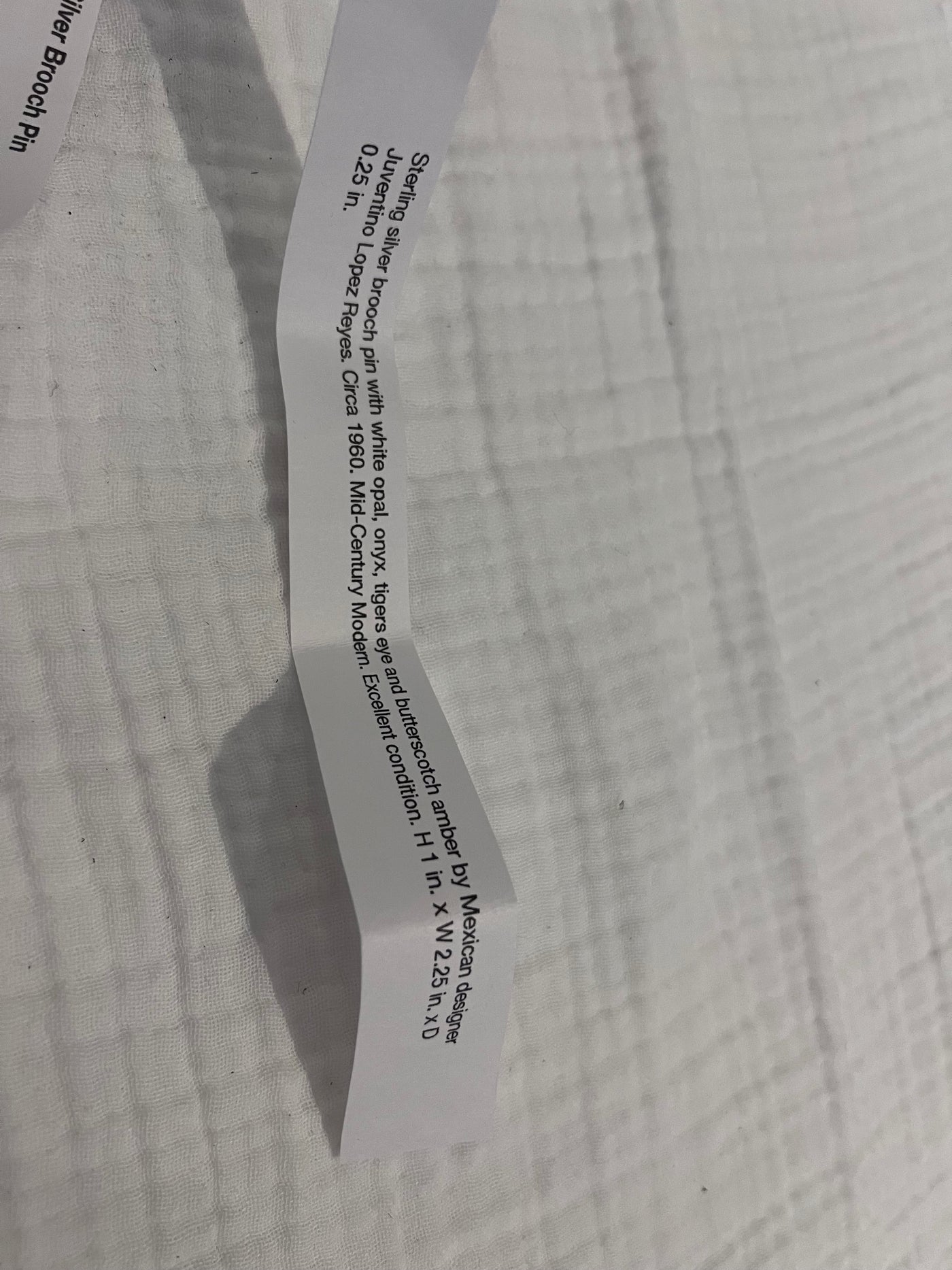 Juventino Lopez Reyes Sterling Silver Brooch Pin (white opal, onyx, tigers eye, butterscotch amber).