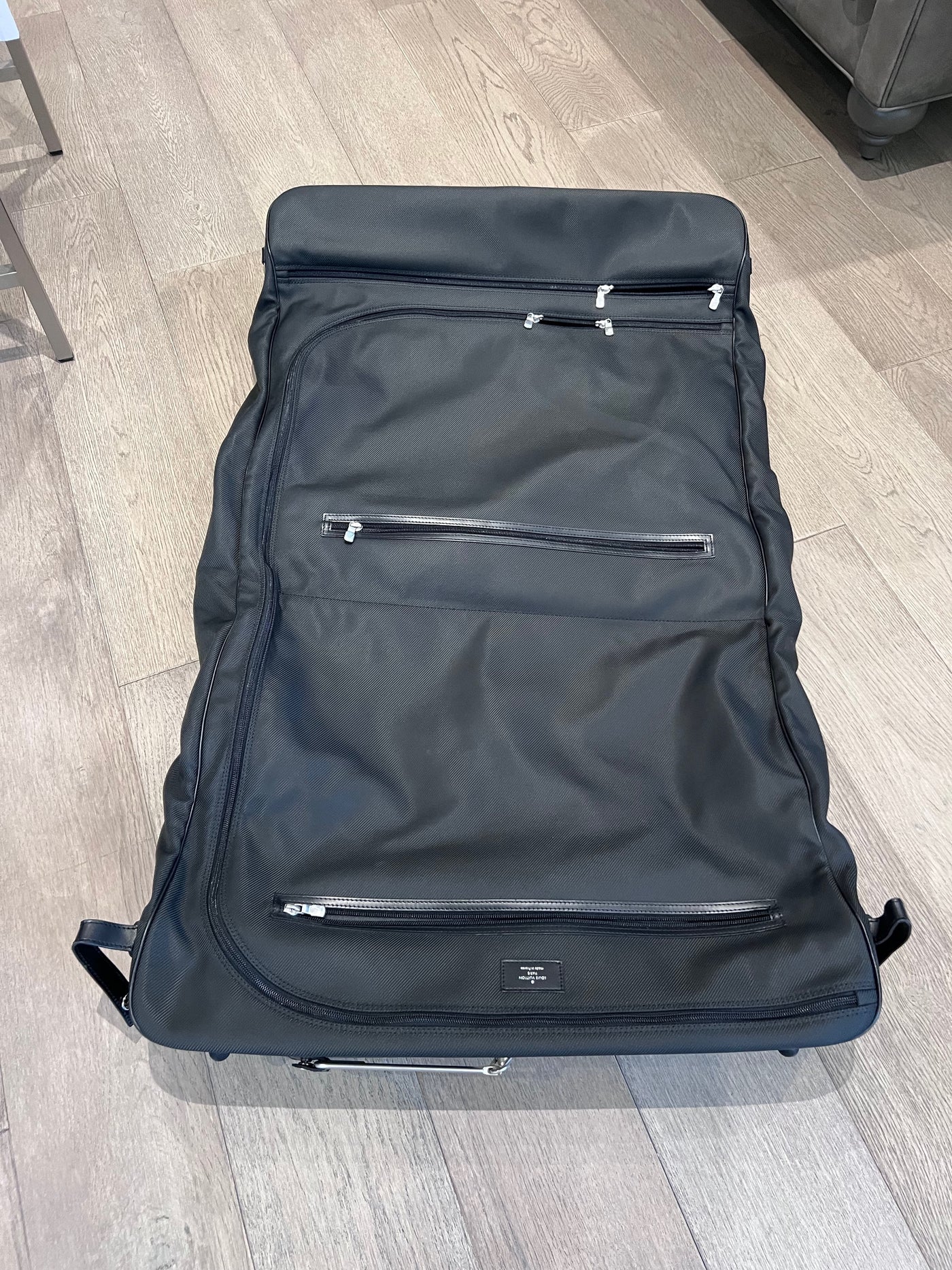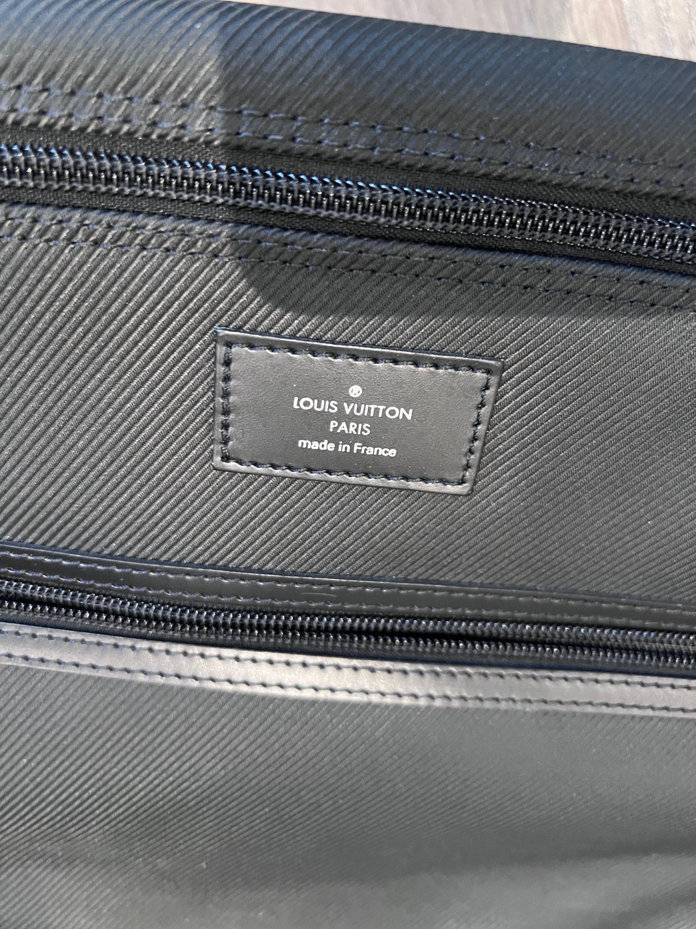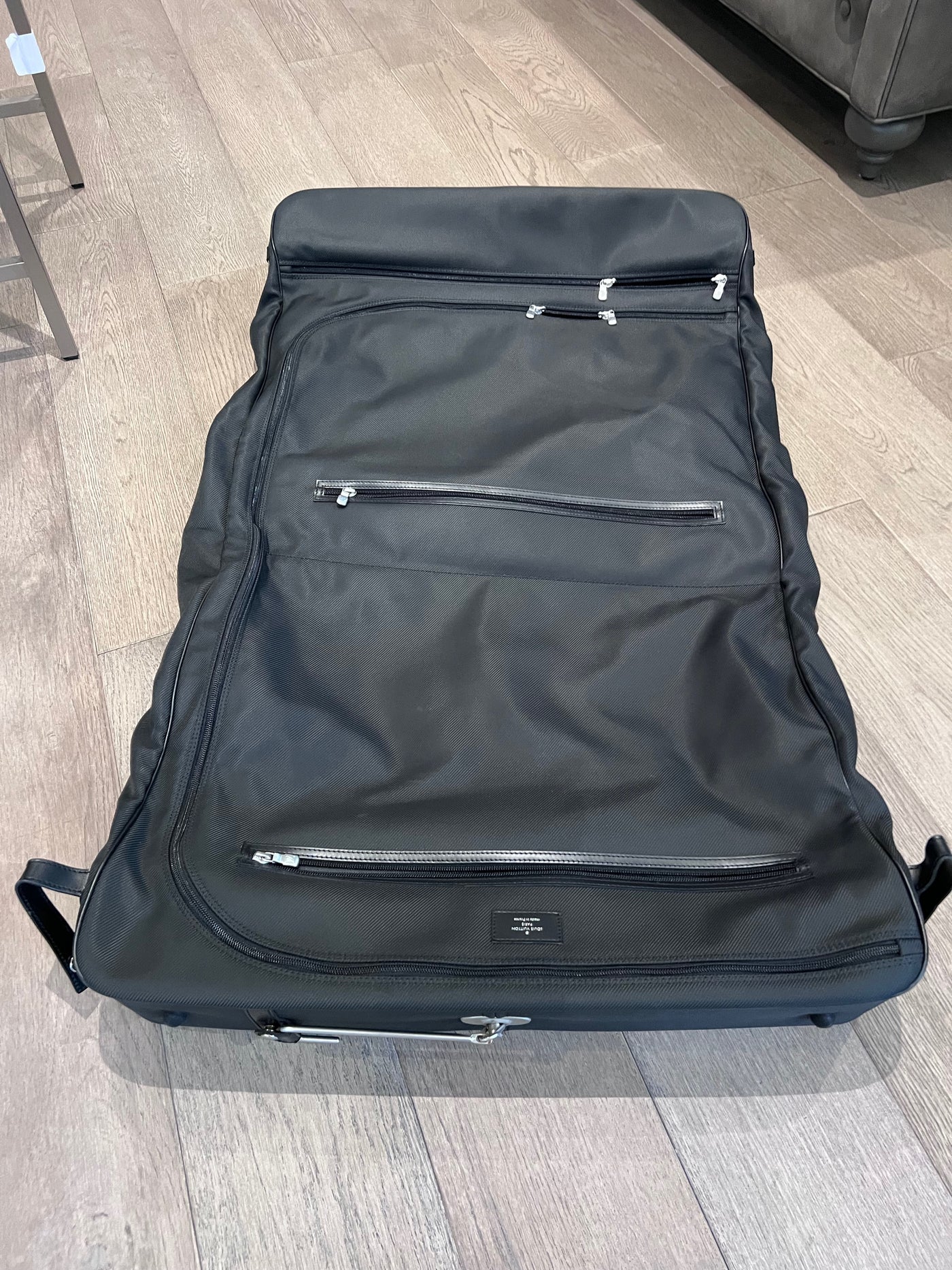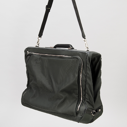 LOUIS VUITTON BLACK TAIGA LEATHER AND NYLON GARMENT BAG.