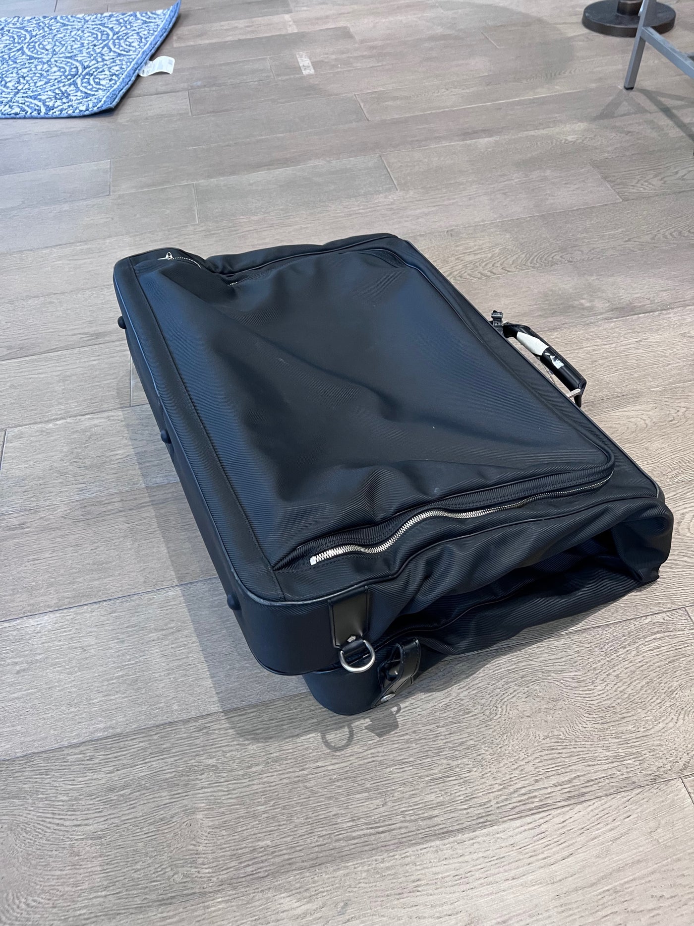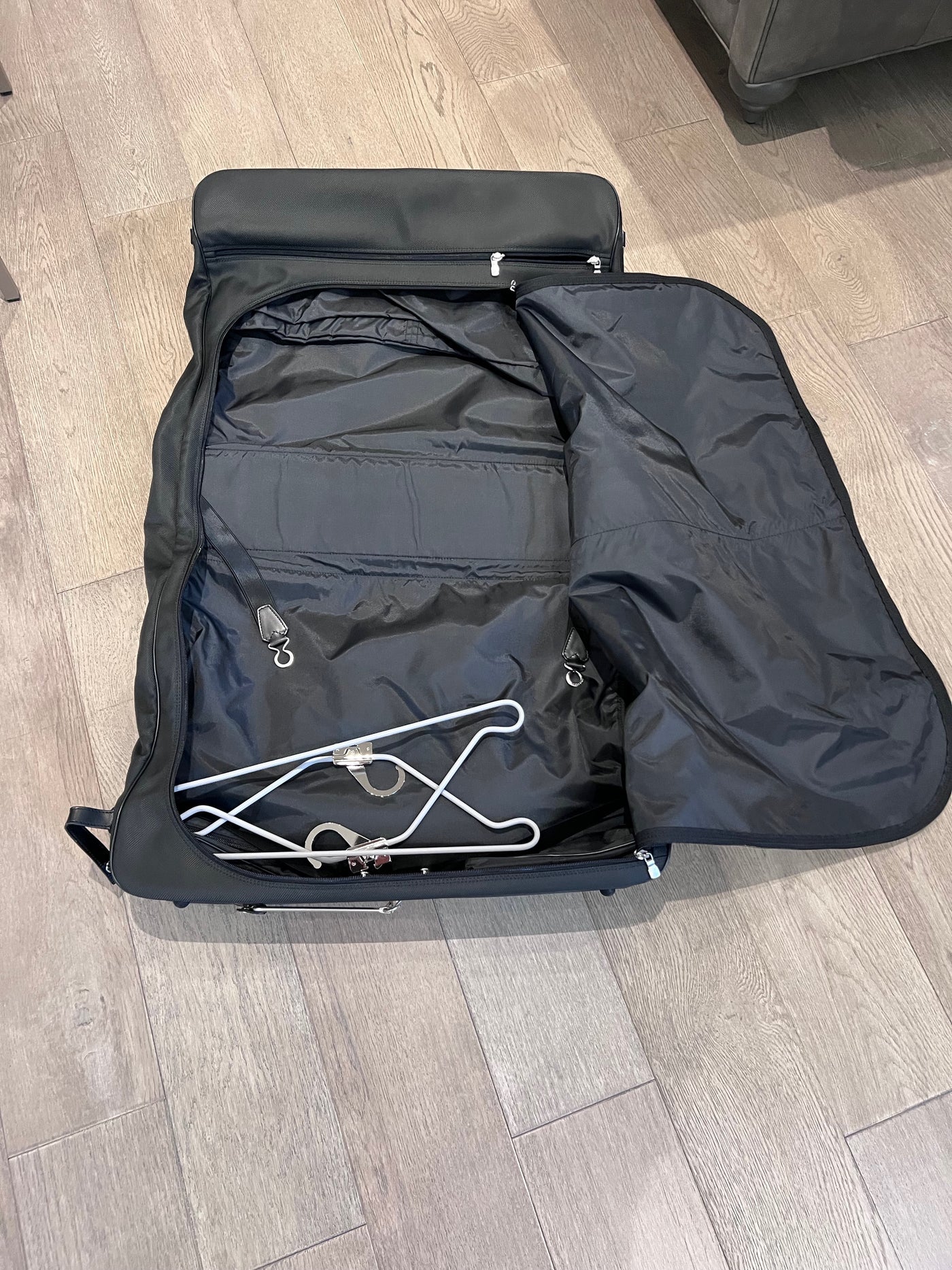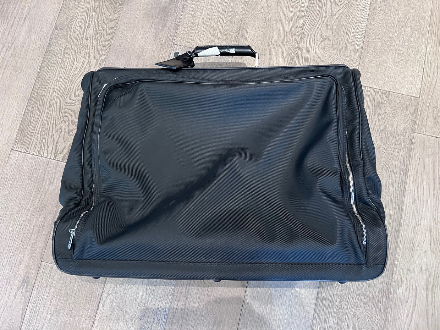 LOUIS VUITTON BLACK TAIGA LEATHER AND NYLON GARMENT BAG.