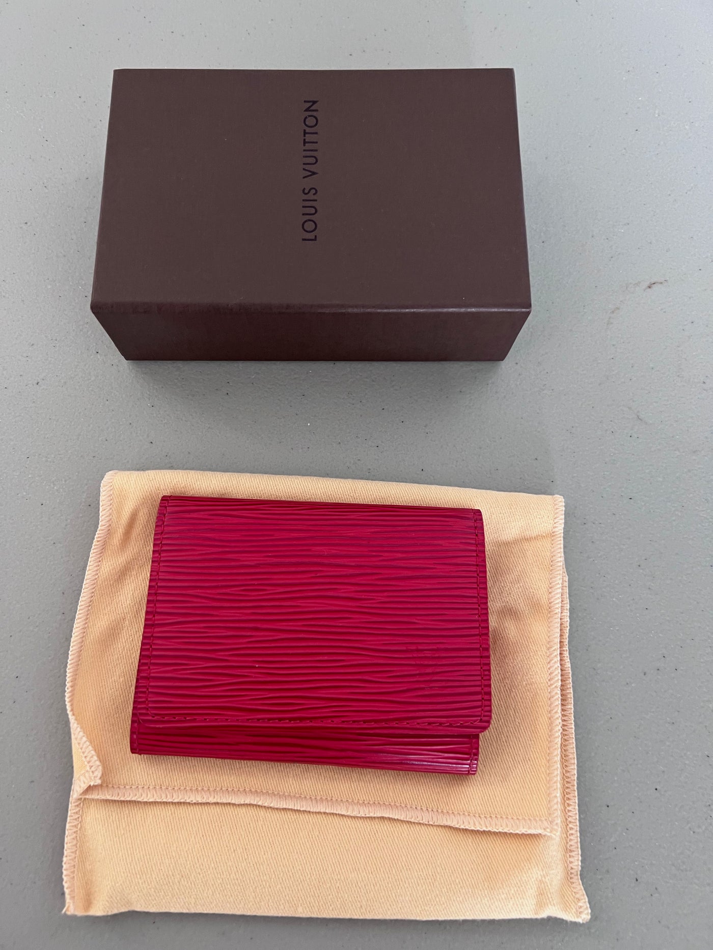Louis Vuitton Red Epi Leather Bifold Business Card Wallet.