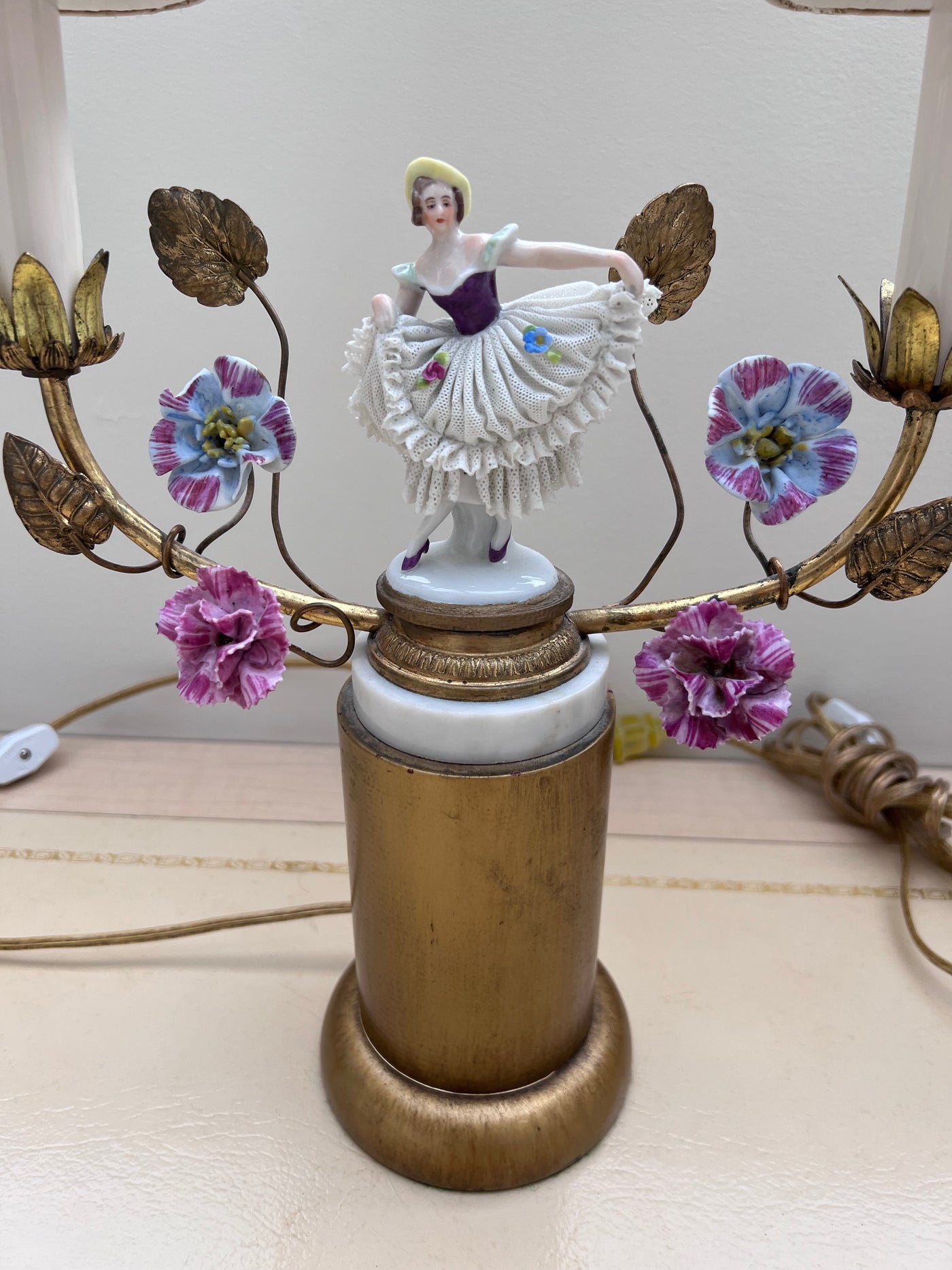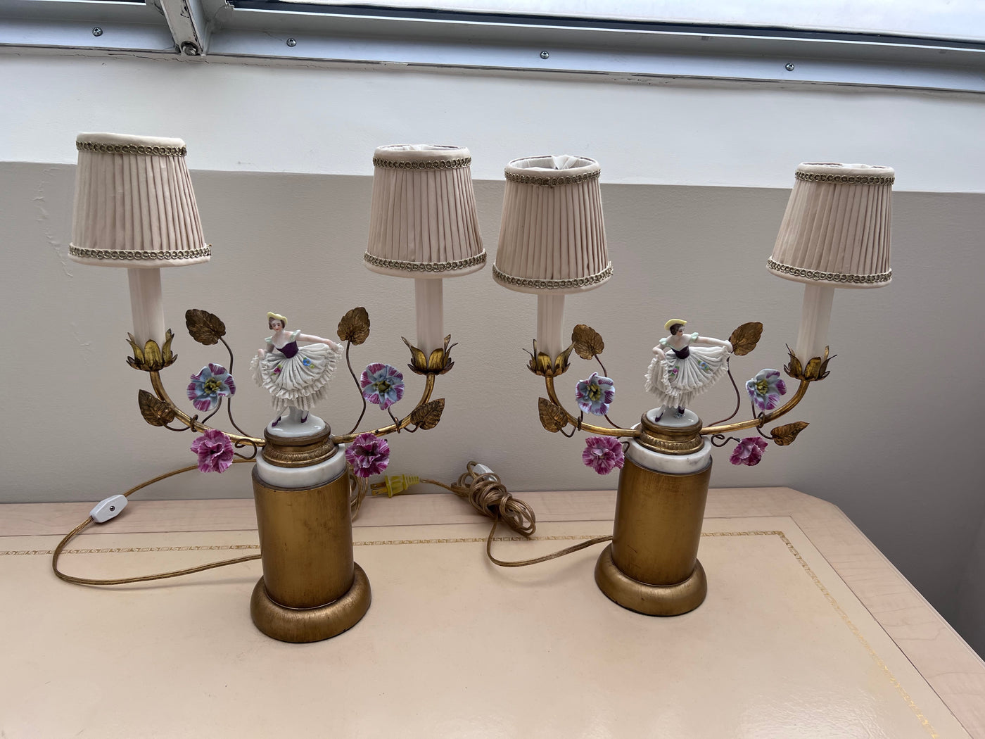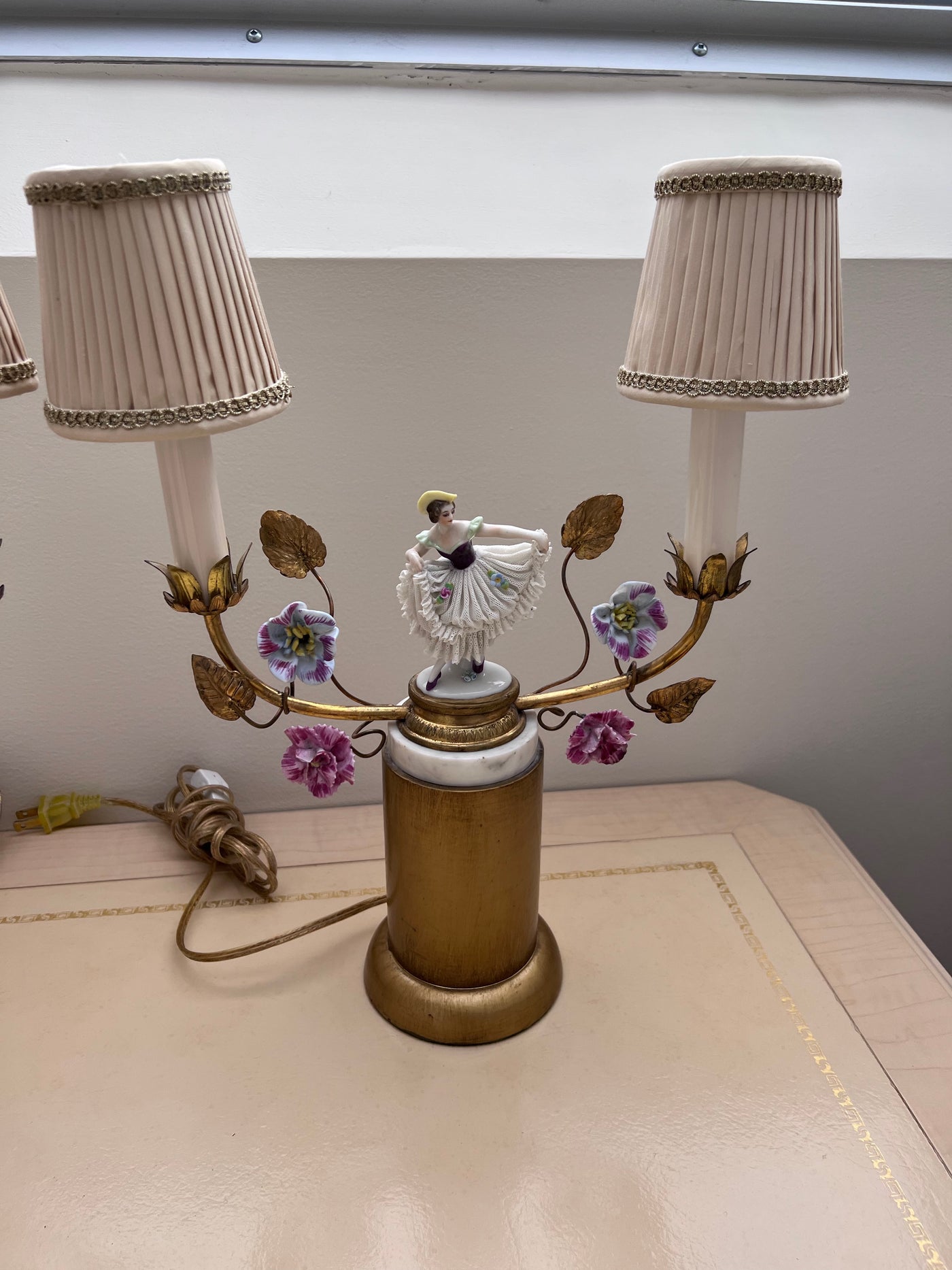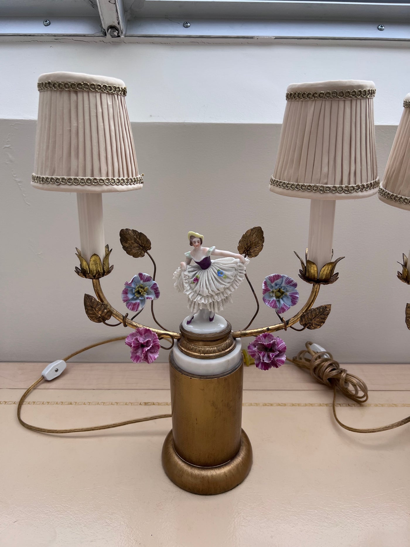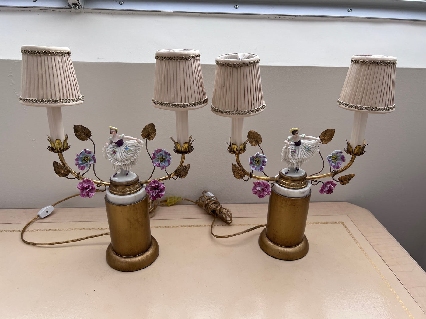 Pair of Beautiful 2-Light Table Lamps, with Porcelain Lace Figurines.