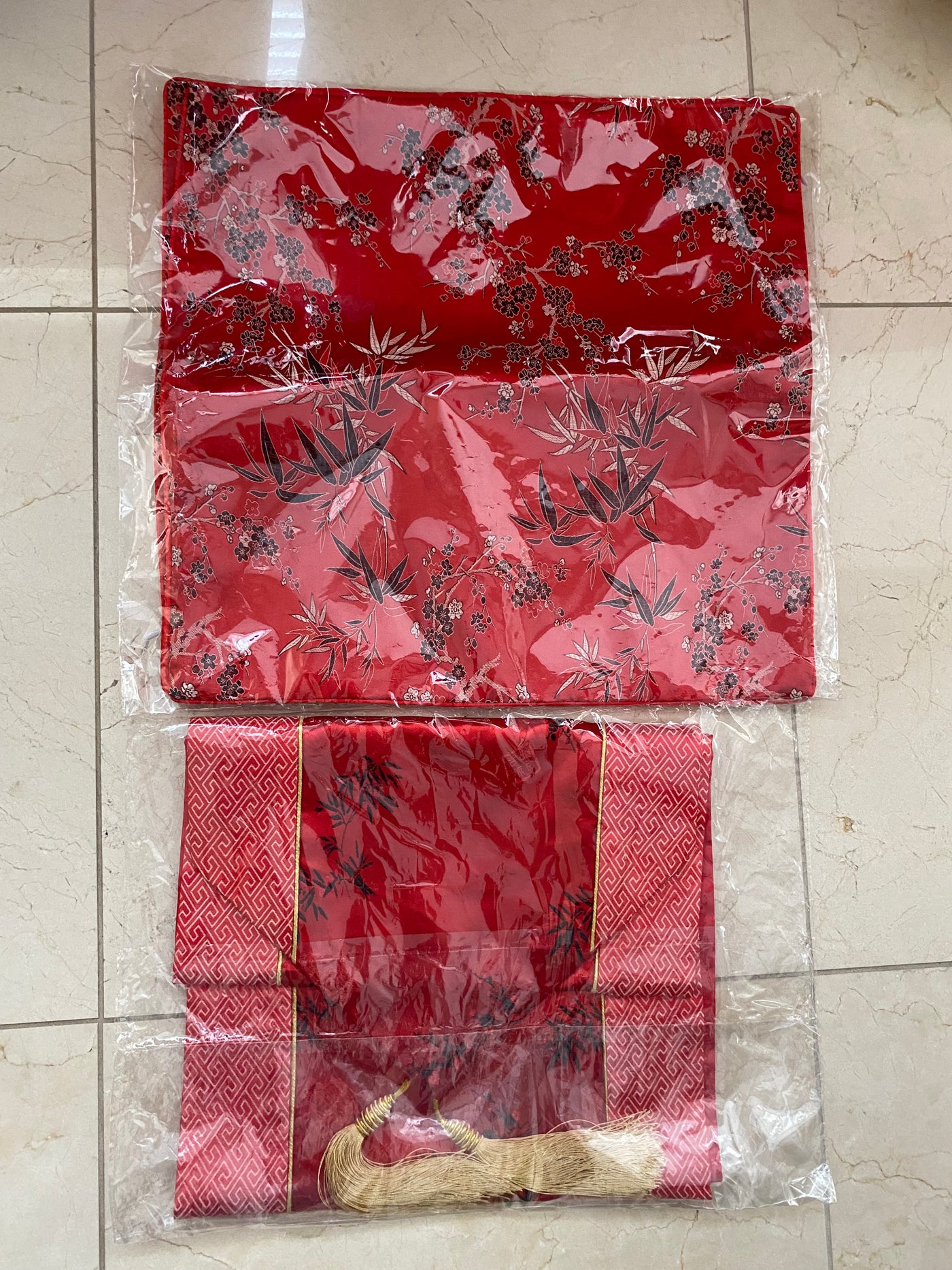 Red Oriental Table Runner & 2 Zippered Pillow Covers.