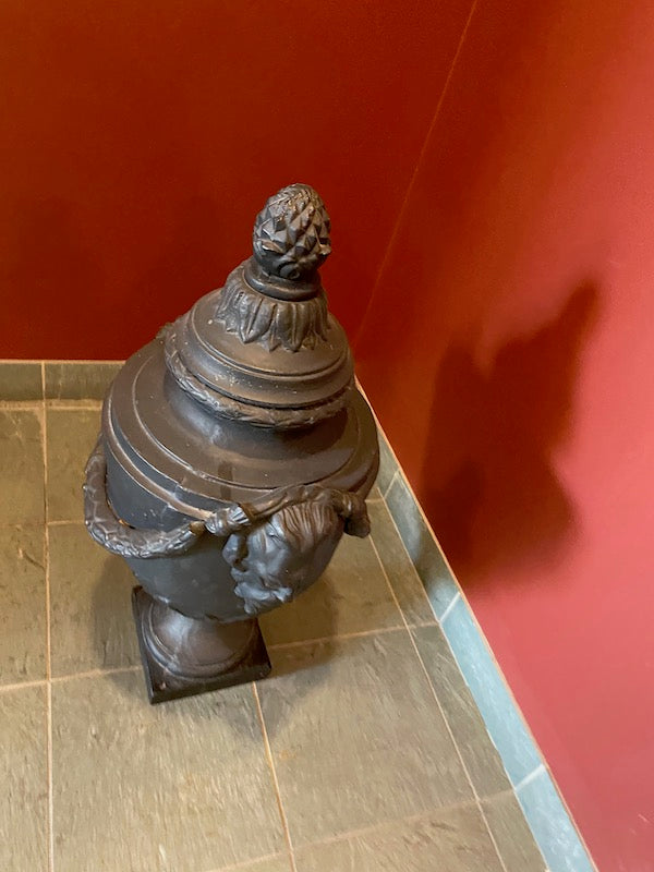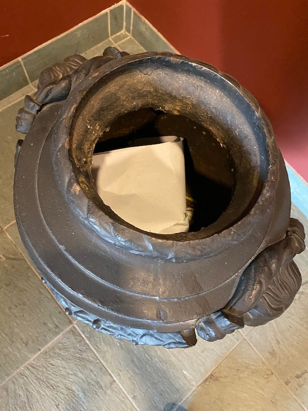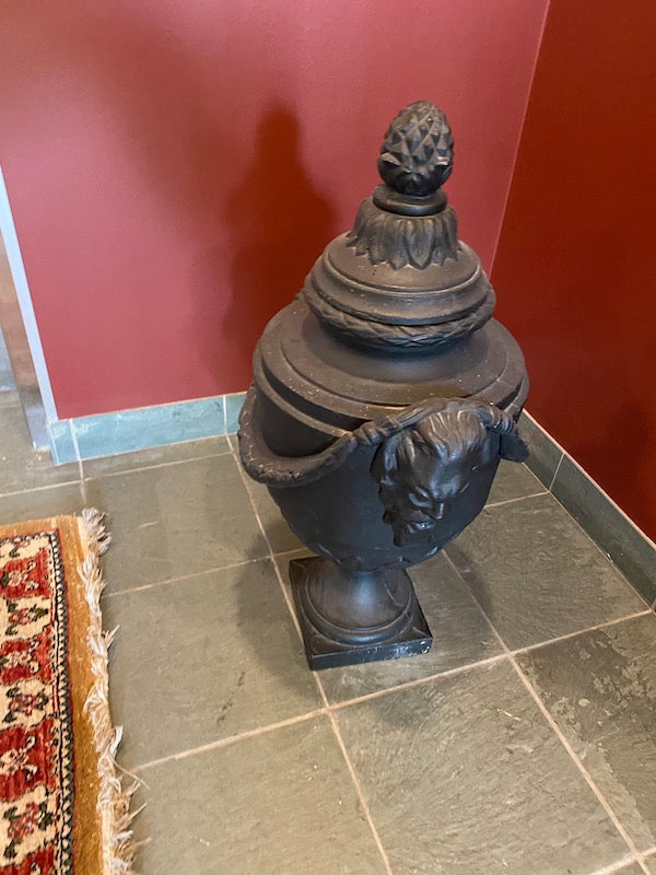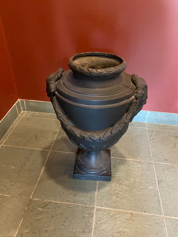 2 Black Cast Iron Urns.