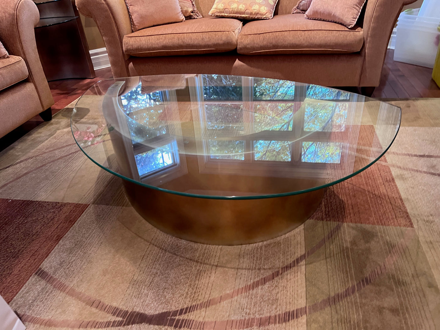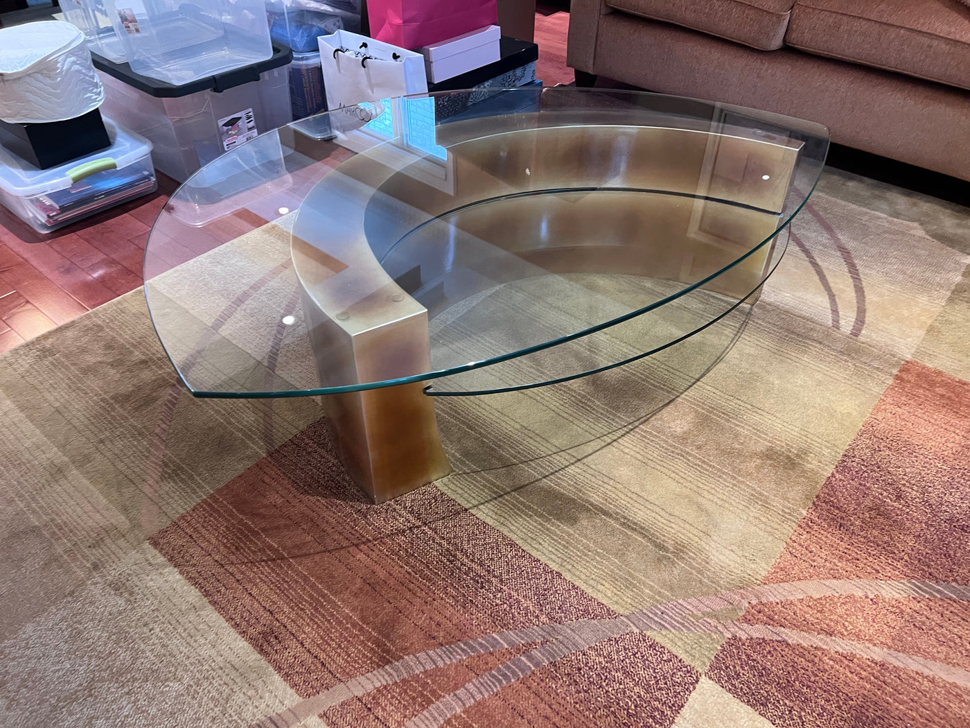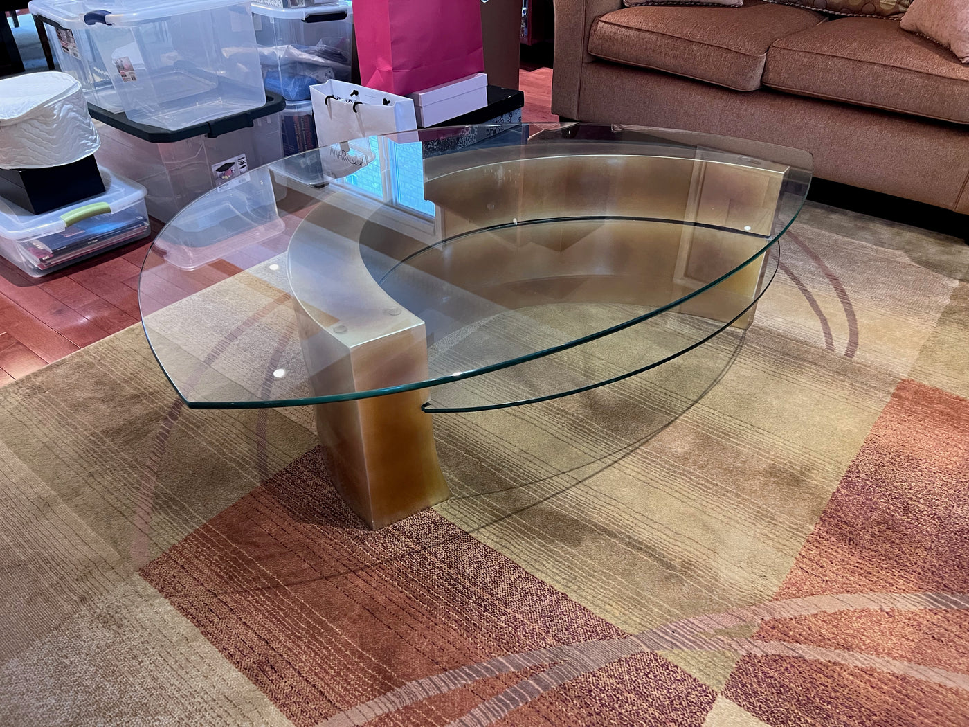 Martin Daniels 2-Tier Teardrop Glass Coffee Table.