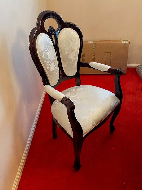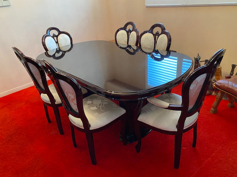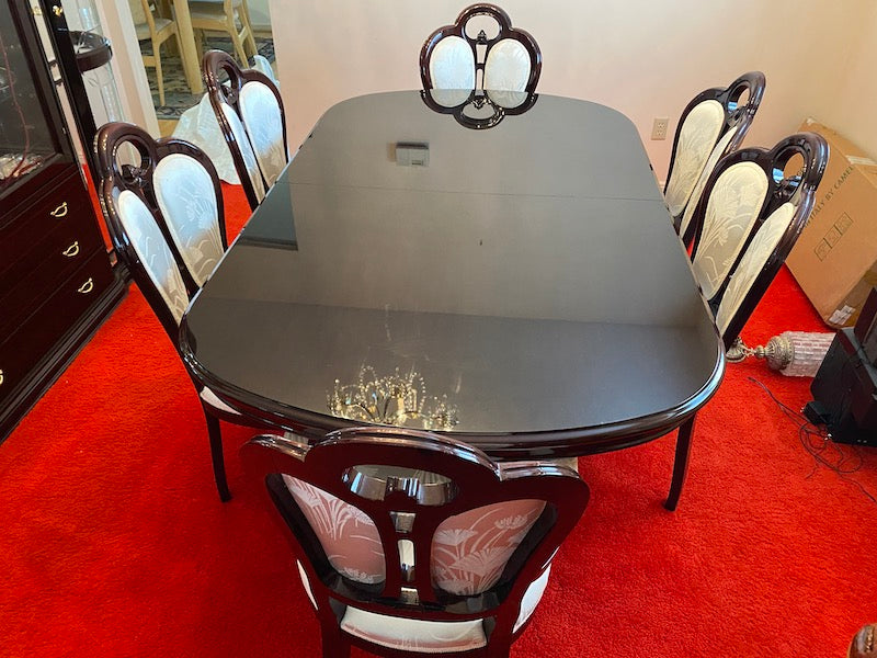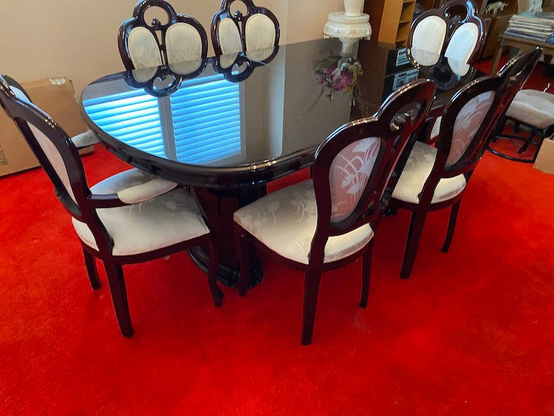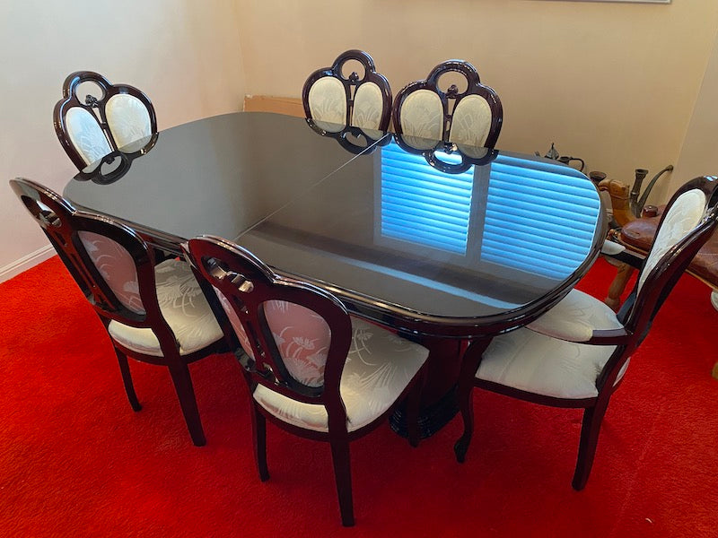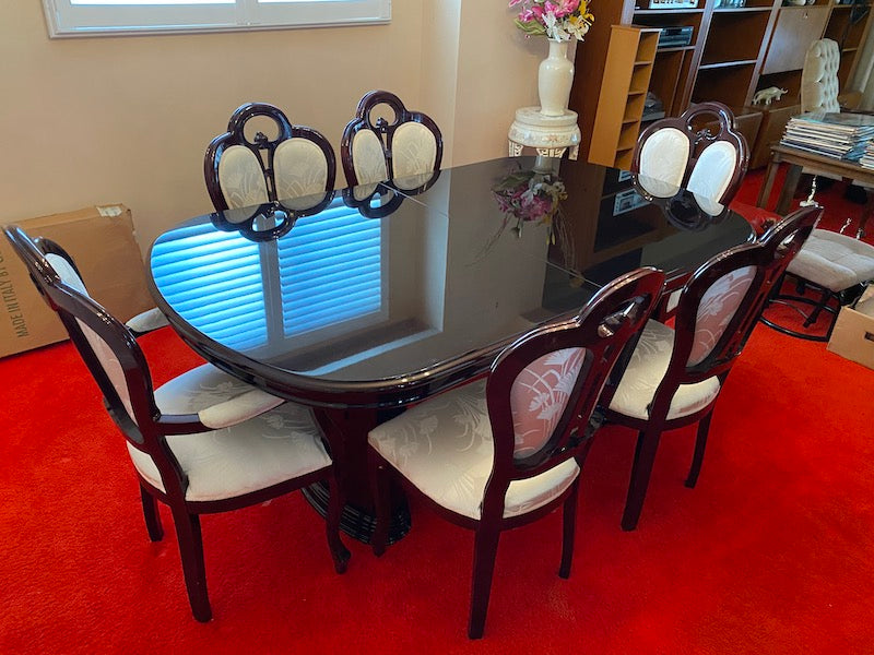 Vintage Mahogany Dining Table + 6 Chairs (veneer finish), Made in Italy.