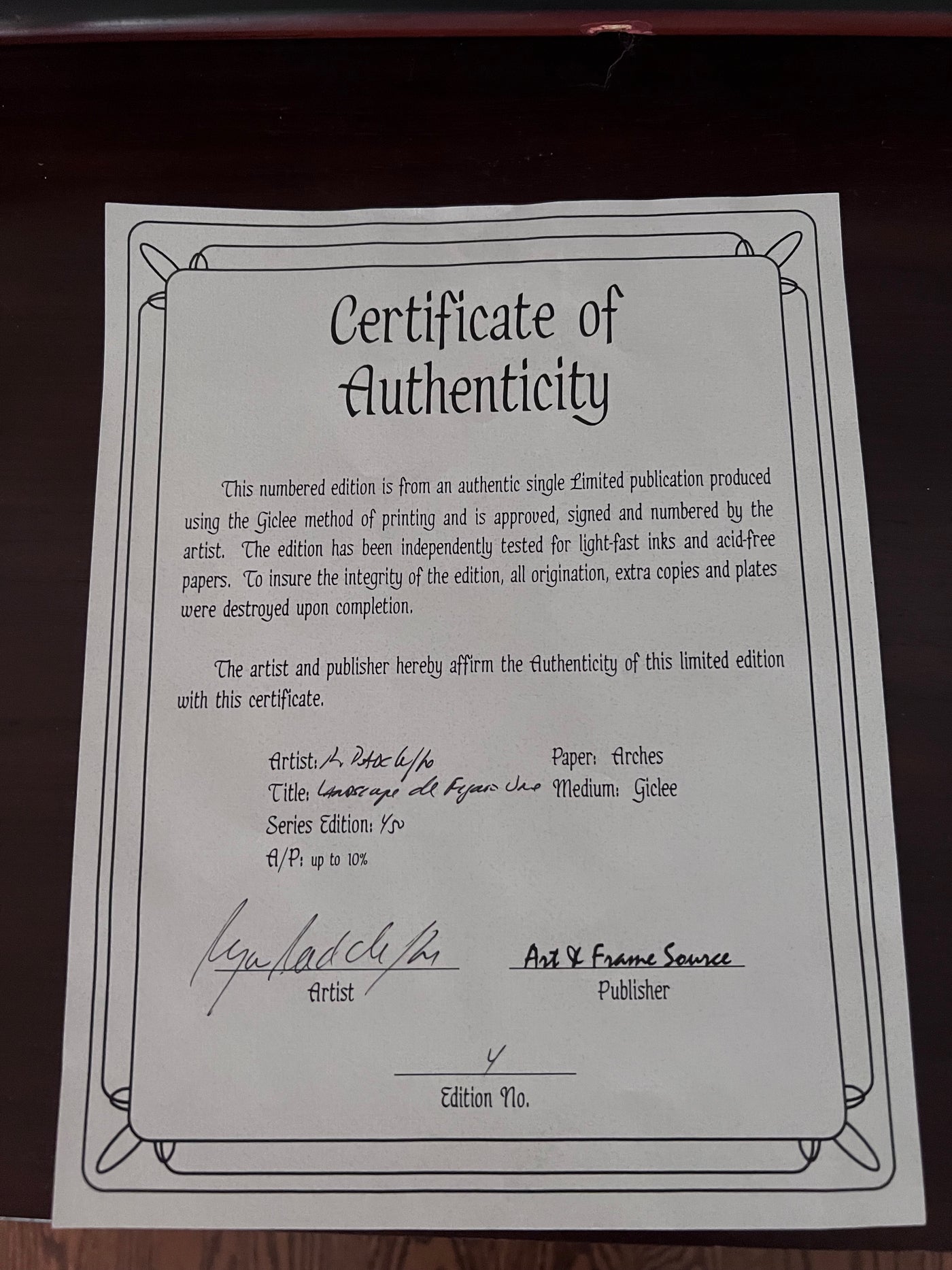 Limited Edition Giclee Print- "Landscape di Fegaro Une". Certificate of Authenticity included.
