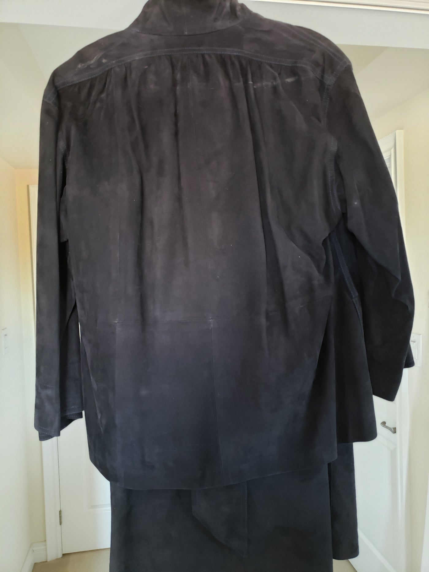 Furs Ettex Paris - Jacket and Skirt Set Dark Grey (Suede). Beautiful Set with belt. Made in France.