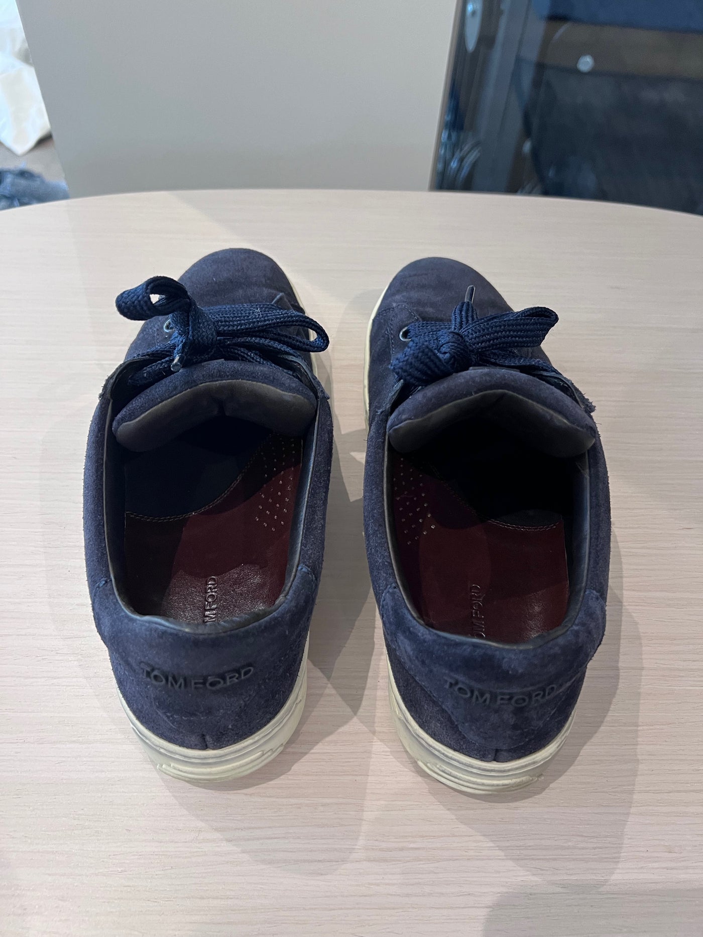 Men's Tom Ford Navy Blue Suede Low Top Russell Sneaker, Size 7