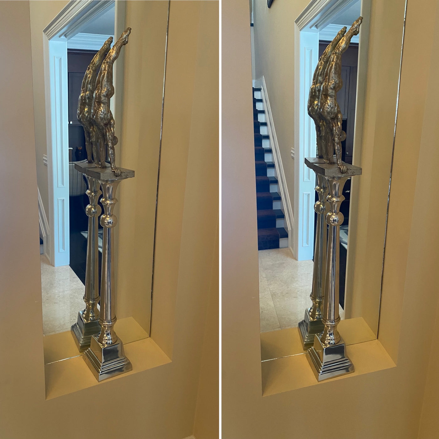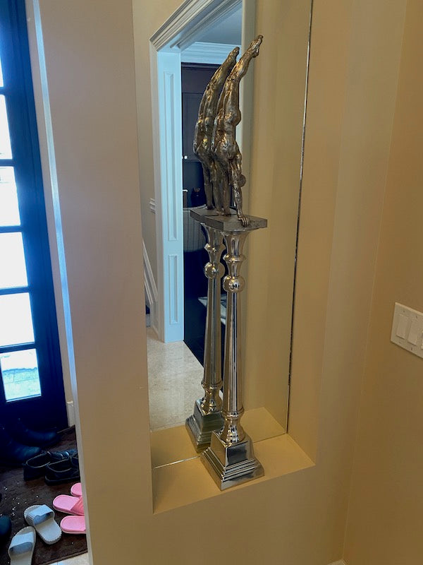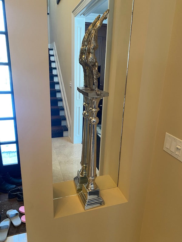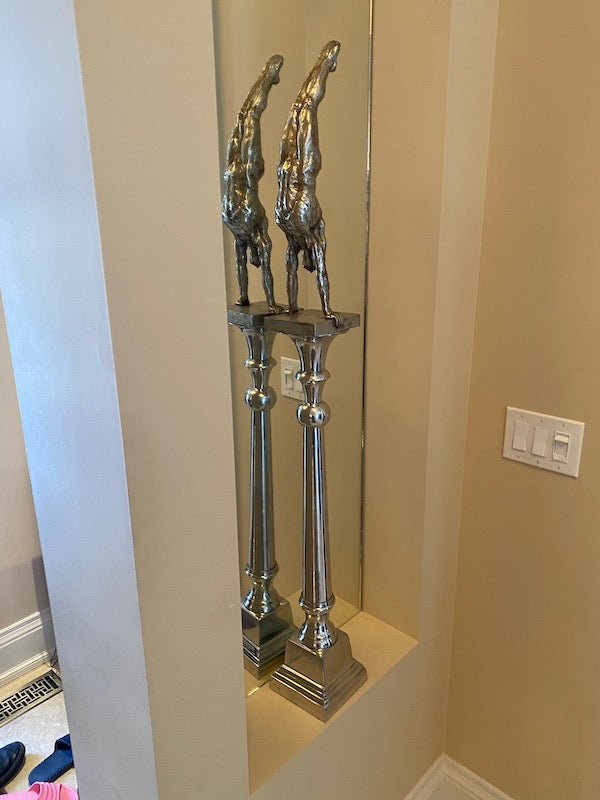 Pair of Decor Statues on 'Abbott' Stands. The statue is separate from the stand-- it is not connected but rather just sitting on top.