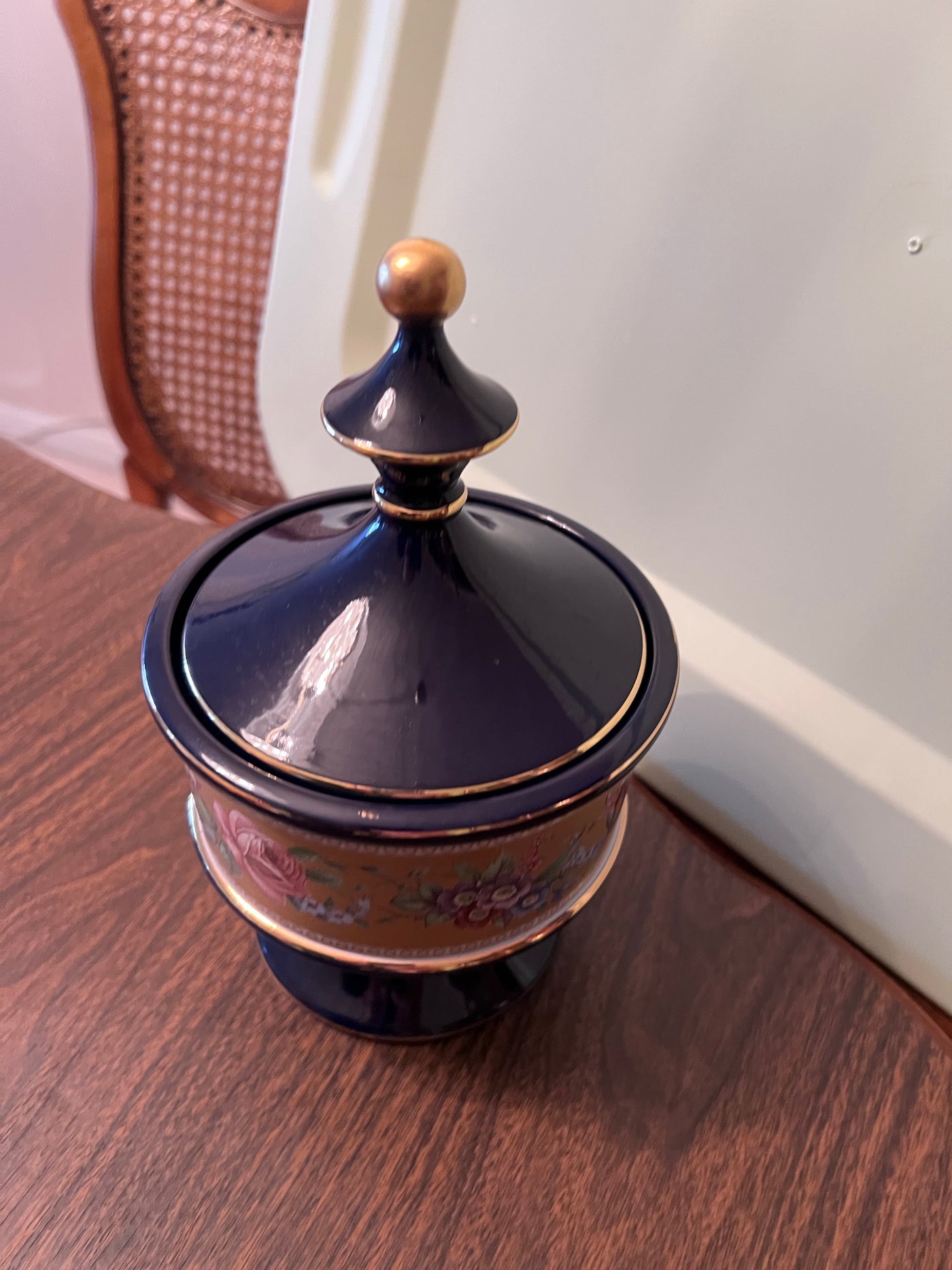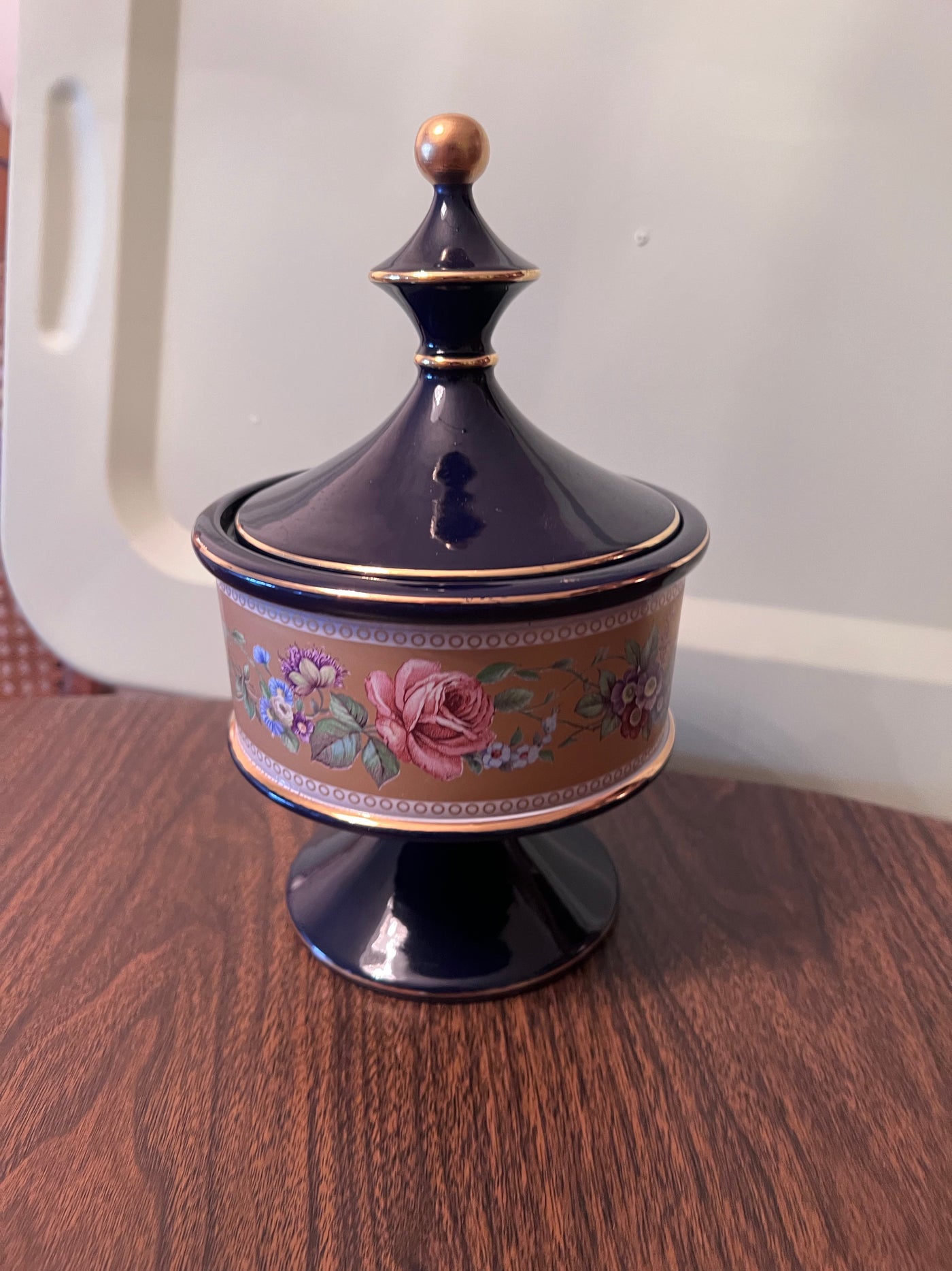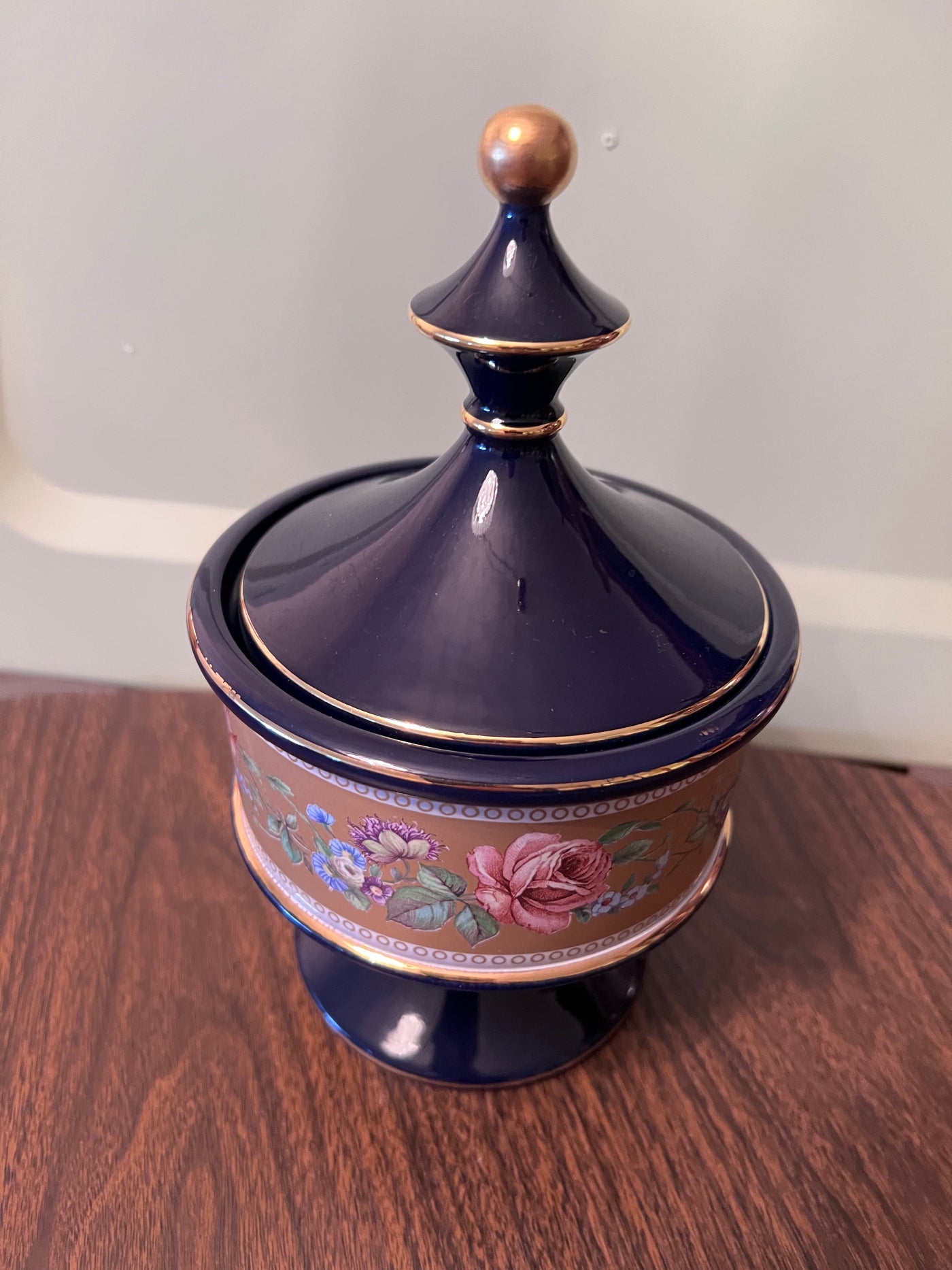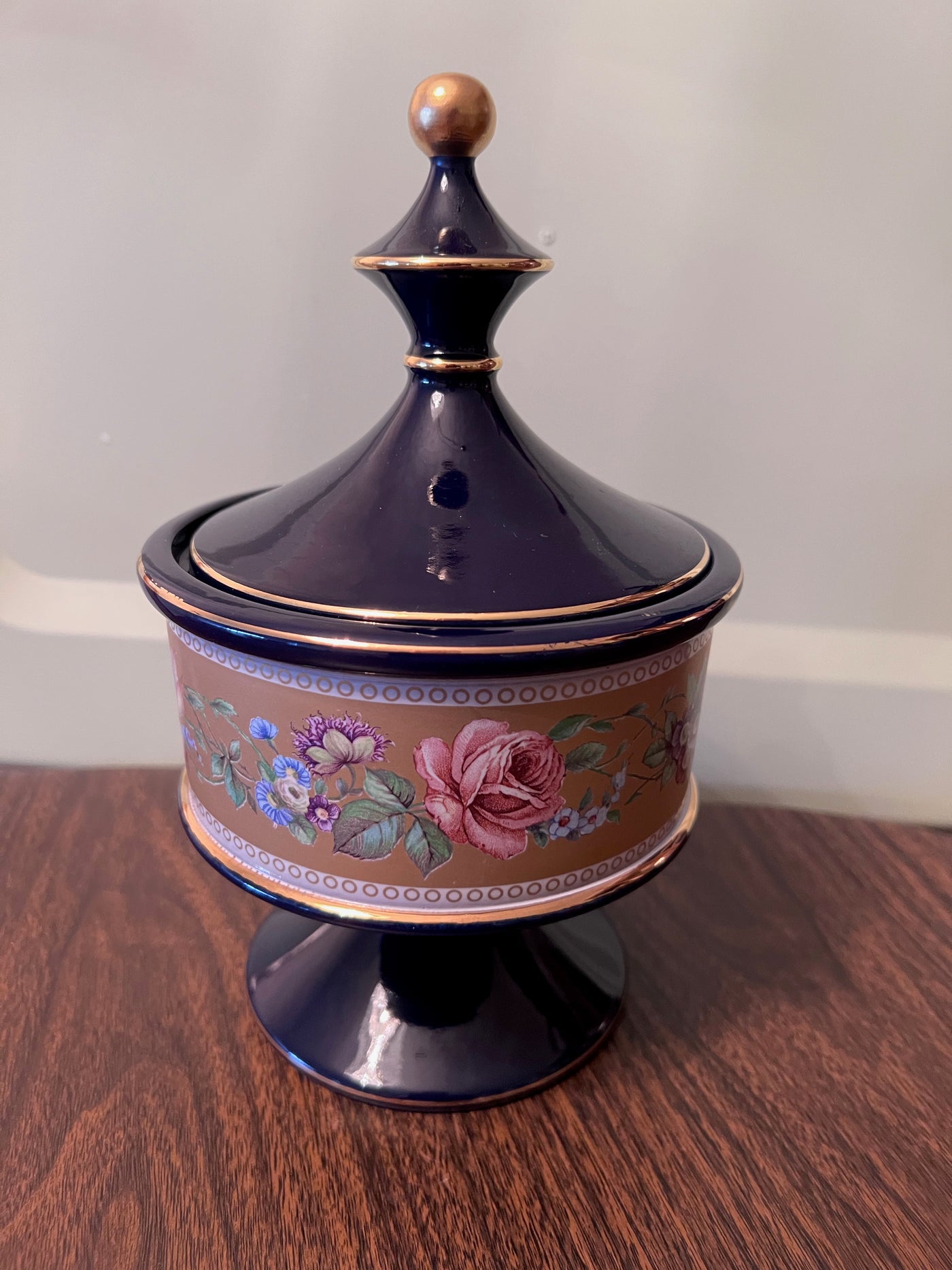 Hand Made G. Florentine Cobalt Blue Lidded Compote Covered Dish- Made in Italy.