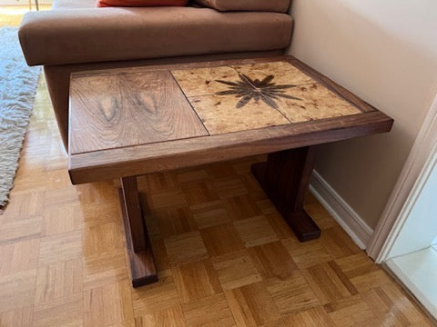 Vintage Rosewood Side Table, Tile Inlay.