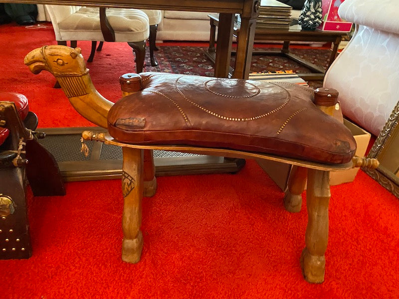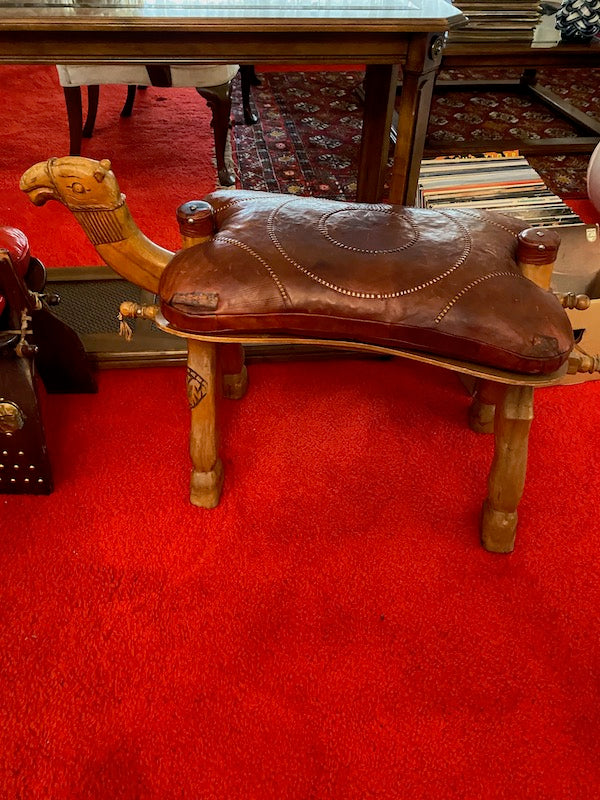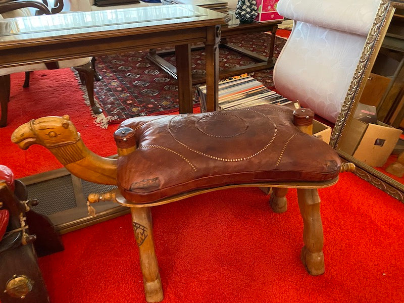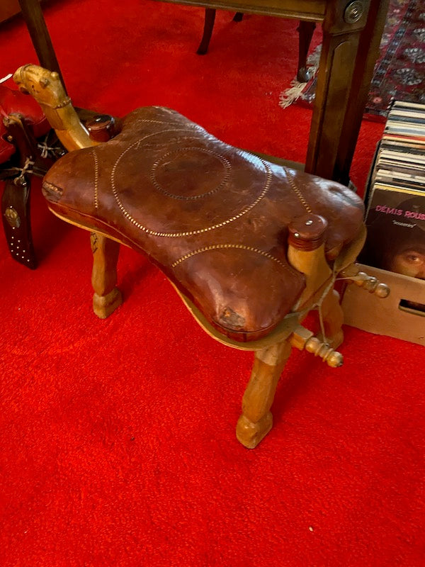 Vintage Leather Camel Stool # 1.