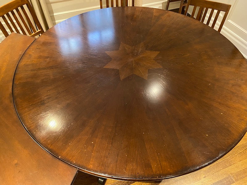 Custom Made Ornate Round Kitchen Table + 6 Chairs (*+ extensions).