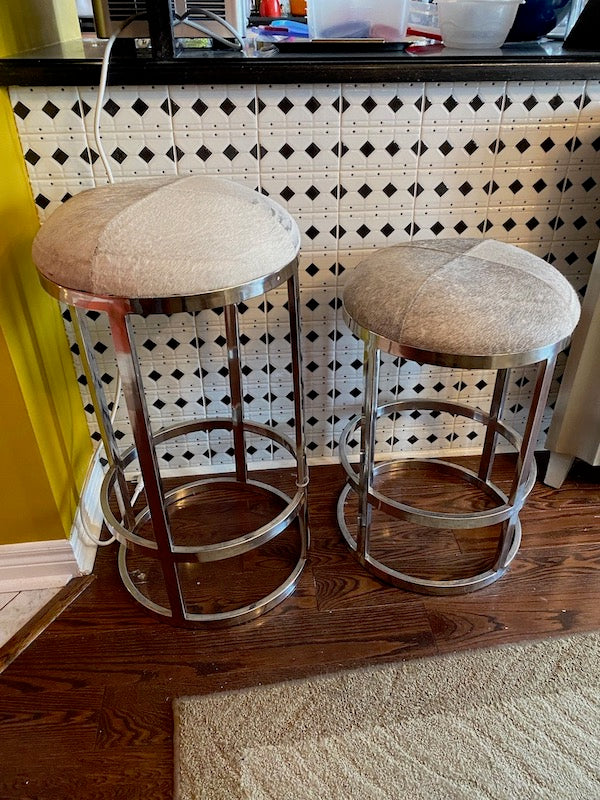 1 Faux Fur Bar Stool, 1 Faux Fur Counter Stool.