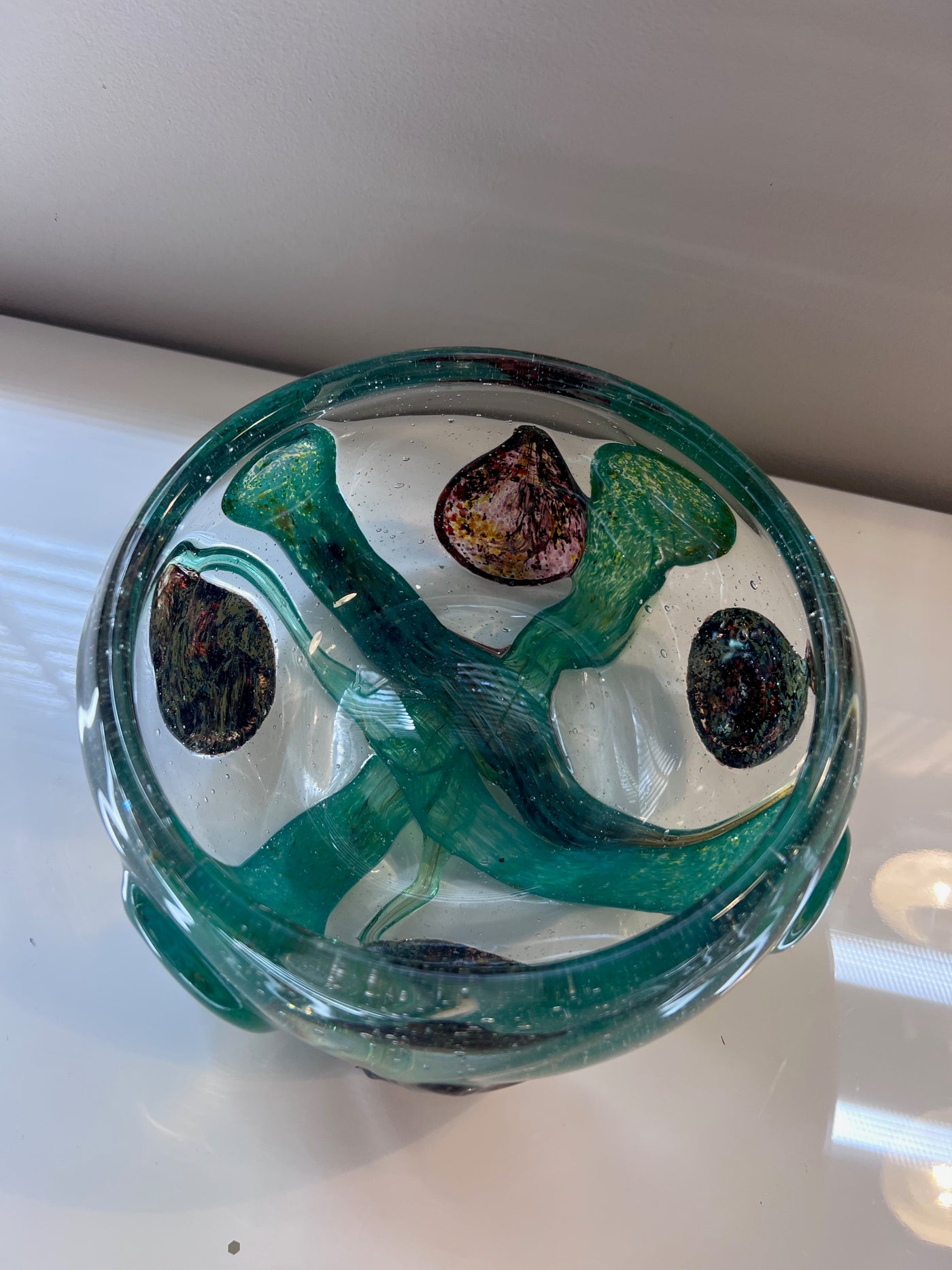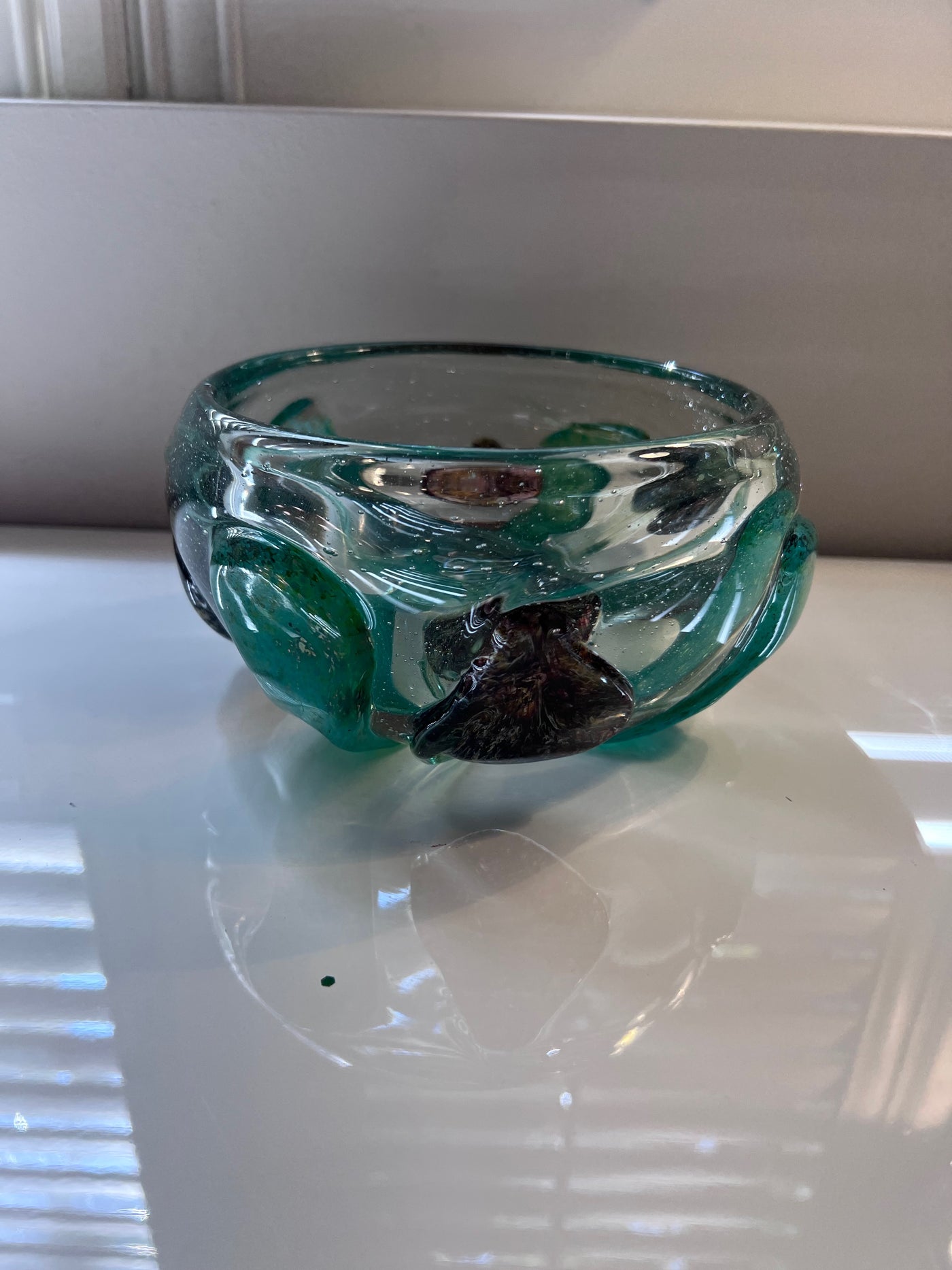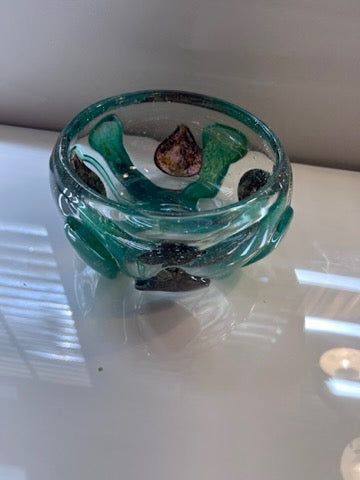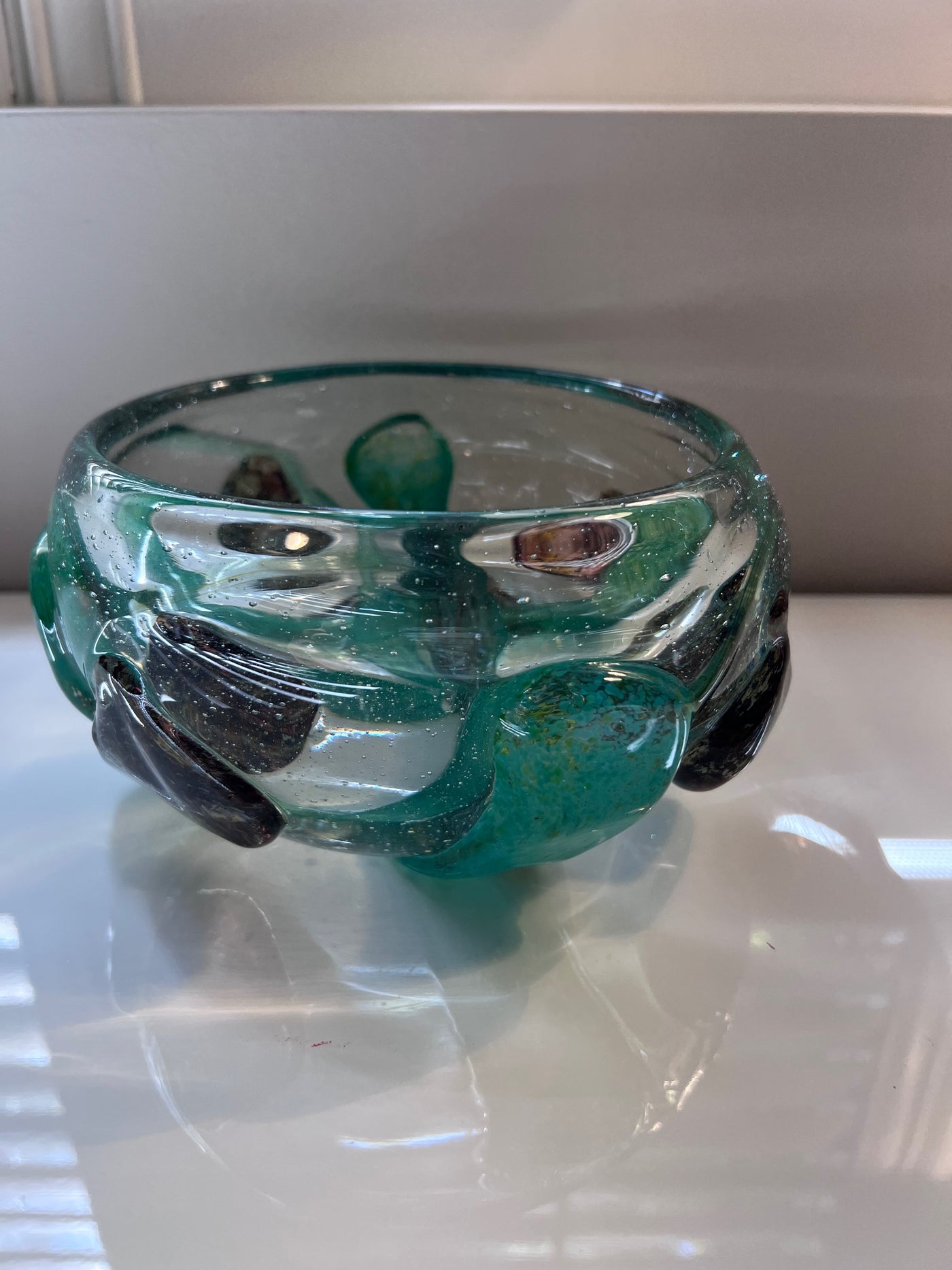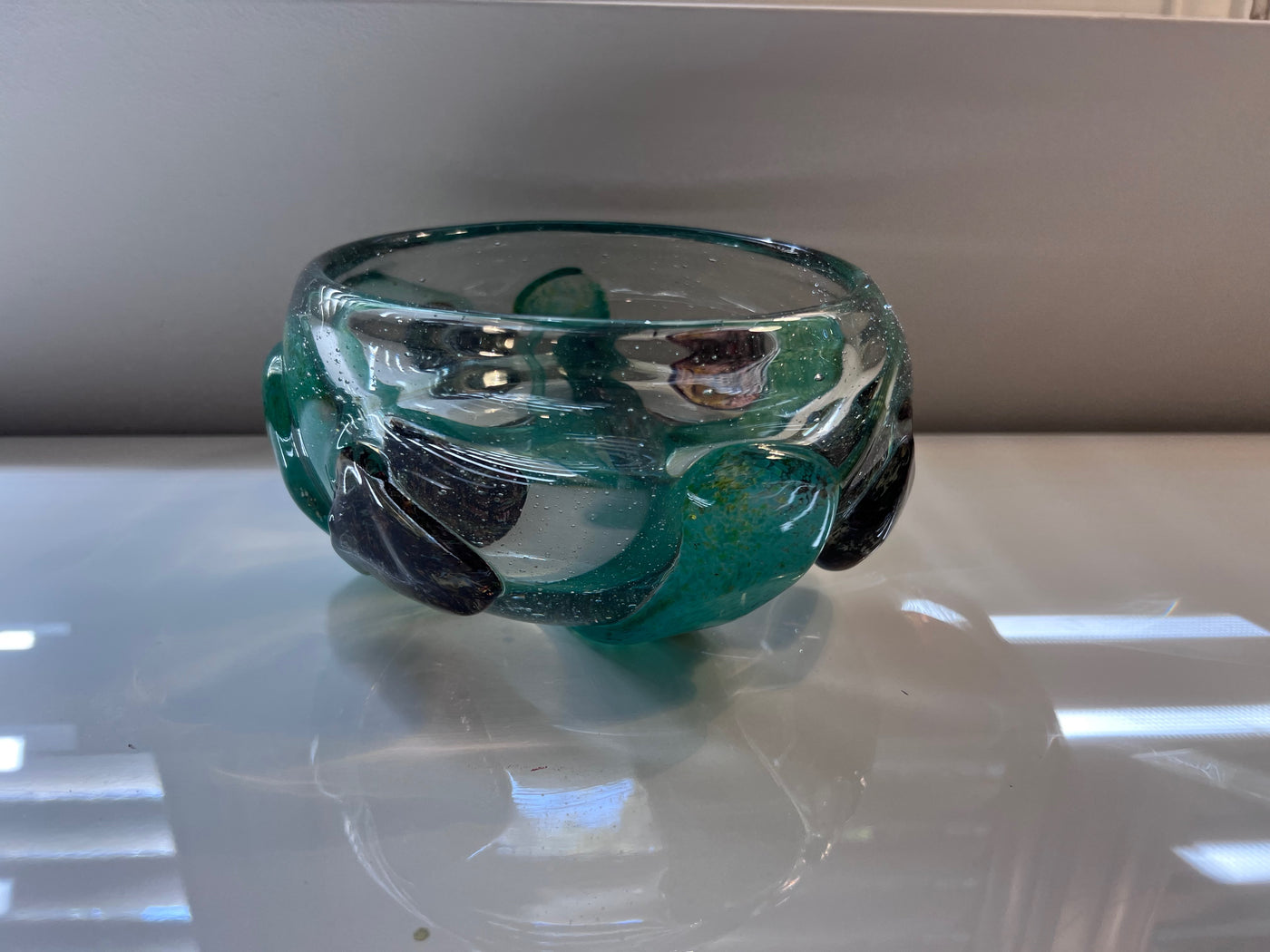 Green Art Glass Bowl by Shirley Cloete, South Africa.