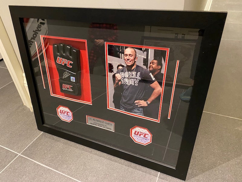 Georges St. Pierre UFC Framed Memorabilia & Signed Glove (COA Attached).