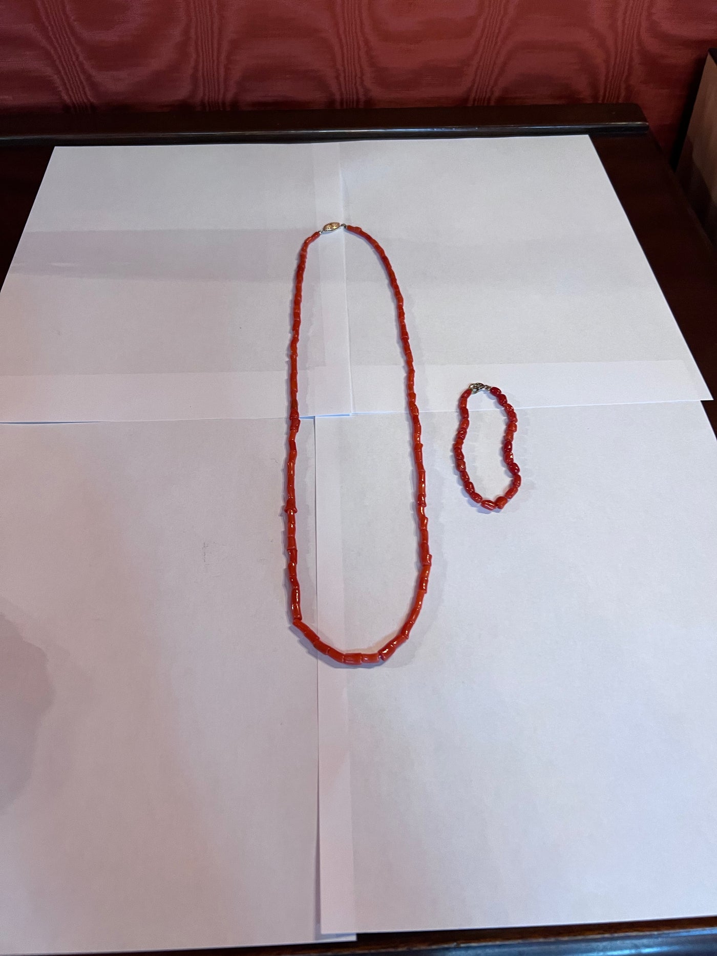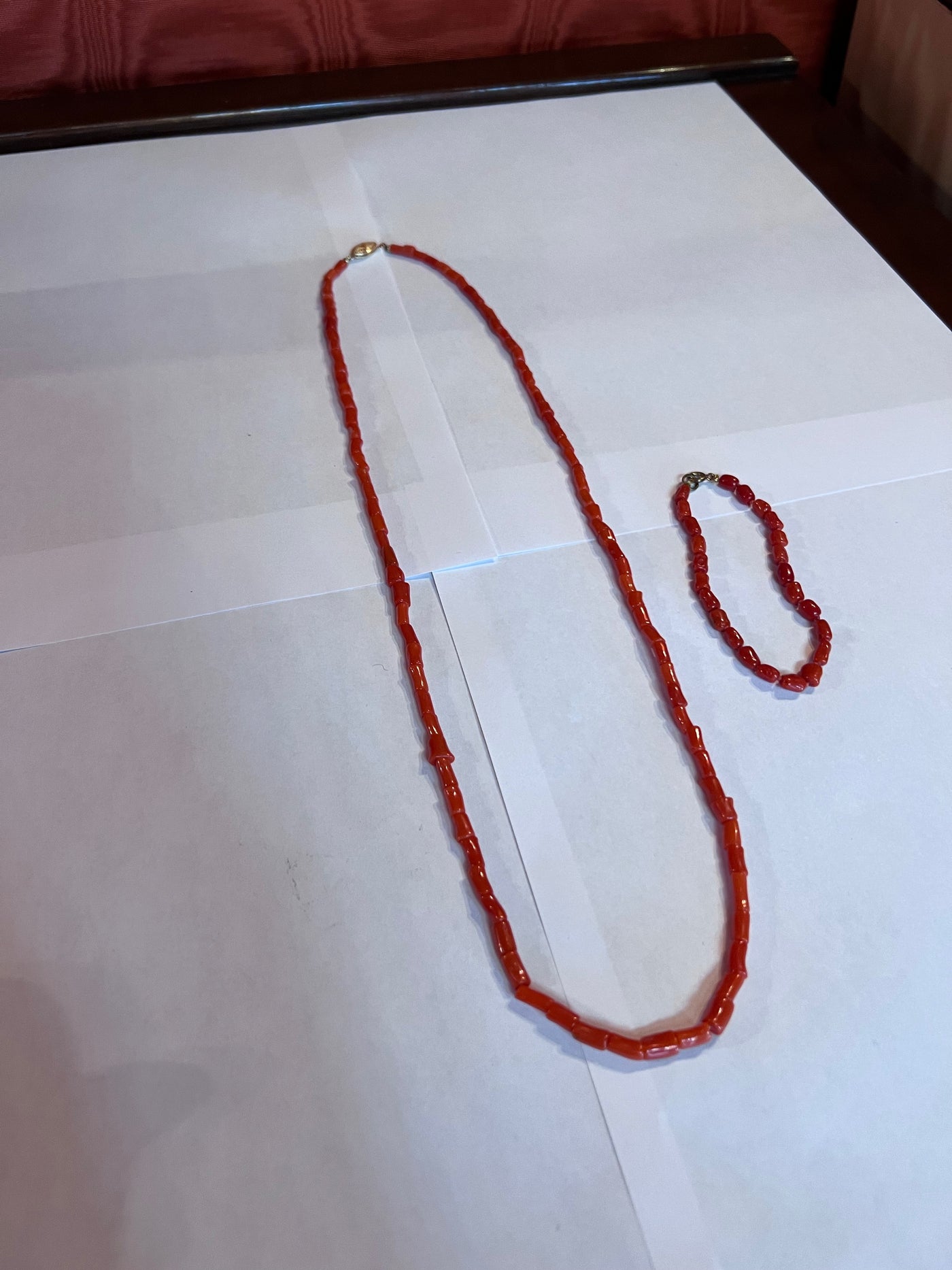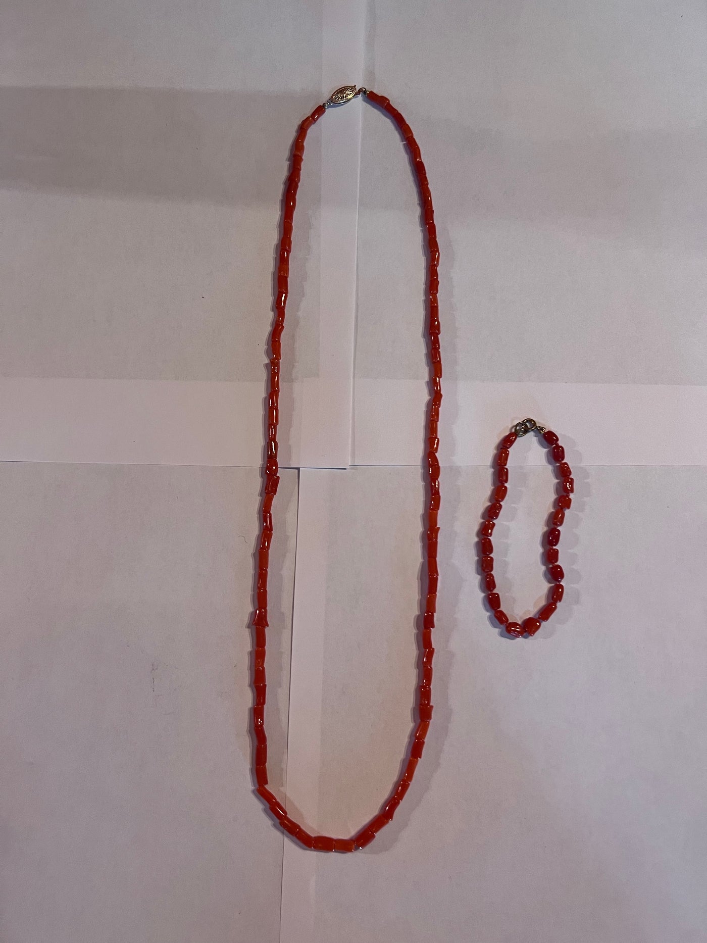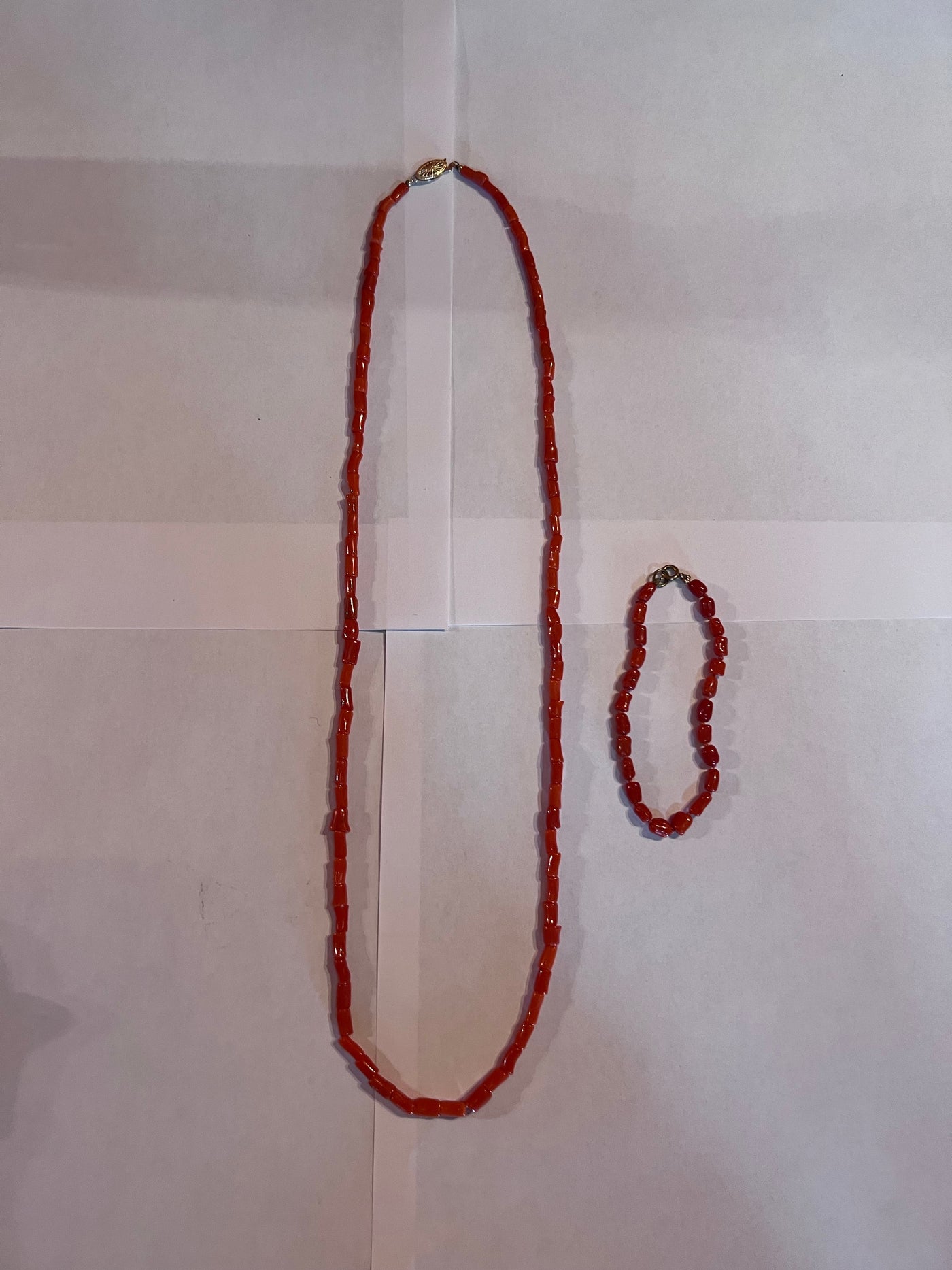 Coral Necklace + Bracelet, 14k Gold Clasps.