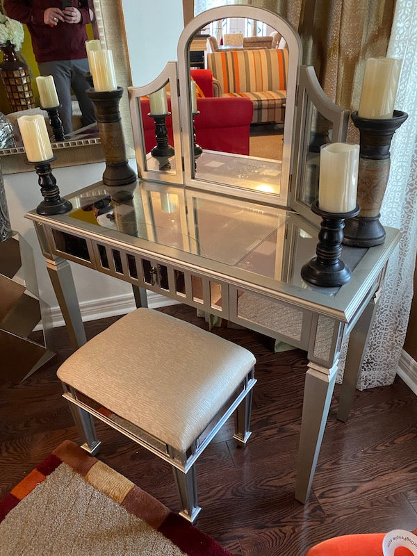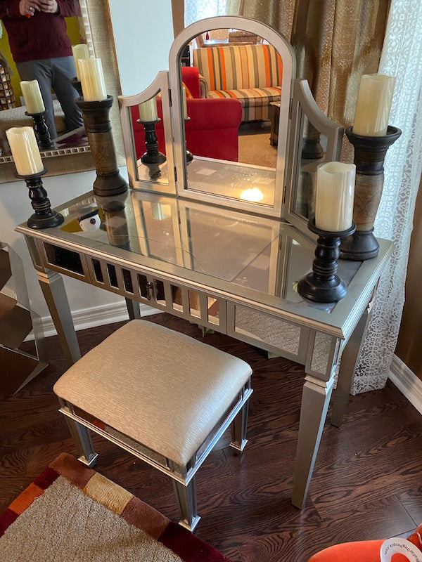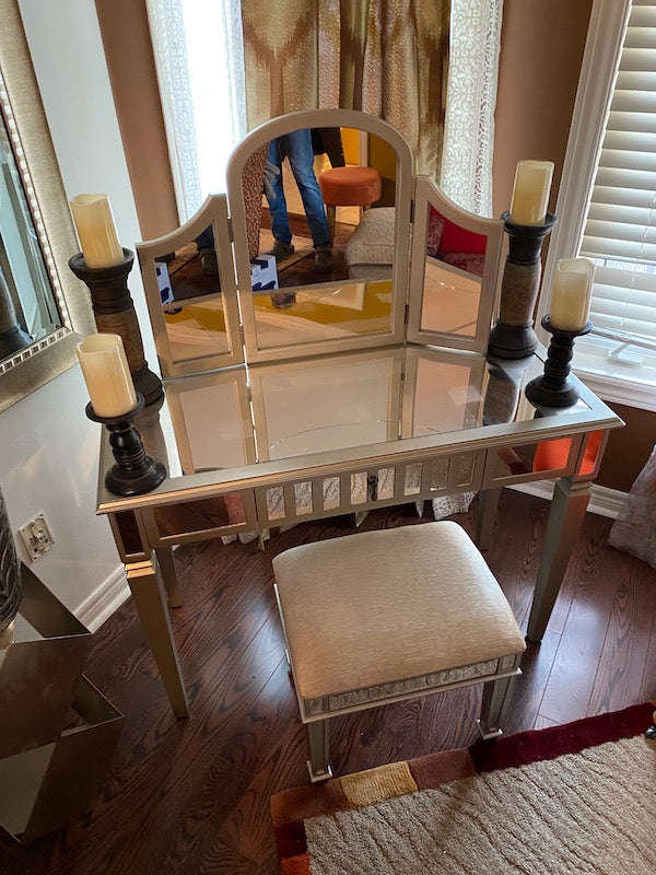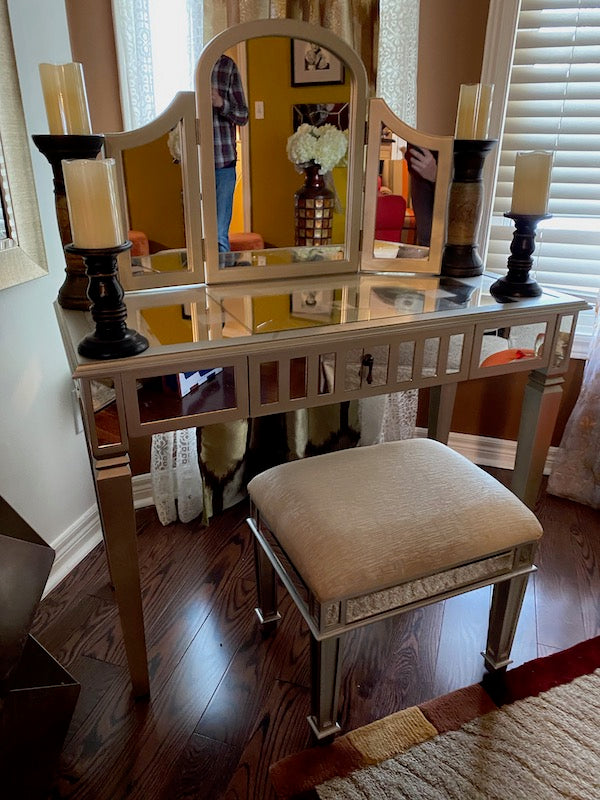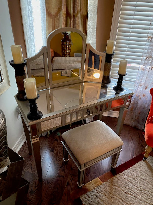 Mirrored Vanity Table + Stool.