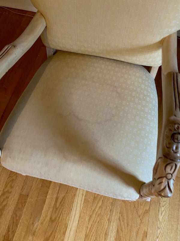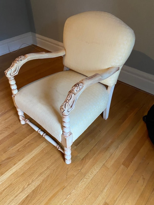 Vintage Low Profile Chair, Carved Wood Frame.