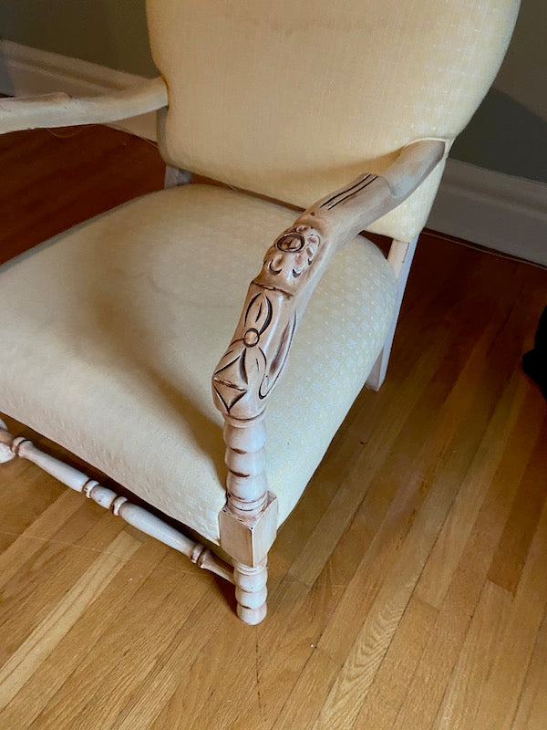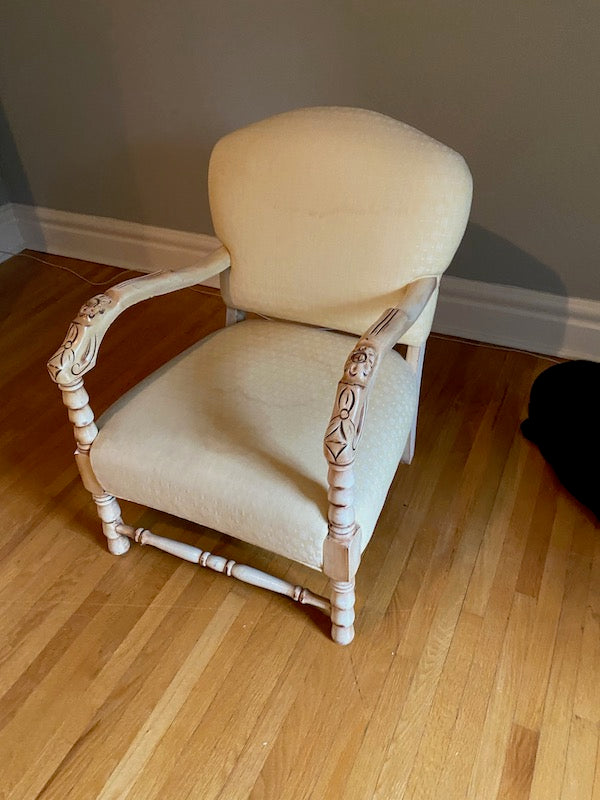 Vintage Low Profile Chair, Carved Wood Frame