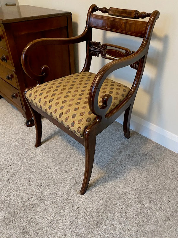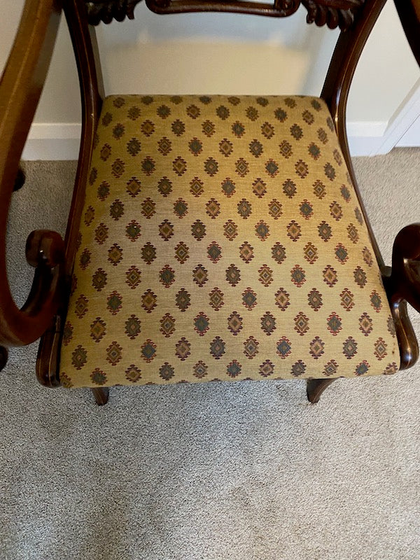 *PLEASE NOTE: the upholstered seat is currently loose from the frame and will need to be secured.