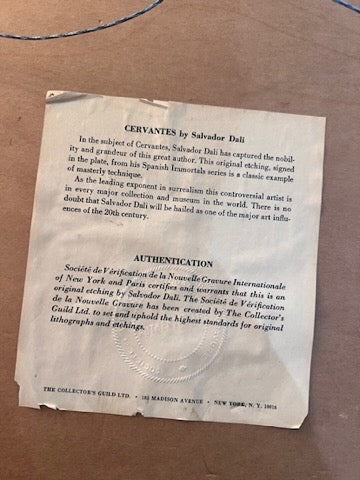 Salvador Dalí 'Cervantes' Etching, signed in the plate- (Collector's Guild Authentication).
