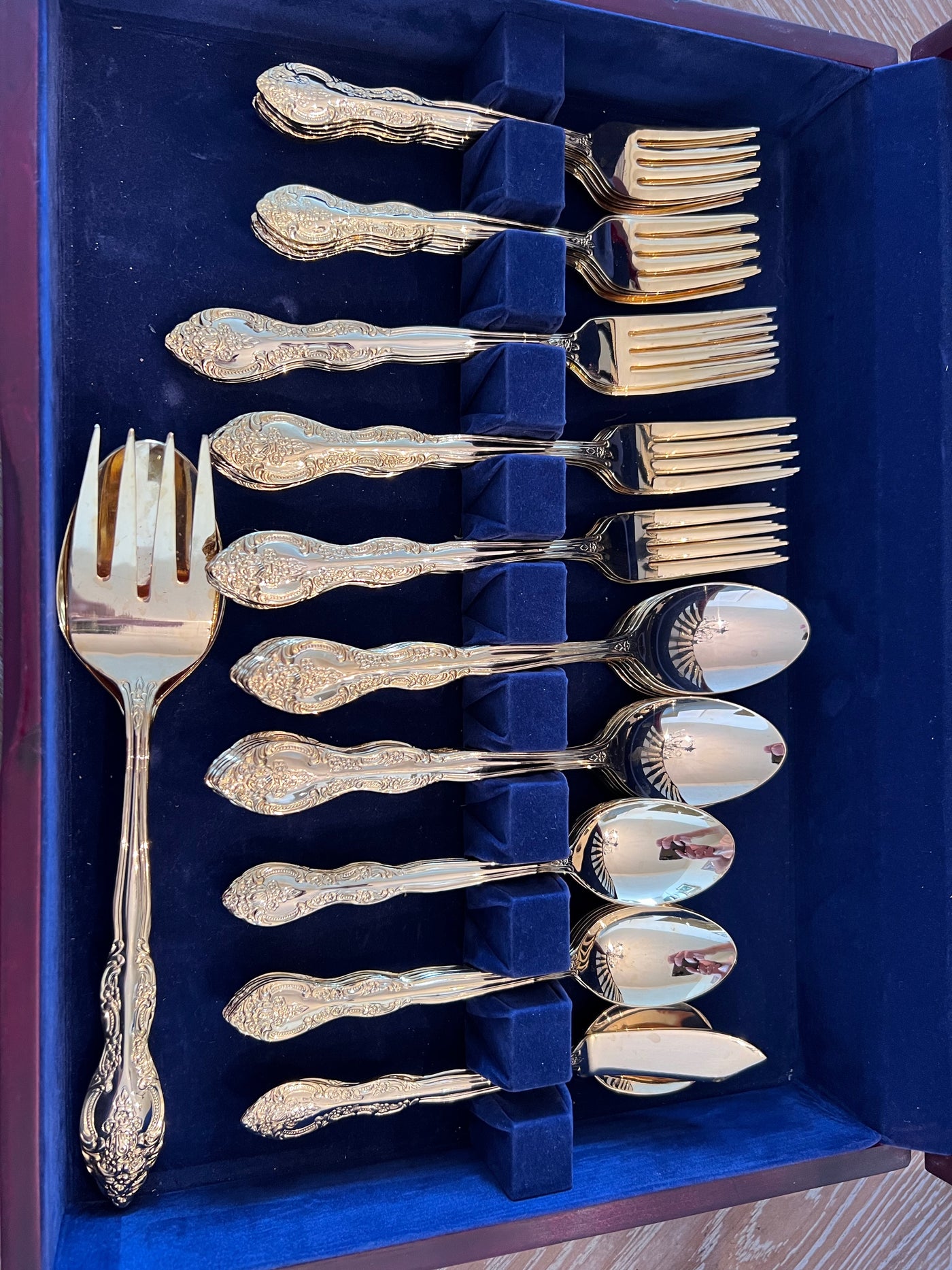 Godinger Stainless Steel Gold Flatware Set in Box.