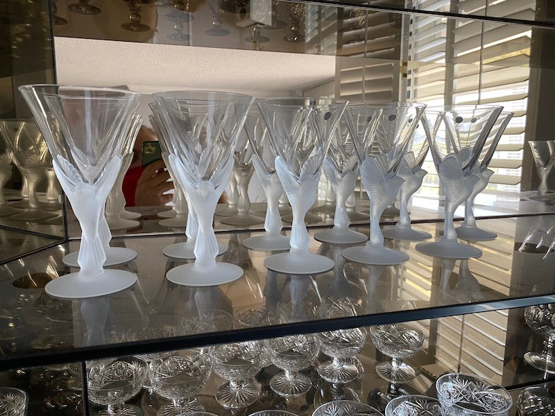 11 Sasaki Crystal "Wings" Wine Glasses. Full lead, Japan.