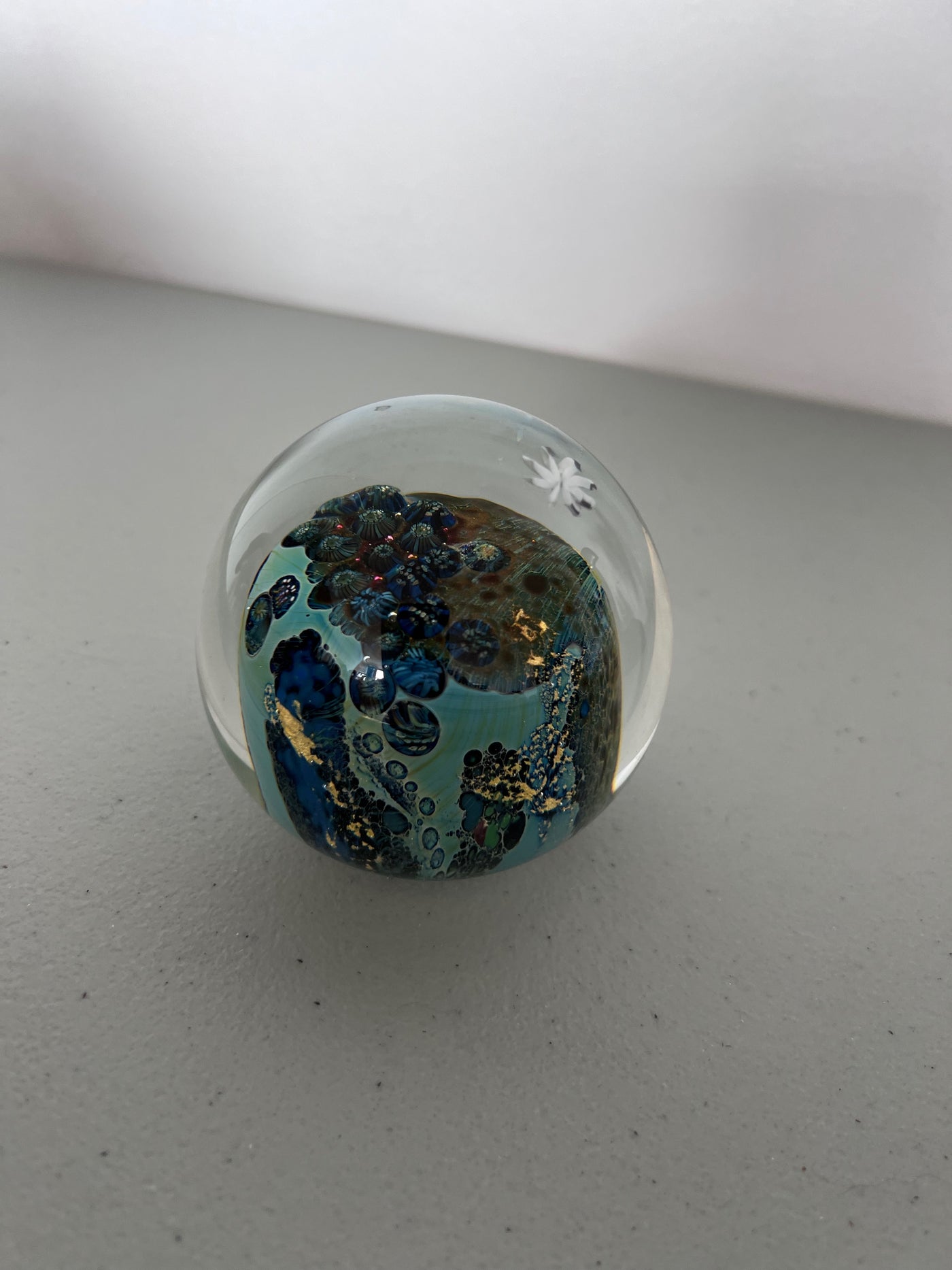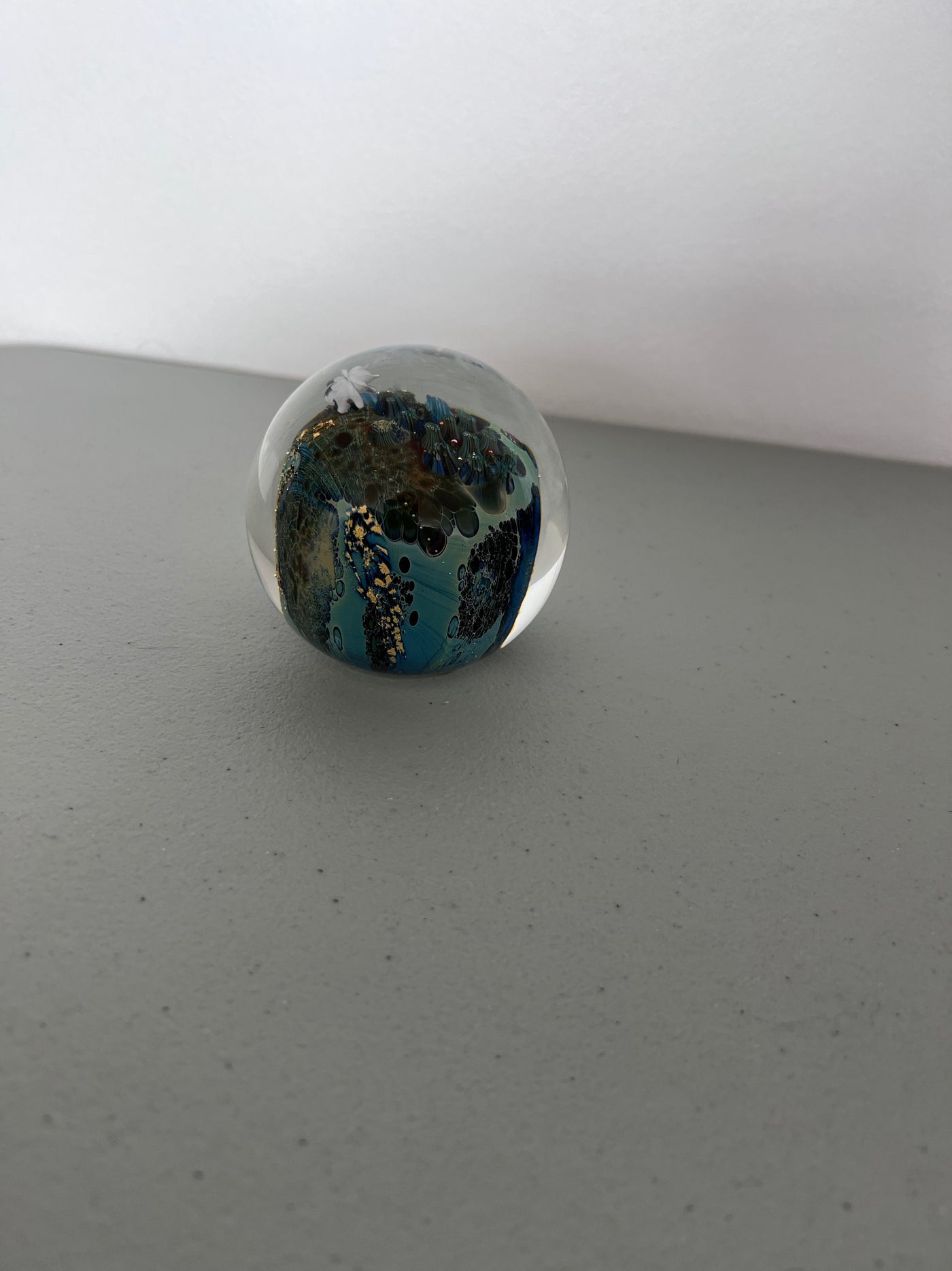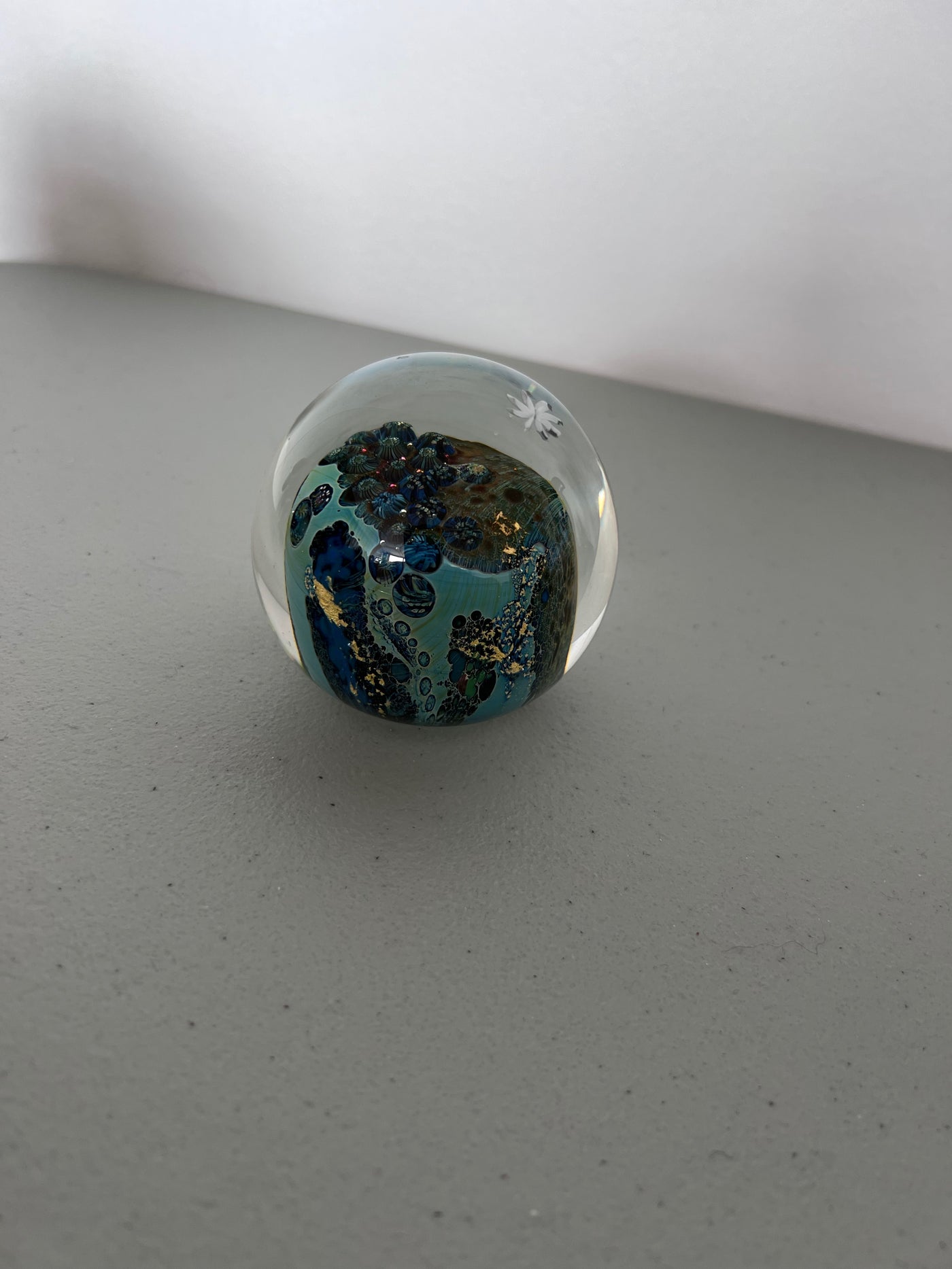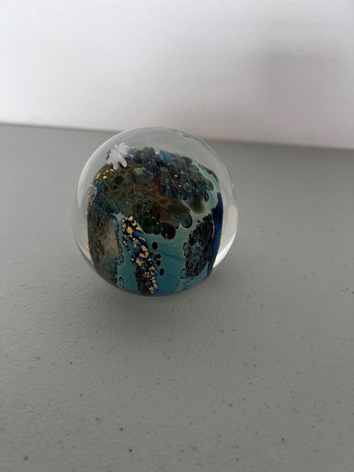 Josh Simpson 'Inhabited Planet' Signed Art Glass Paperweight.