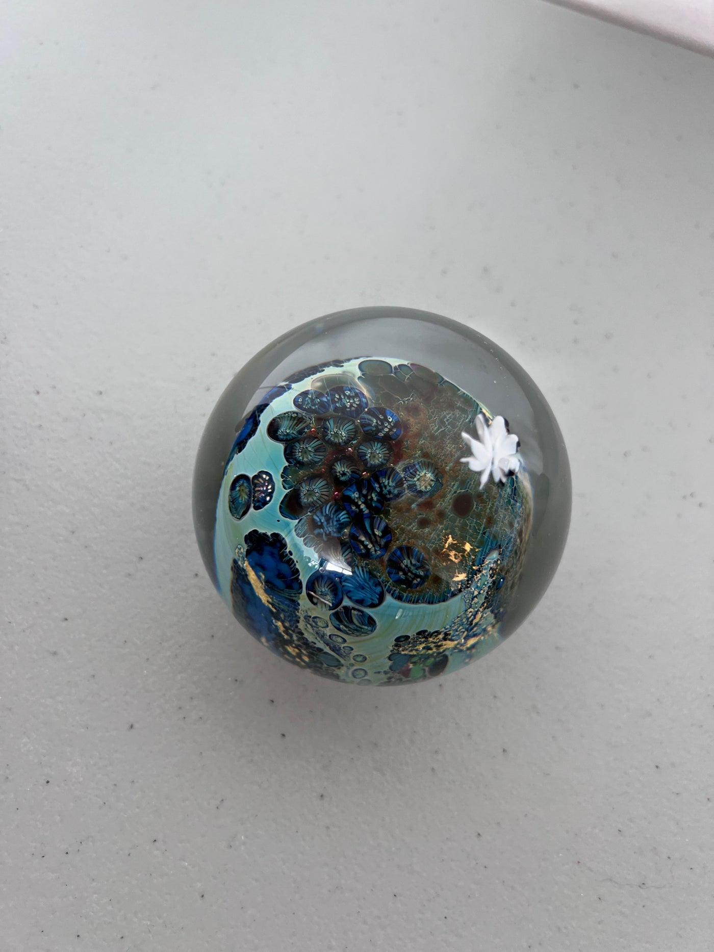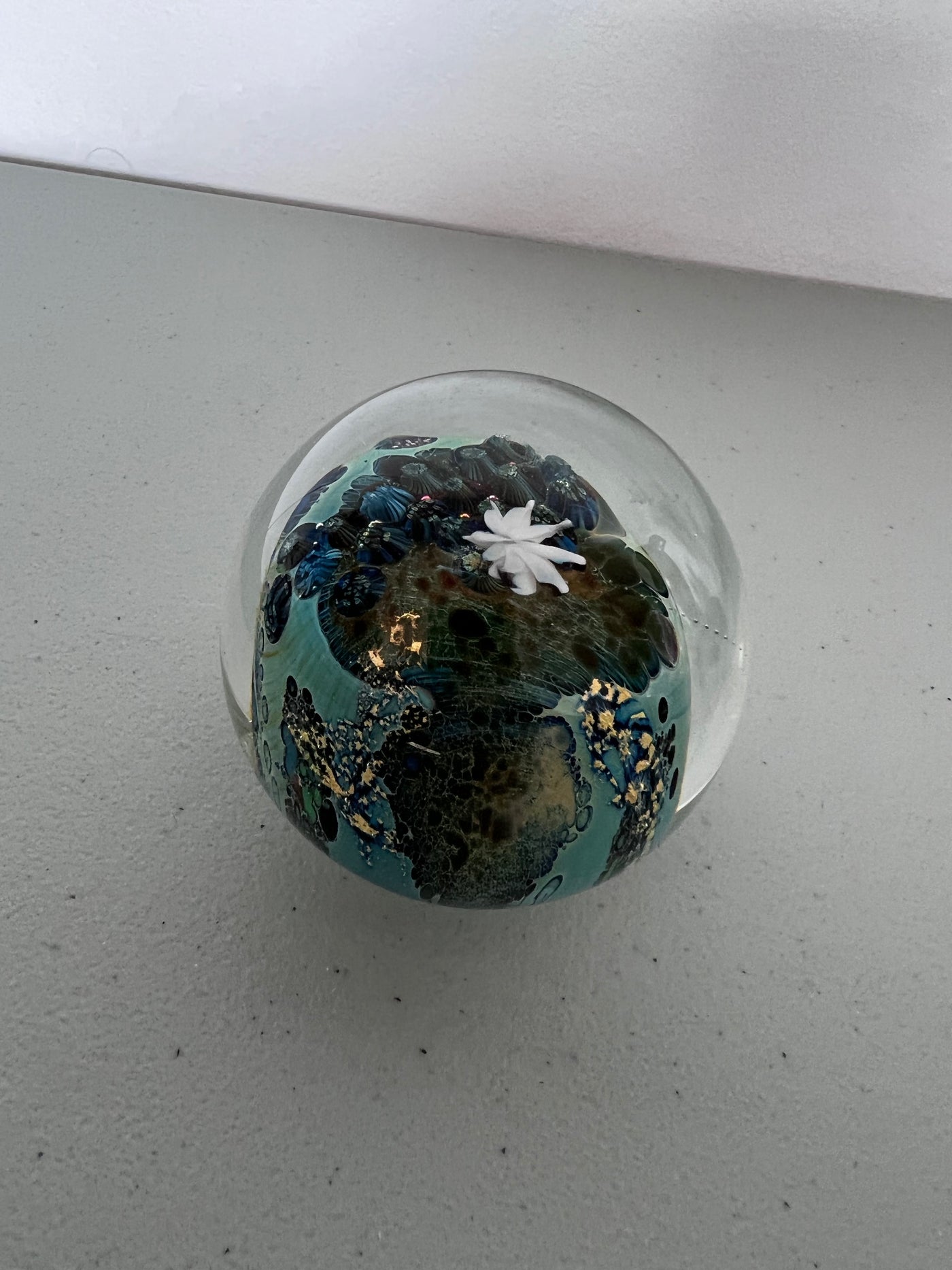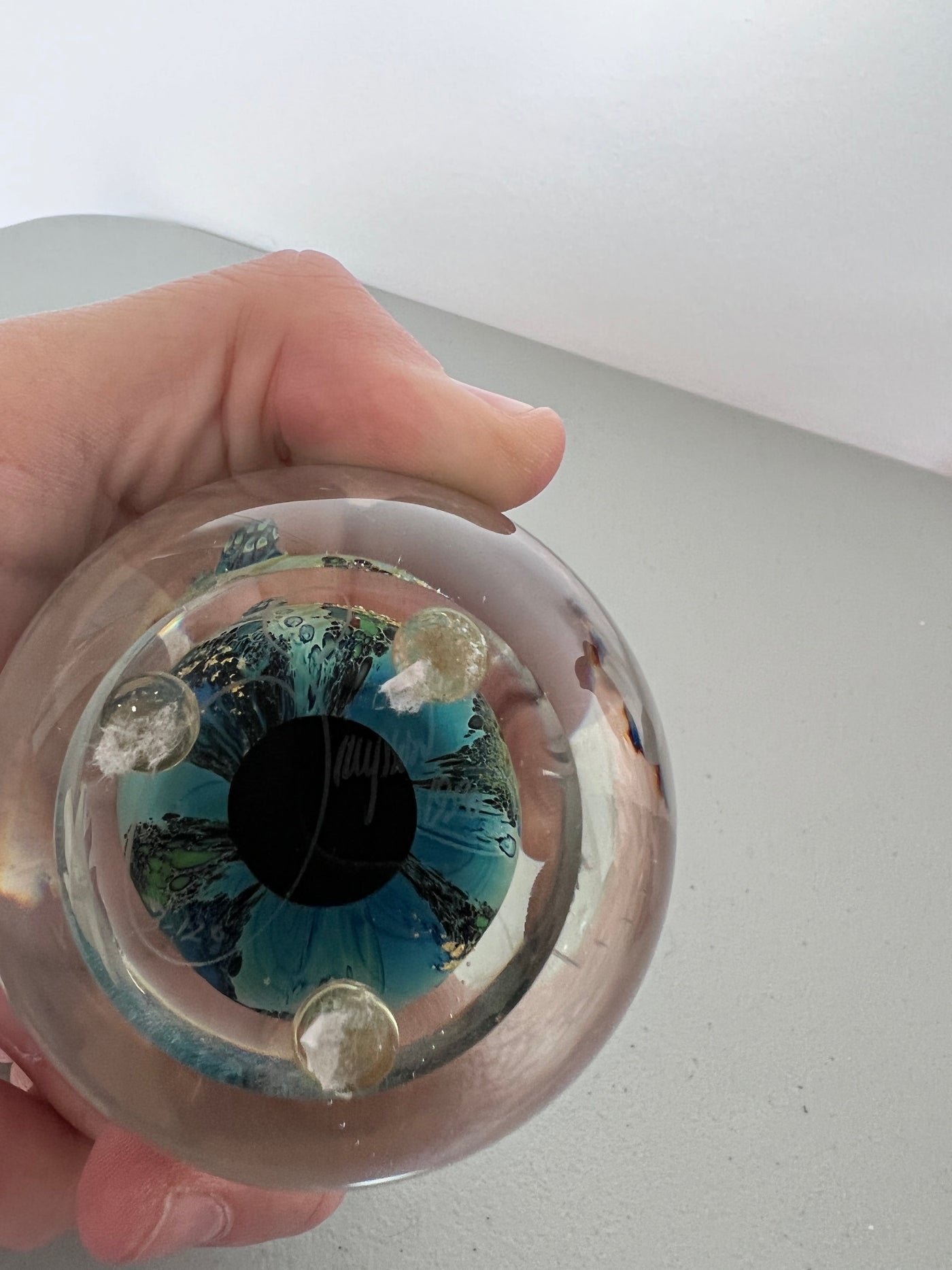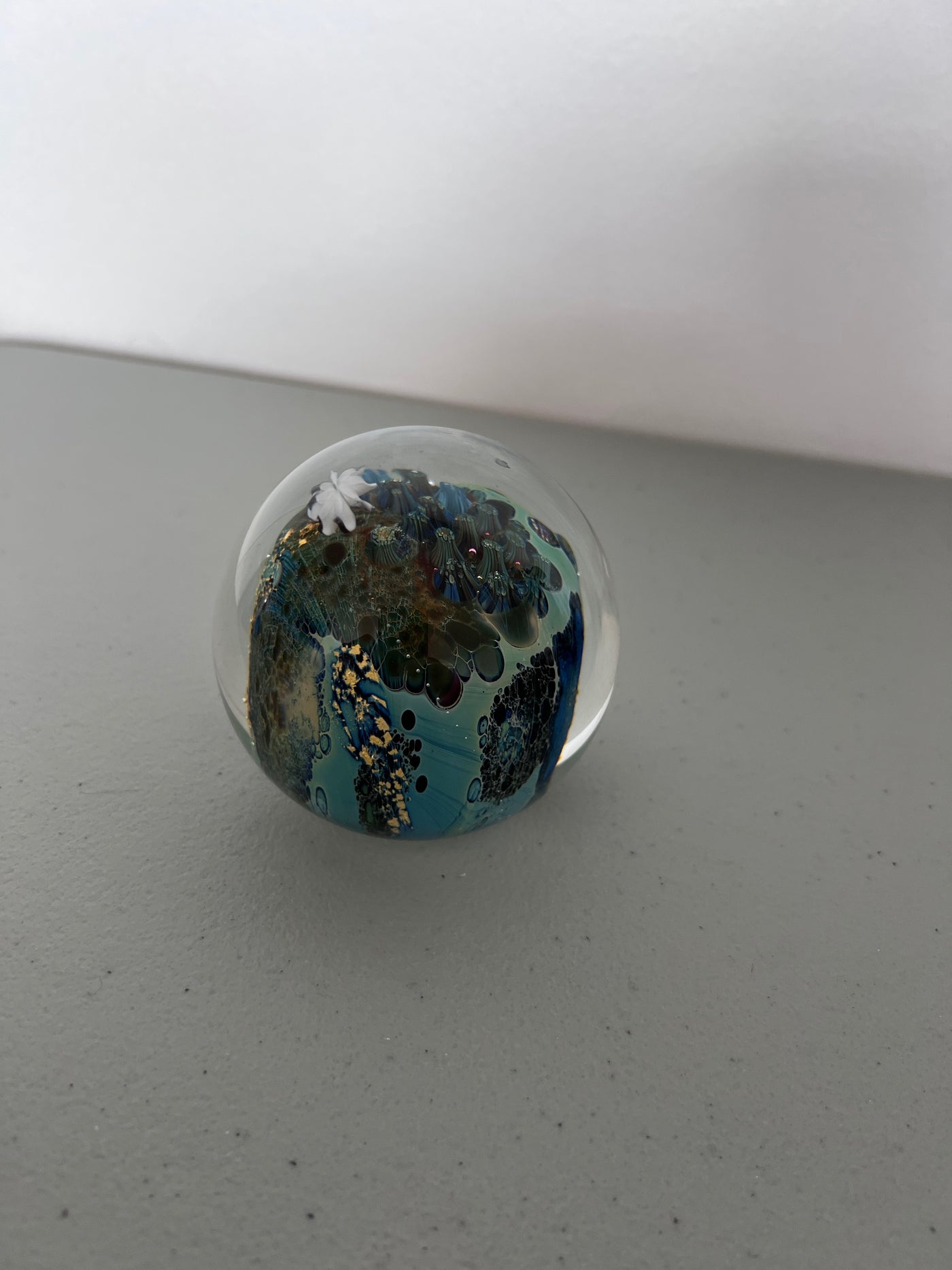 Josh Simpson 'Inhabited Planet' Signed Art Glass Paperweight.