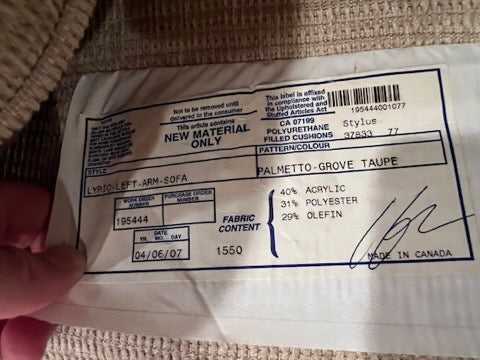 "Stylus" Custom Sectional Sofa in Palmetto-Grove Taupe. In very good condition!