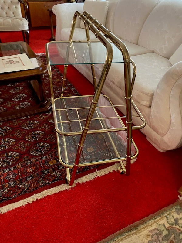 Vintage Brass & Glass Two-Tiered Bar Cart.