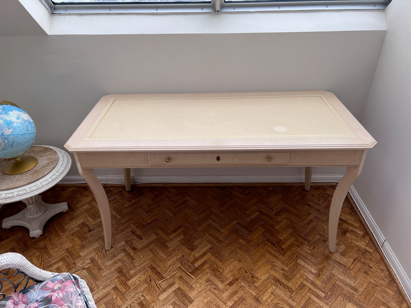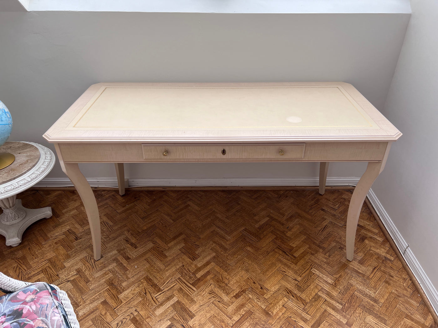 Vintage Light Maple Wood with Leather Inlay Executive Desk