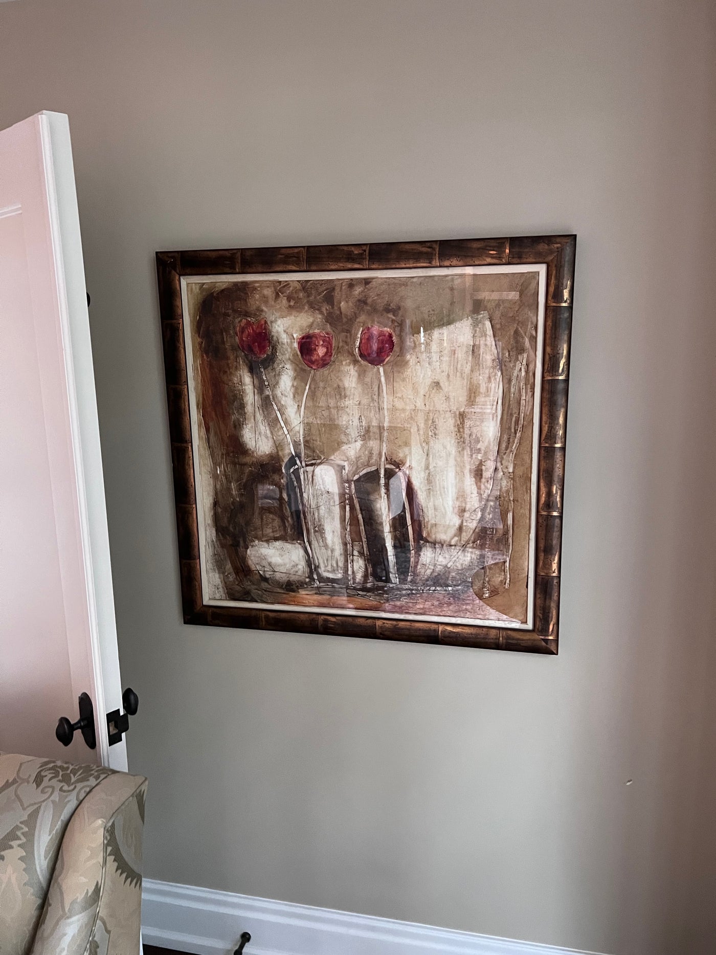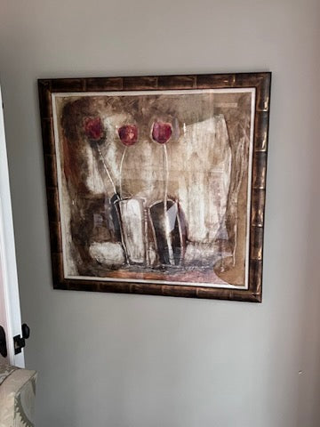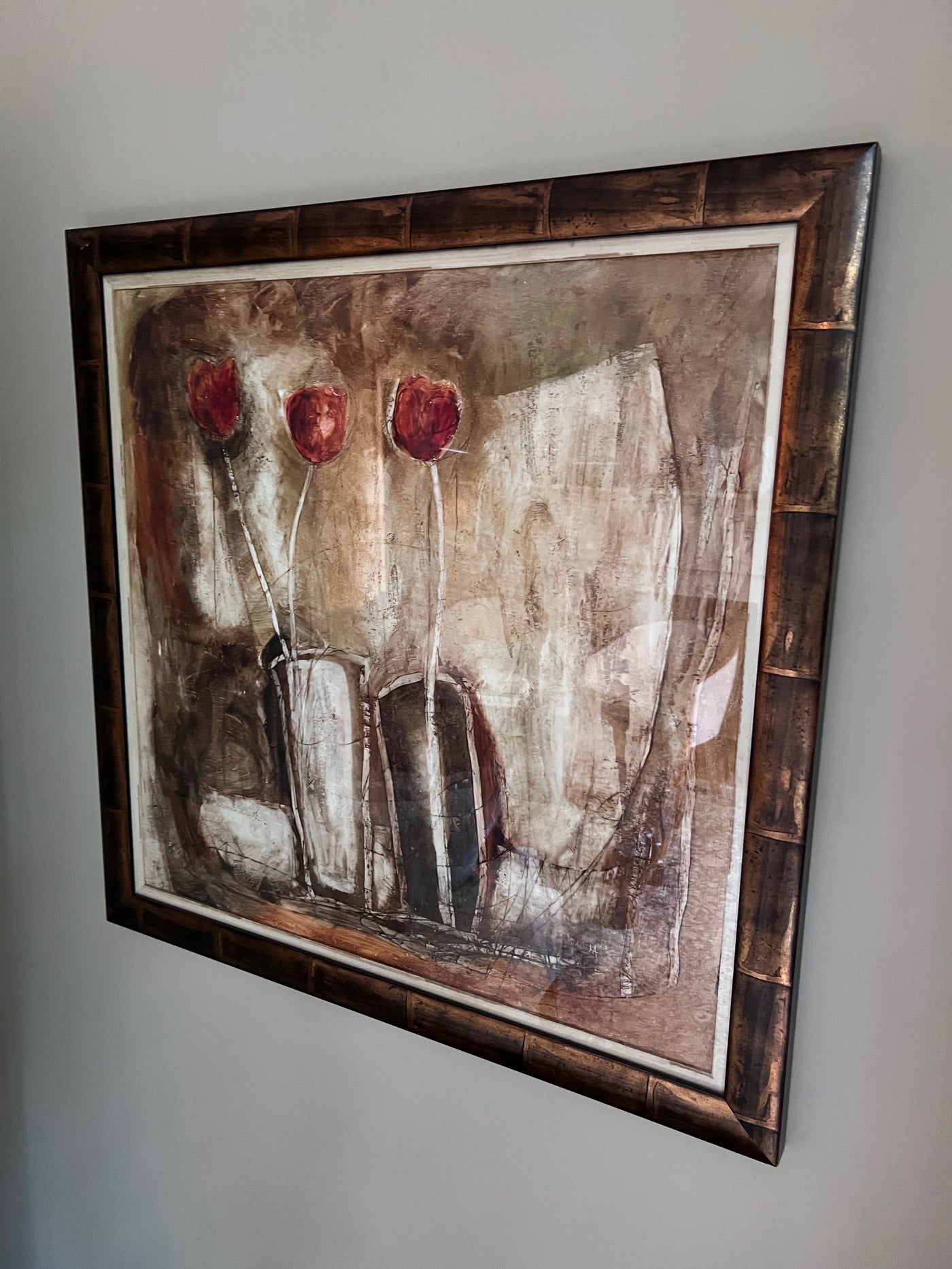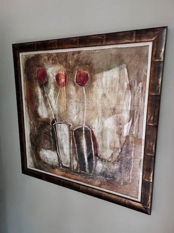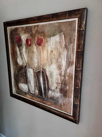 Emilija Pasagic was born in Yogoslavia where she received a formal education and training in landscape architecture. She and her family relocated to Canada in 1993 where this change in life inspired her to delve deep into her creative abilities. She began by silk painting, her subjects being figures and still life intensely detailed and often semi-abstract. She went on to experiment with a wide variety of different media and is currently using an ancient technique called the ‘encaustic’ method. Oil paint and bees wax is blended onto canvas, paper or board then layers are scratched to add character and depth to the image. The crimson and ochre Mediterranean shades she uses offset the delicacy of the images making a traditional technique have a contemporary feel.