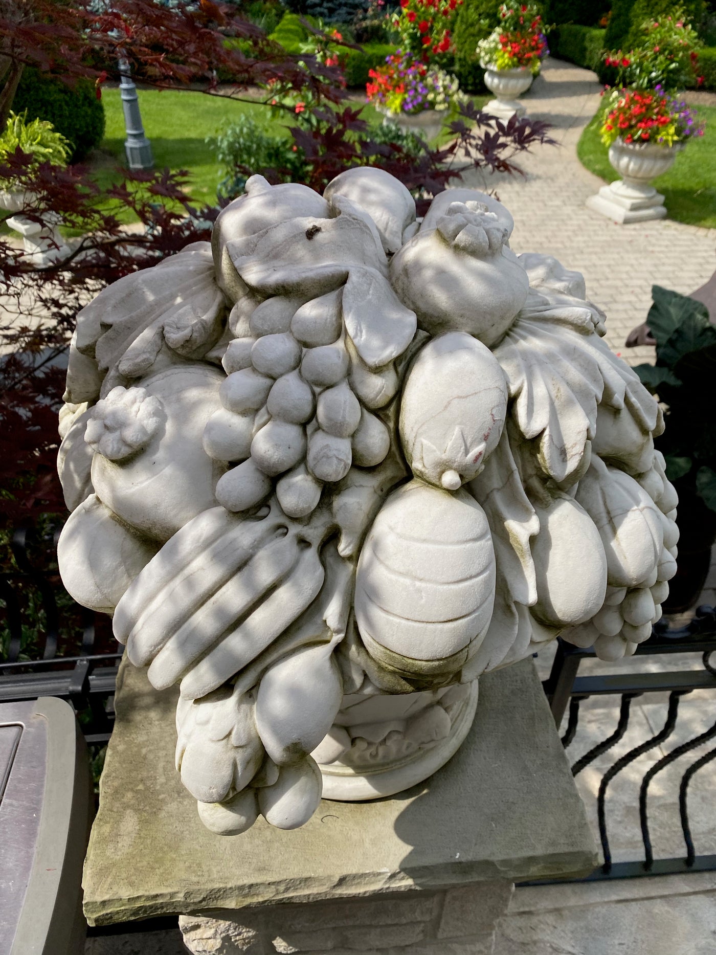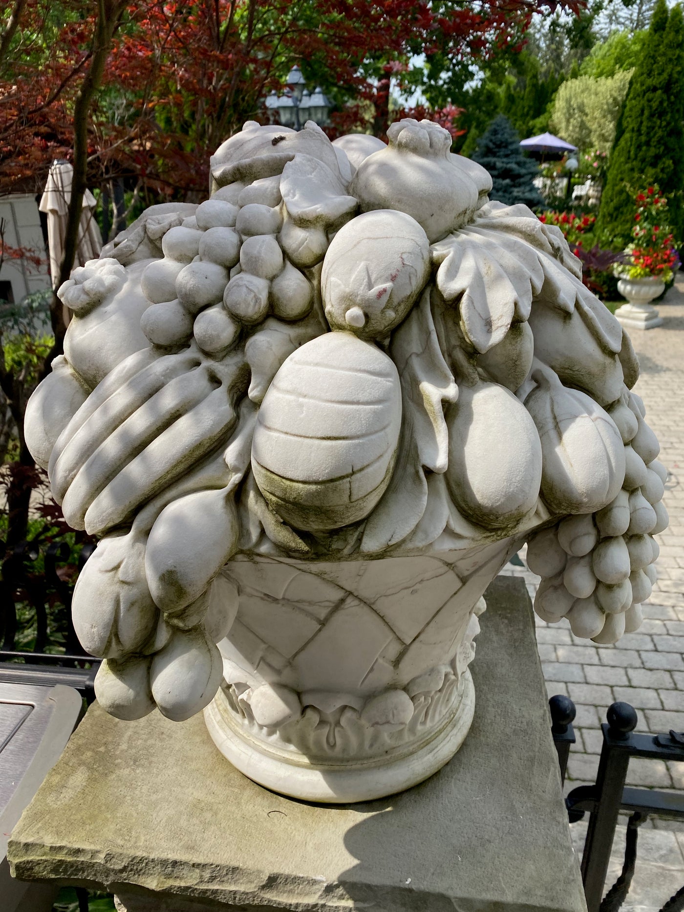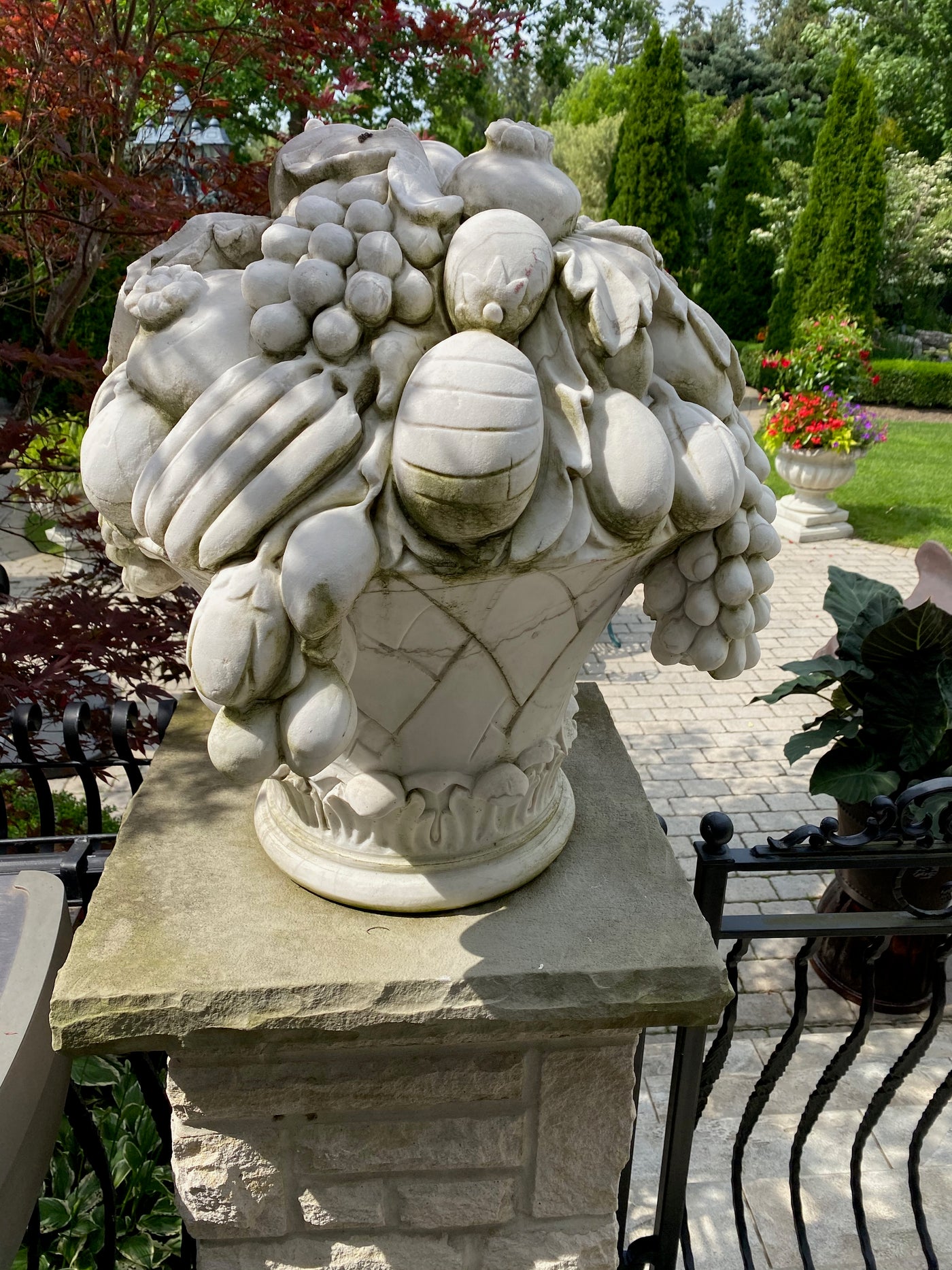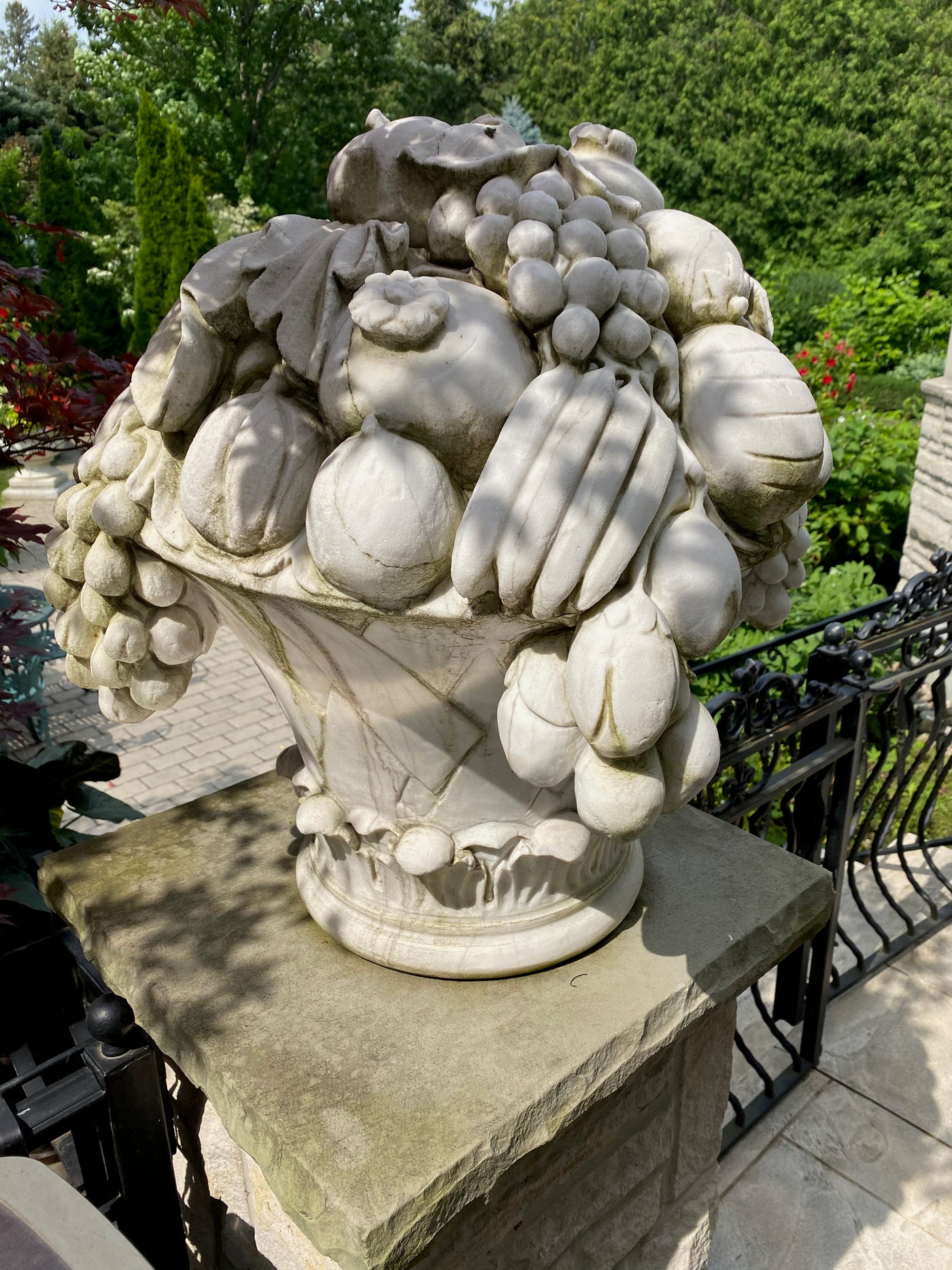 Outdoor Marble Fruit Basket Sculpture (*2 Available- Priced Separately).