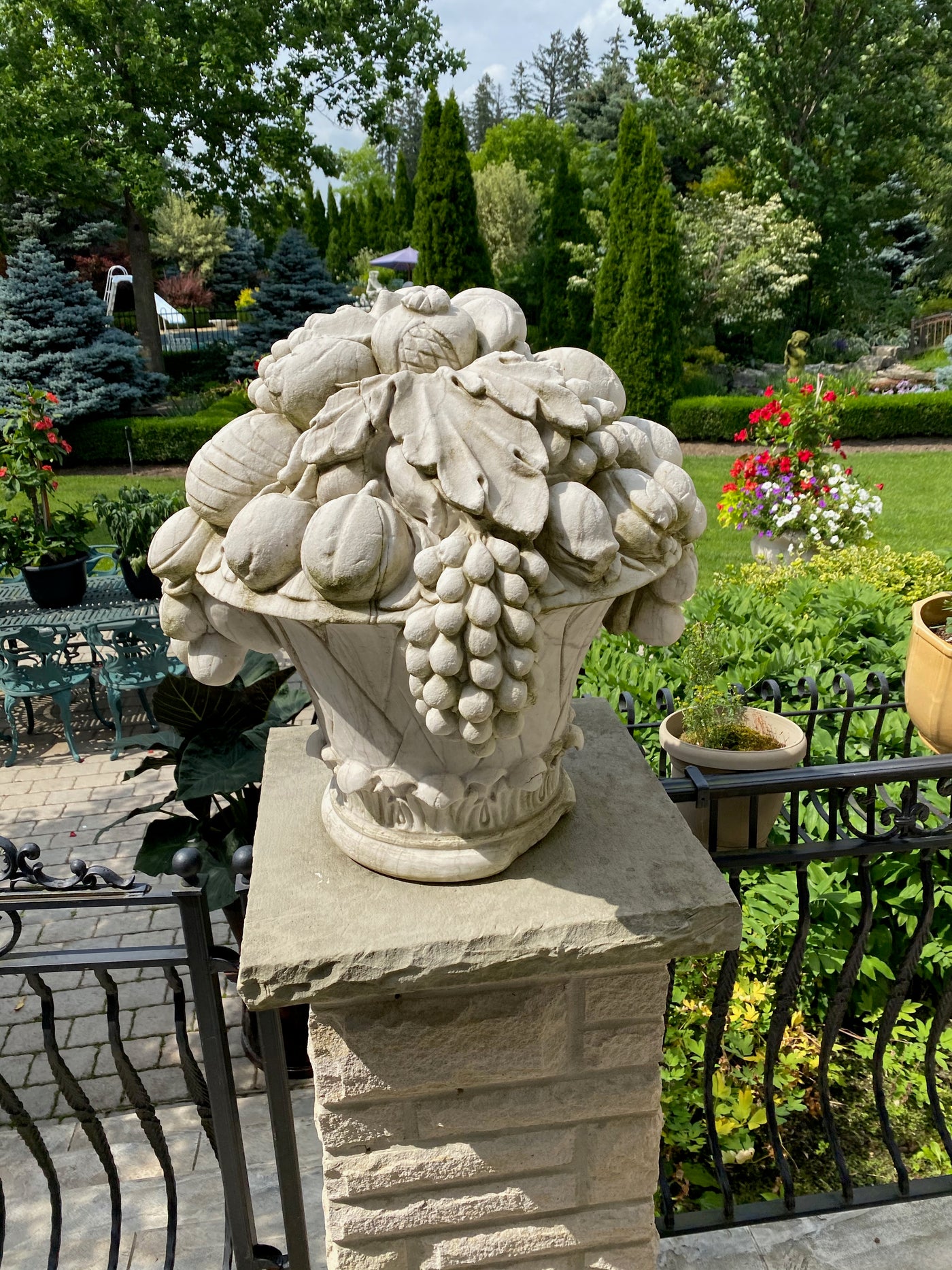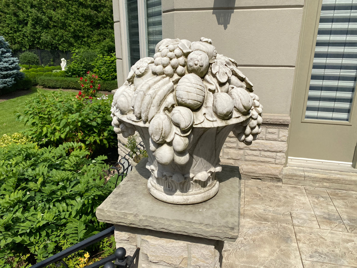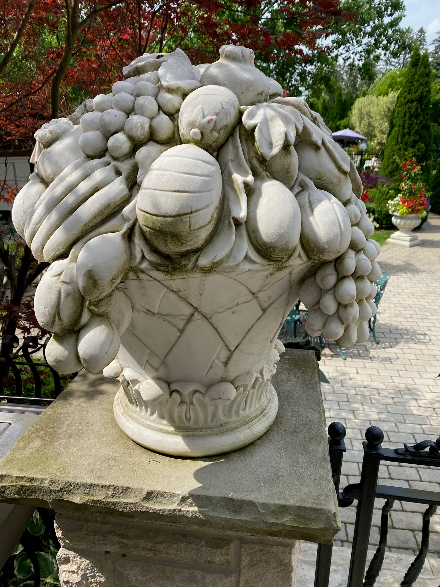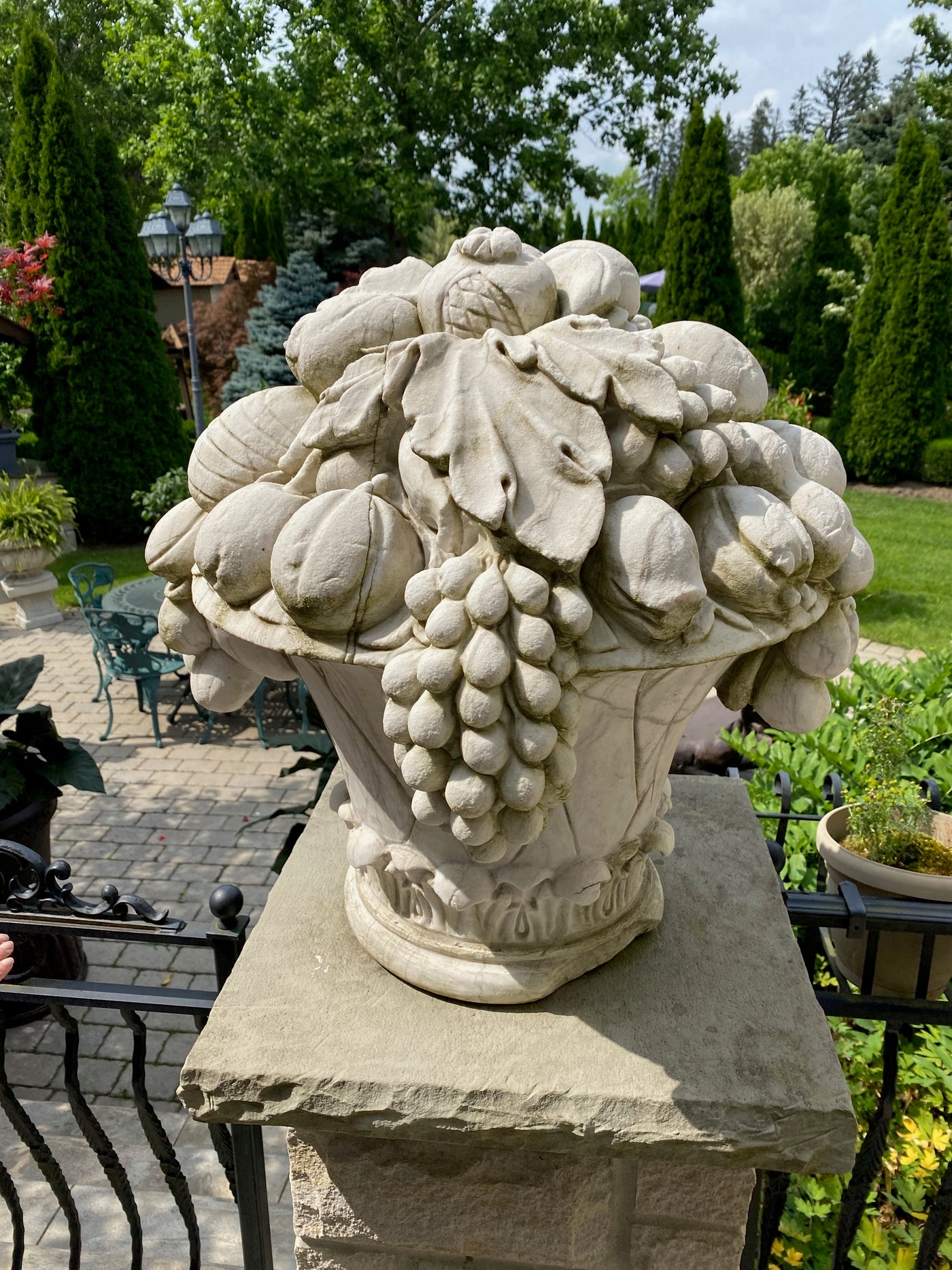 Outdoor Marble Fruit Basket Sculpture (*2 Available- Priced Separately).