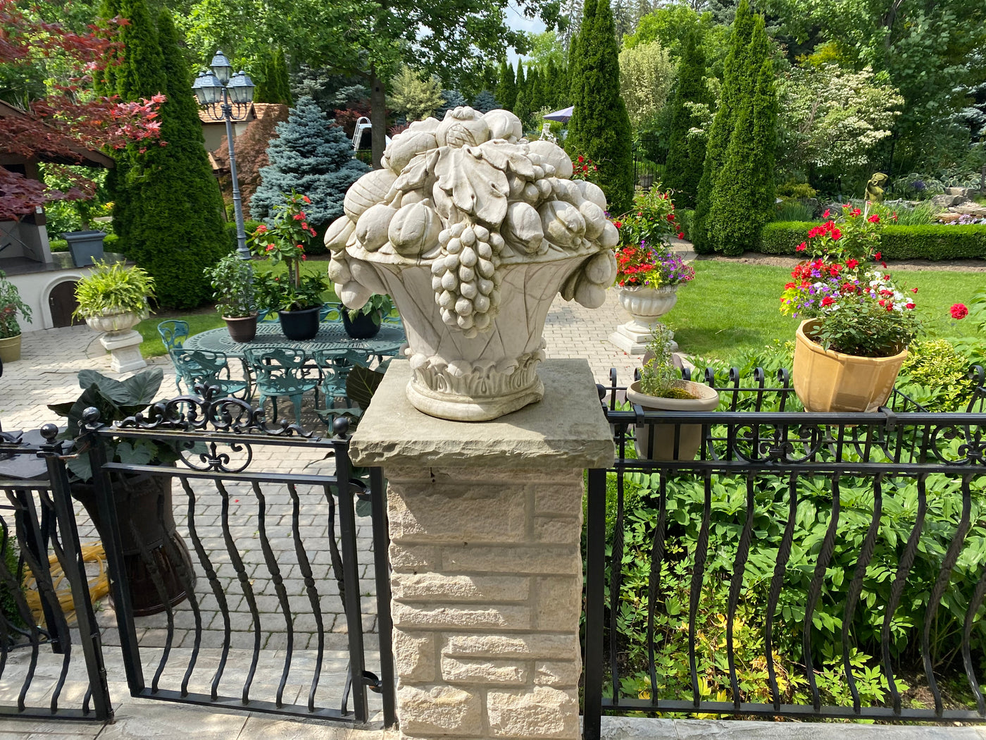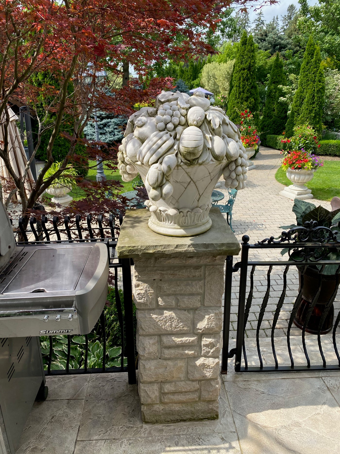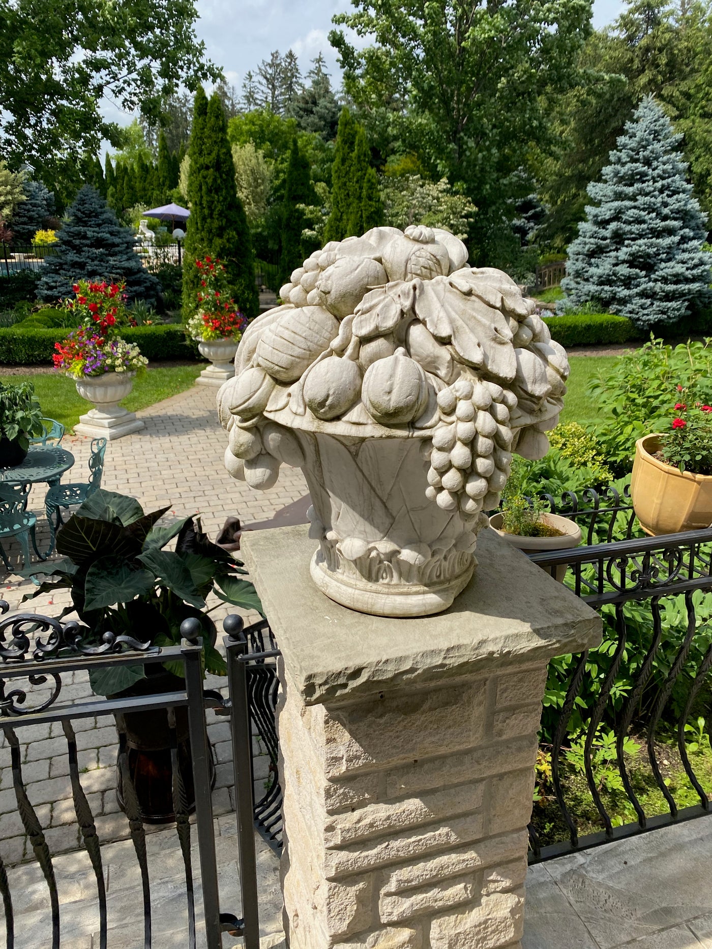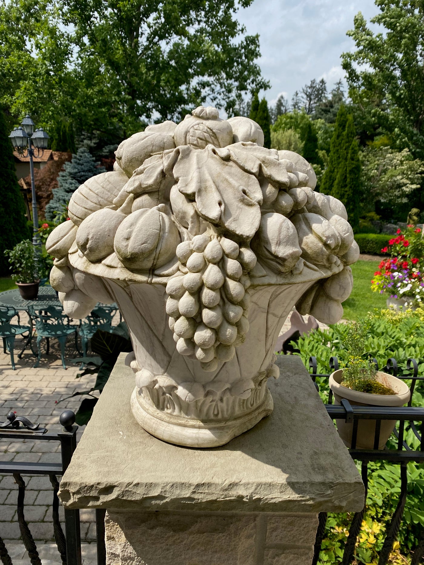 Outdoor Marble Fruit Basket Sculpture (*2 Available- Priced Separately).