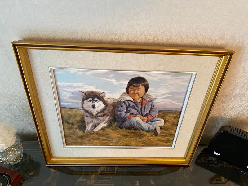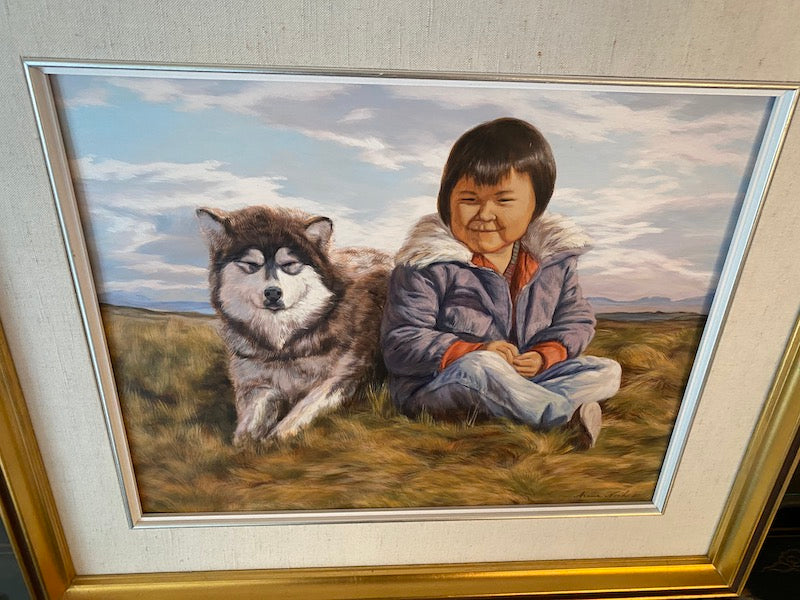 Original Painting/Drawing- "Boy with Husky-Dog " by Anna Noeh.