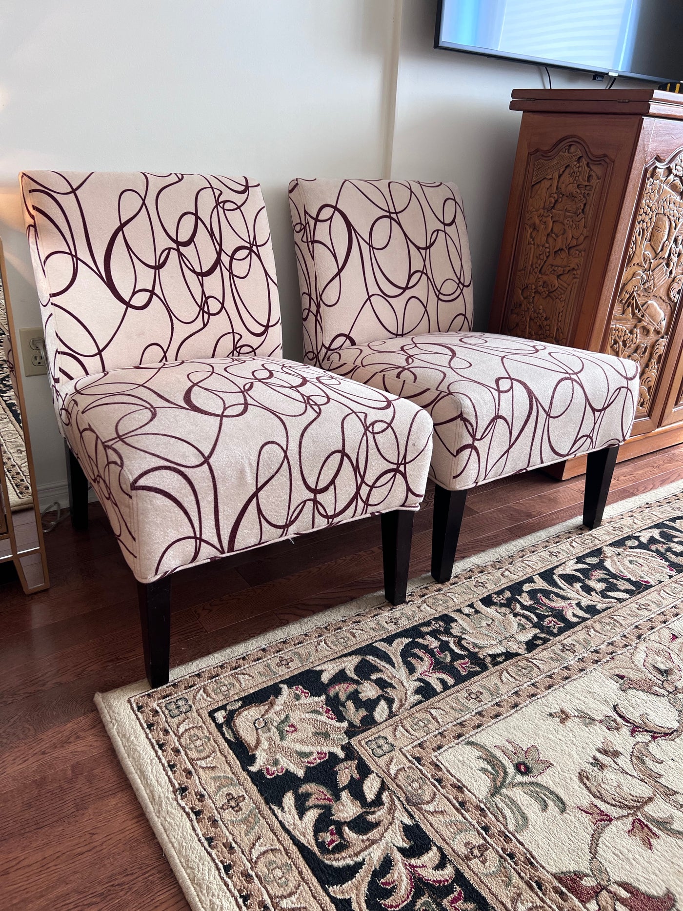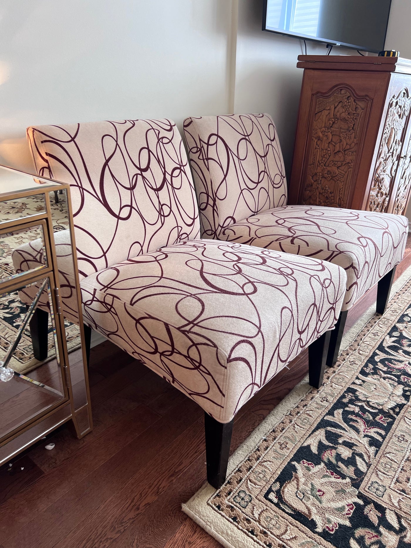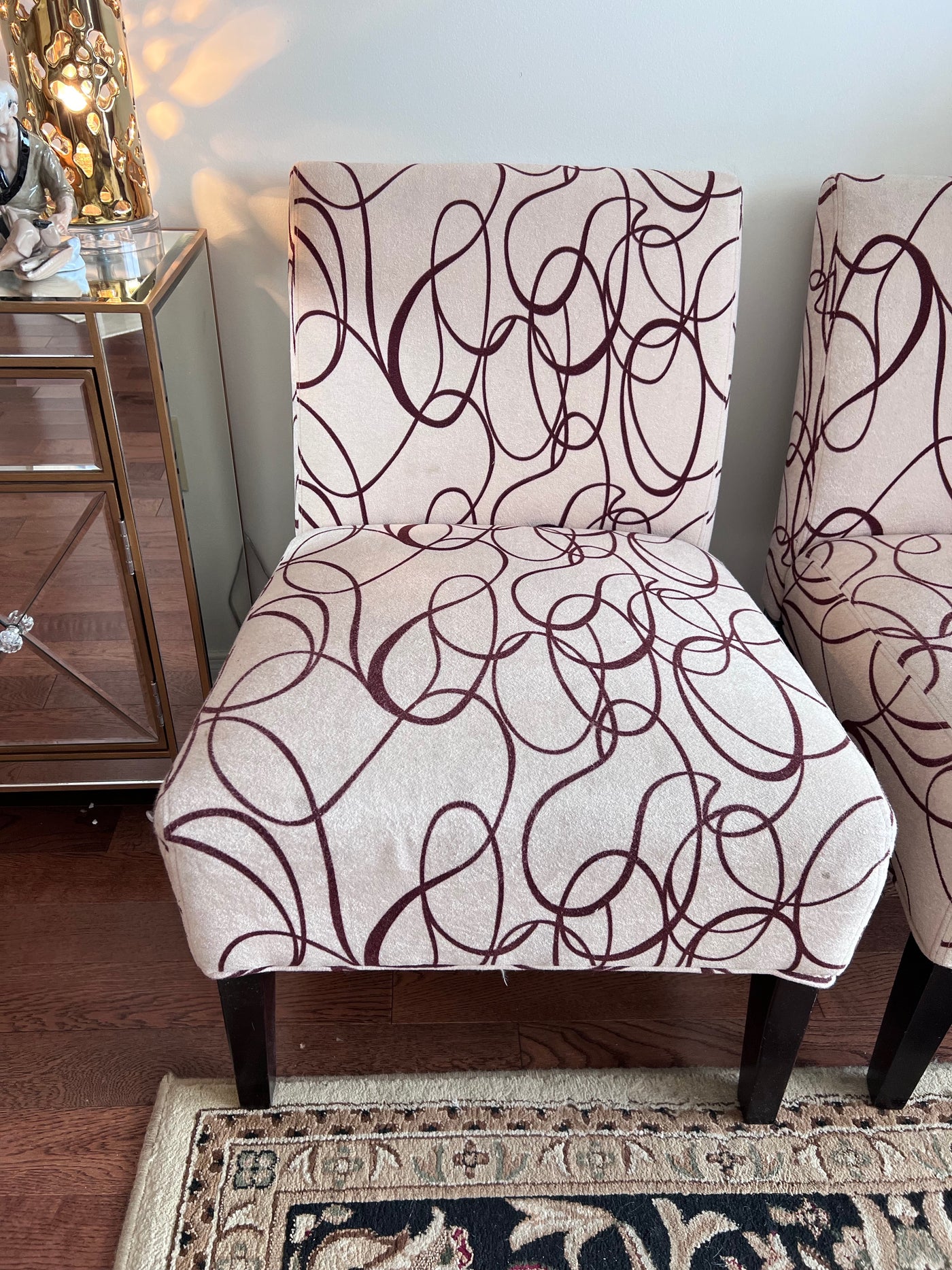 Pair of Cream w/Burgundy Details Accent Chairs.